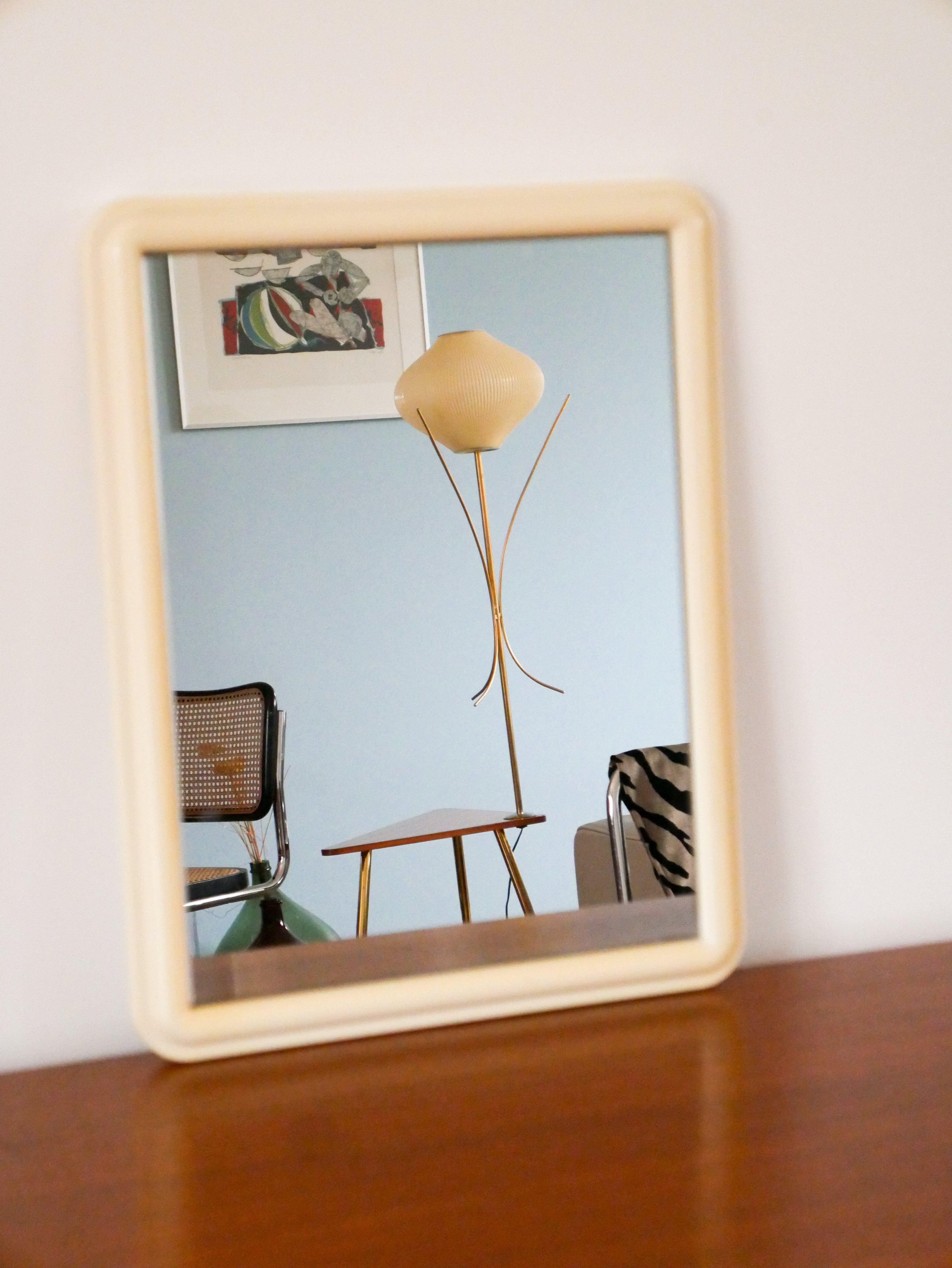 Grand miroir en plastique, Ivoire, Design, 1970 - 50 cm