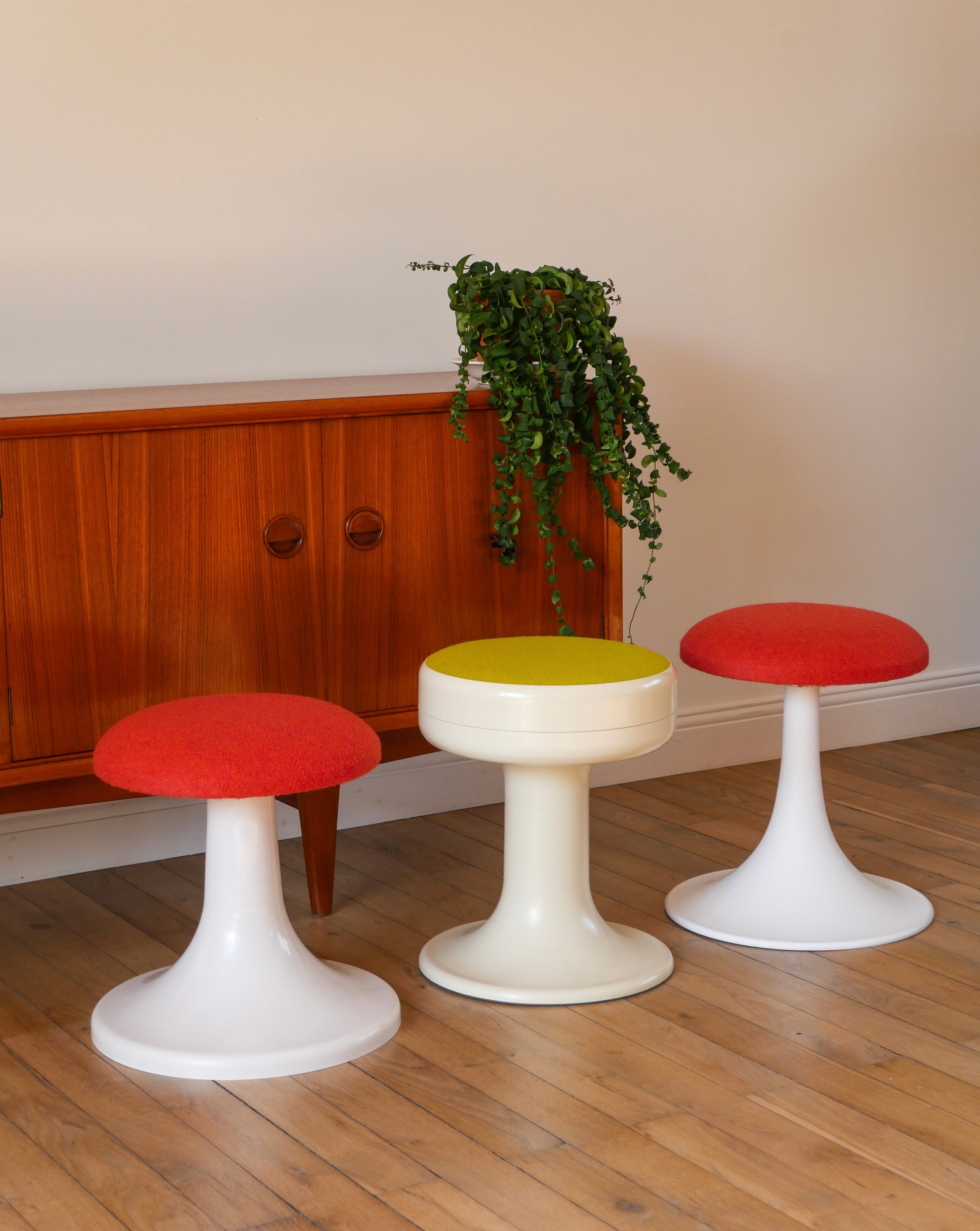 Tabouret tulipe en Plastique et Laine, Rouille, Design Space Age, 1970