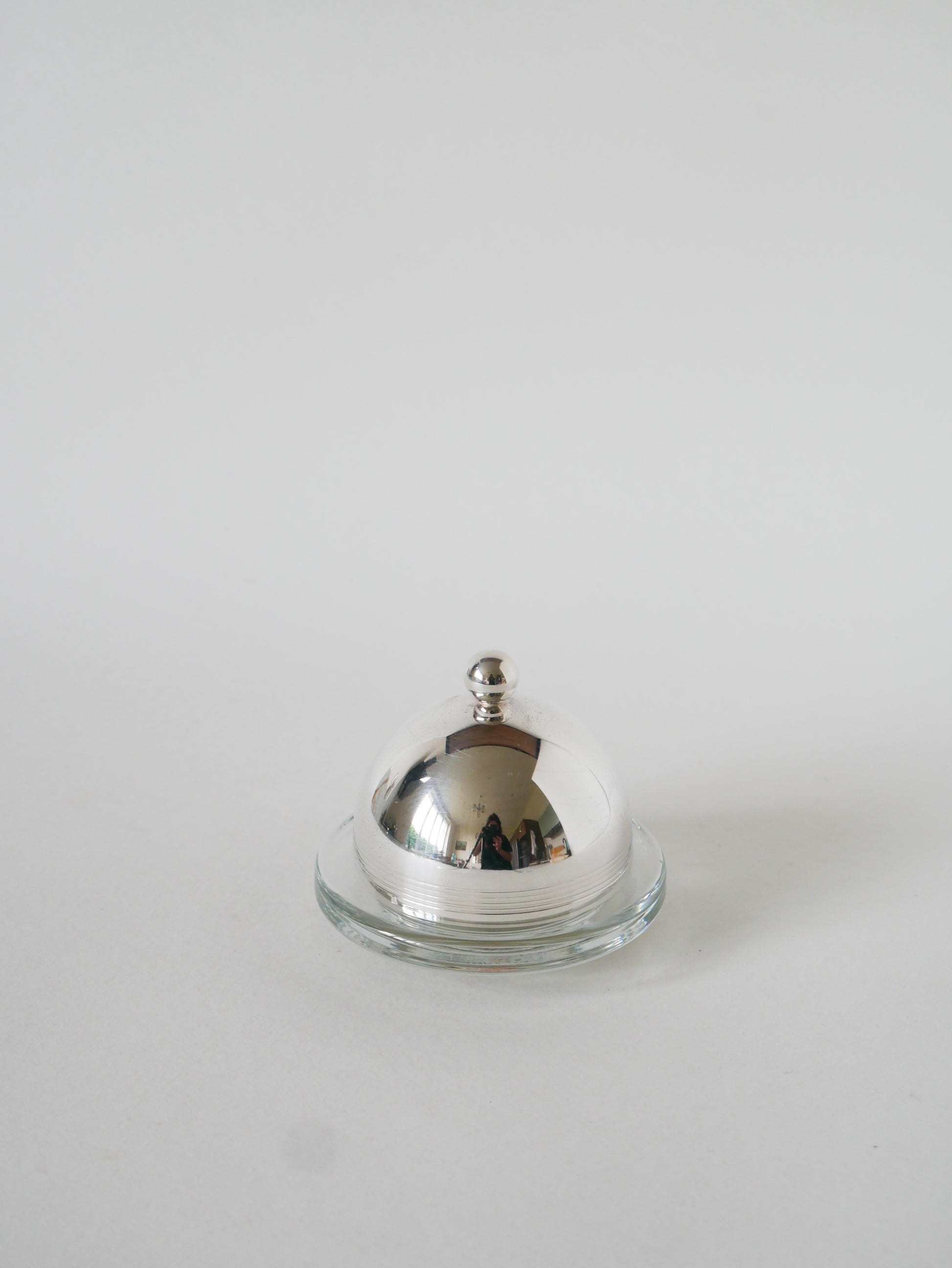 Beurrier en métal argenté et verre, St Hilaire, 1950