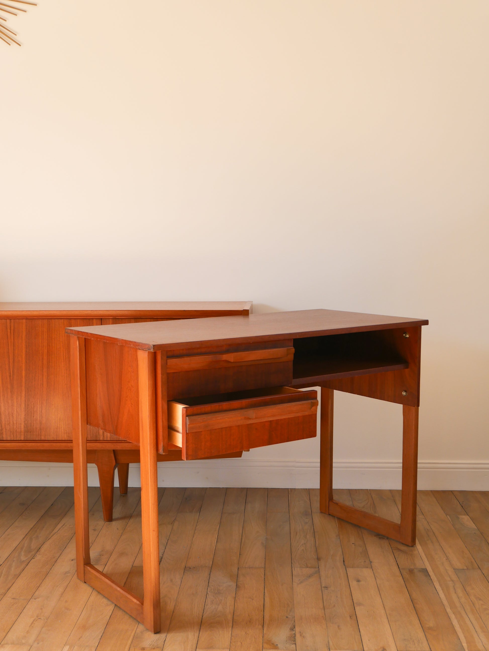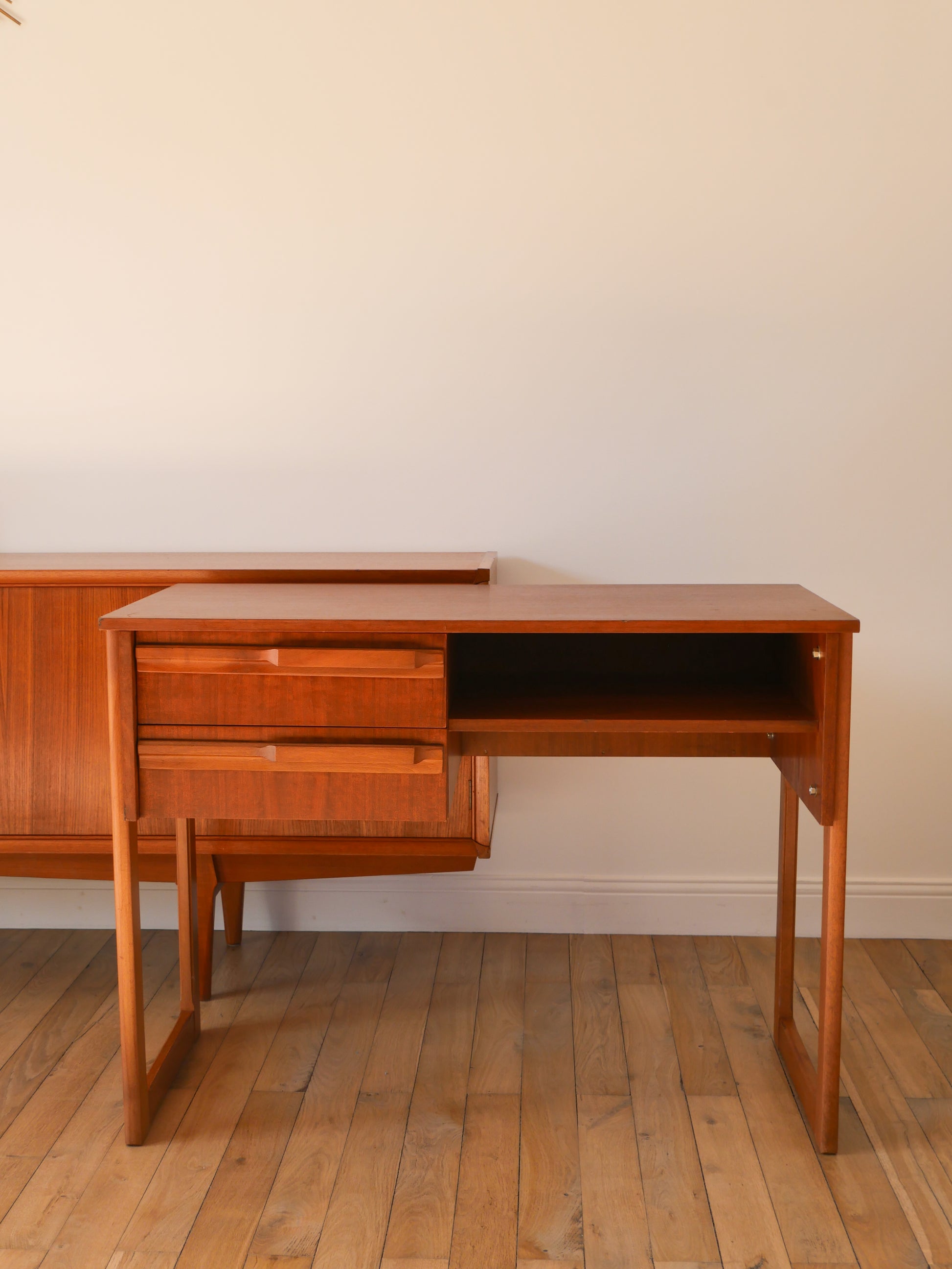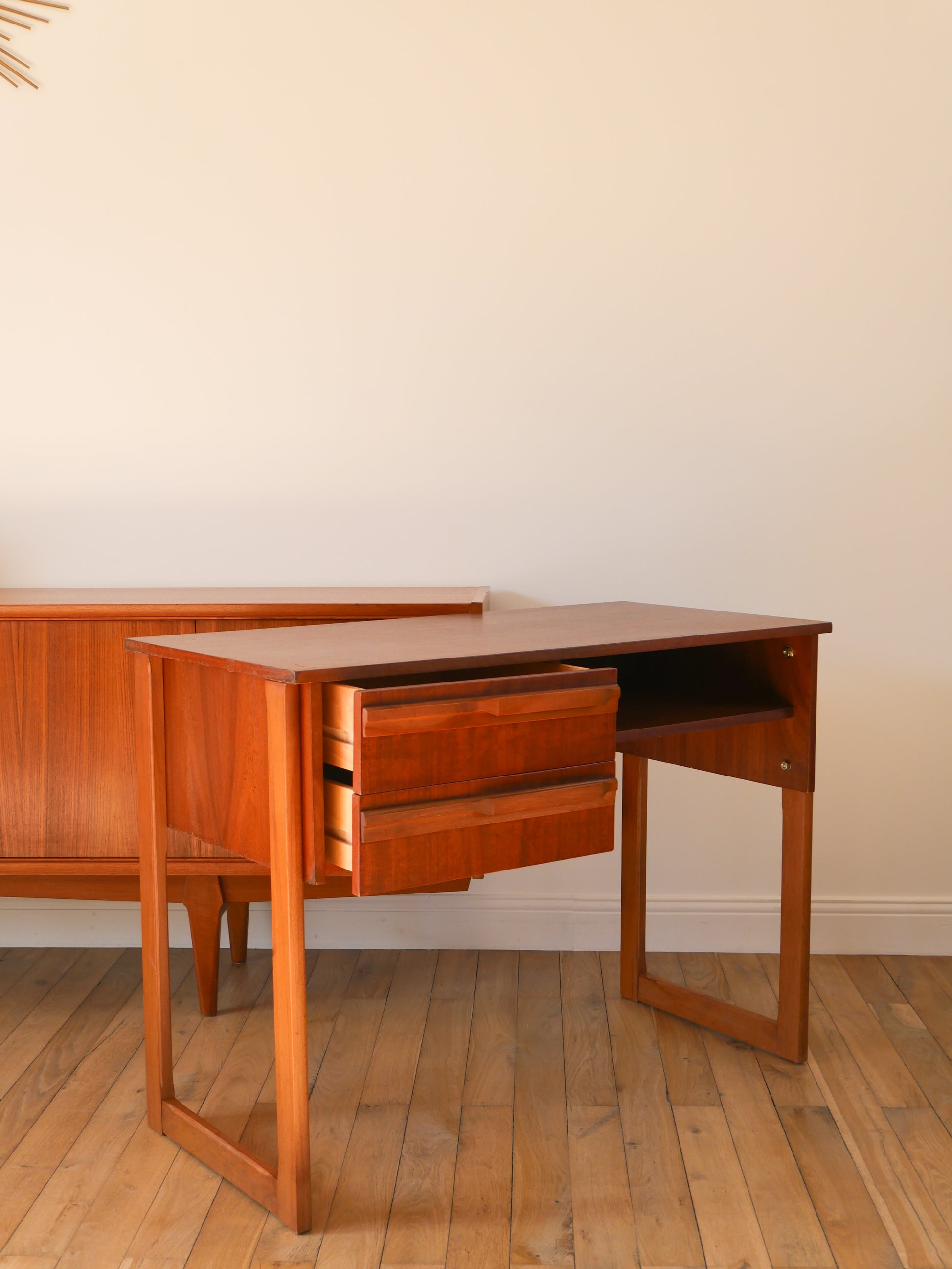 Bureau Scandinave en teck, pieds traineaux, Design, 1960
