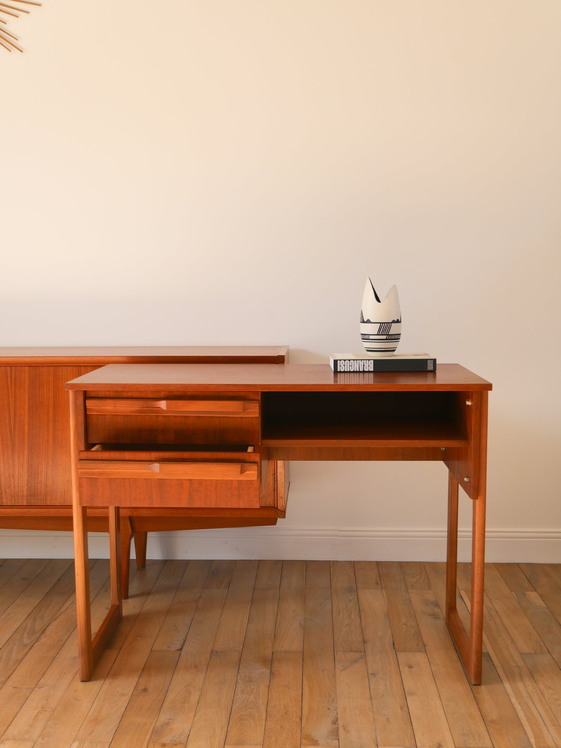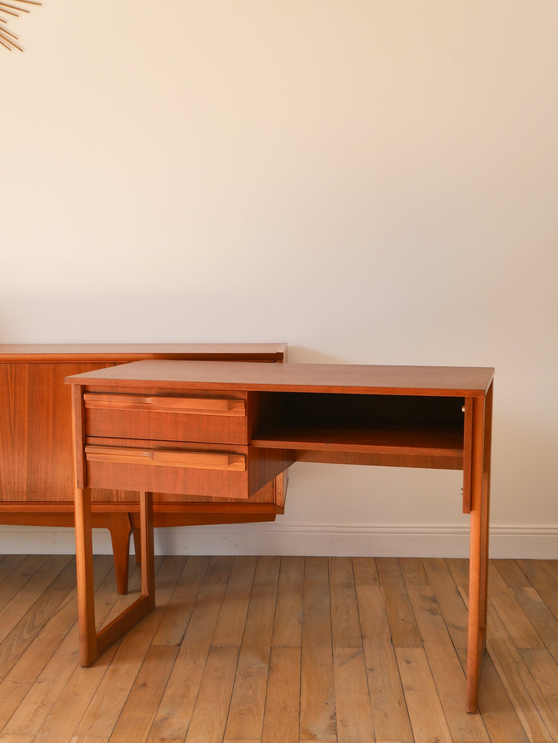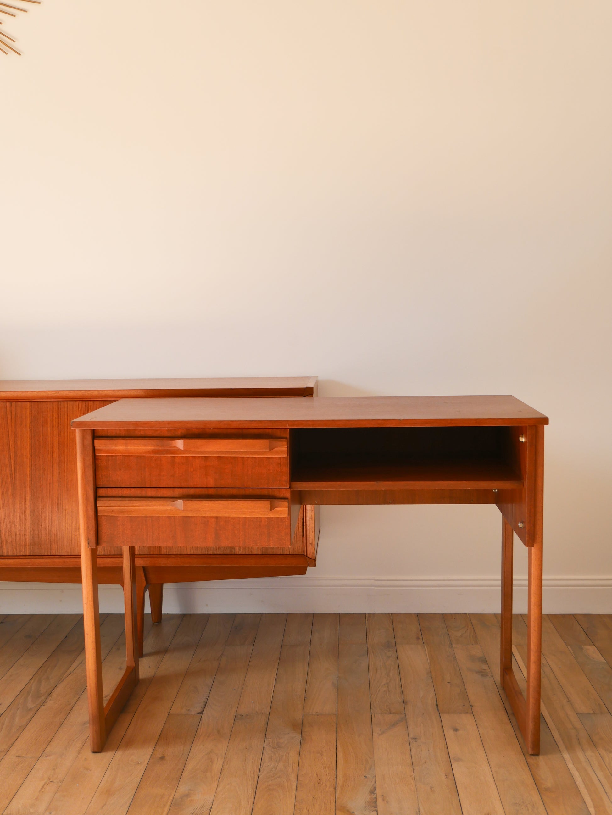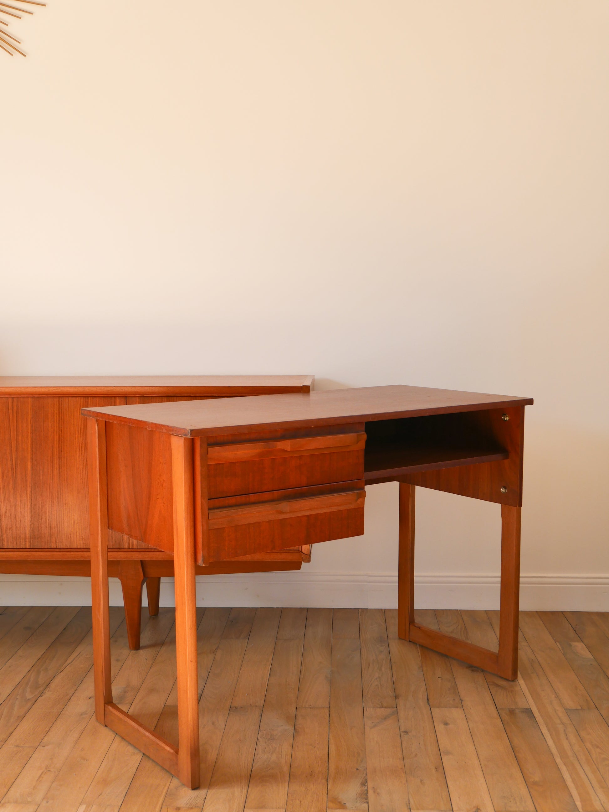 Bureau Scandinave en teck, pieds traineaux, Design, 1960