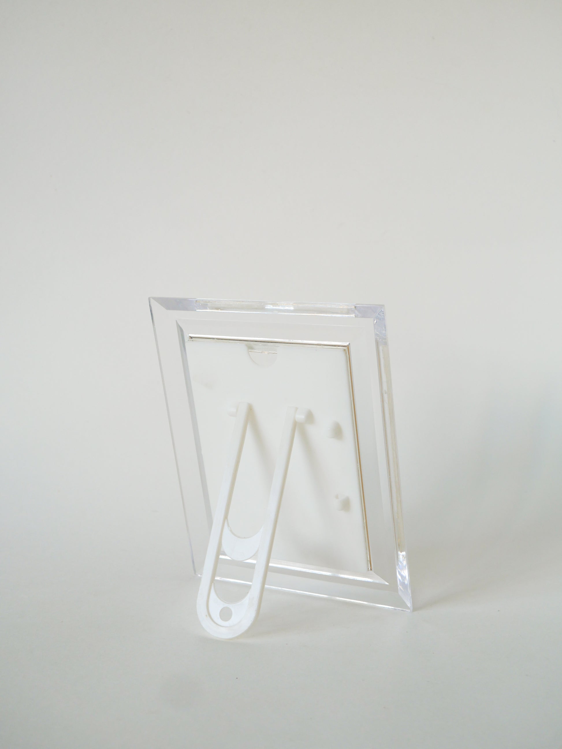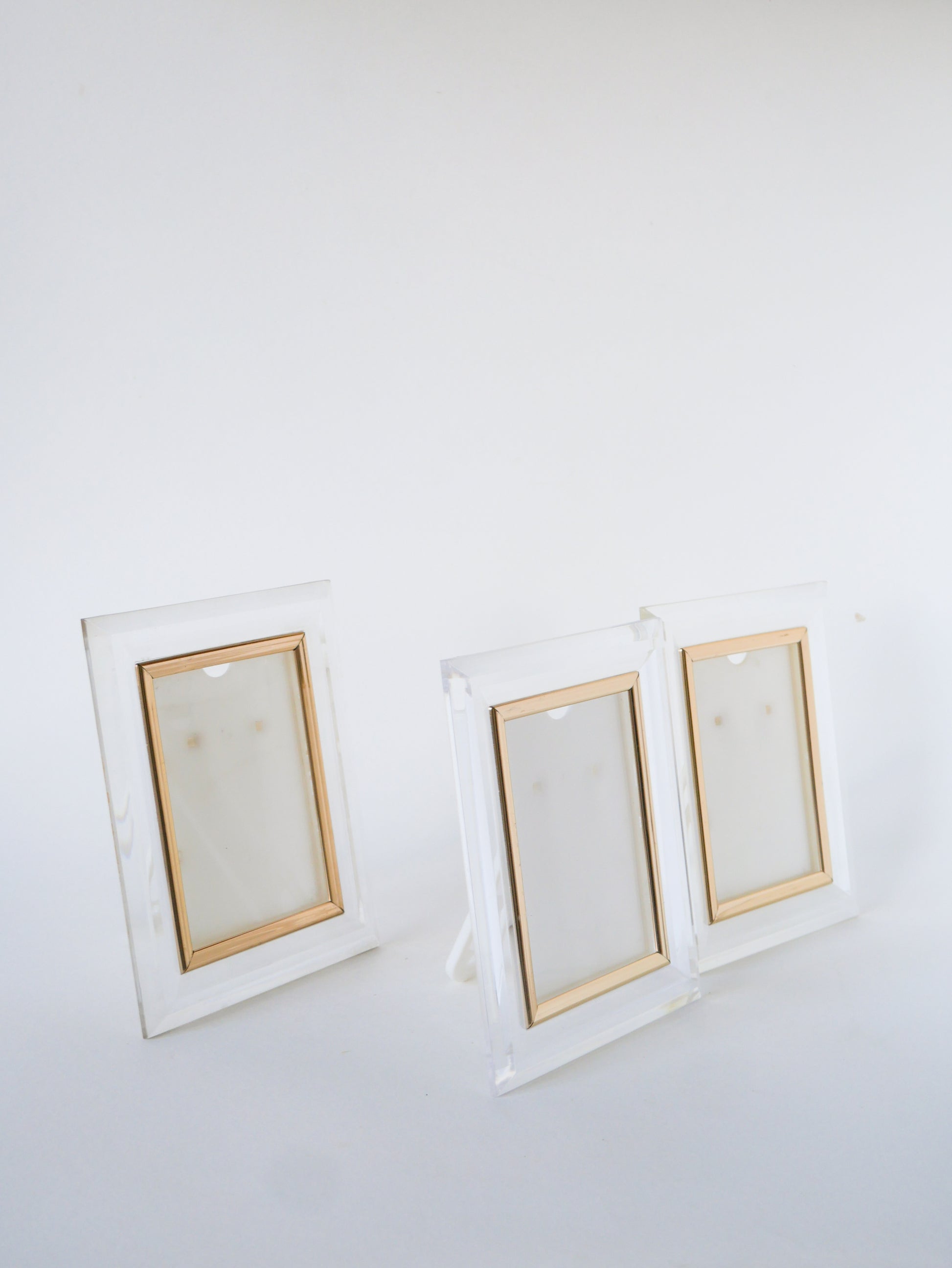 Joli cadre photo à poser en plexi, détail Doré, 1980. En très bon état, de rares traces du temps. 3 lots disponibles. Envoi rapide et soigné. Possibilité d'envois groupés - plus économique et plus écologique ! Dimensions : 18 X 15 cm.
