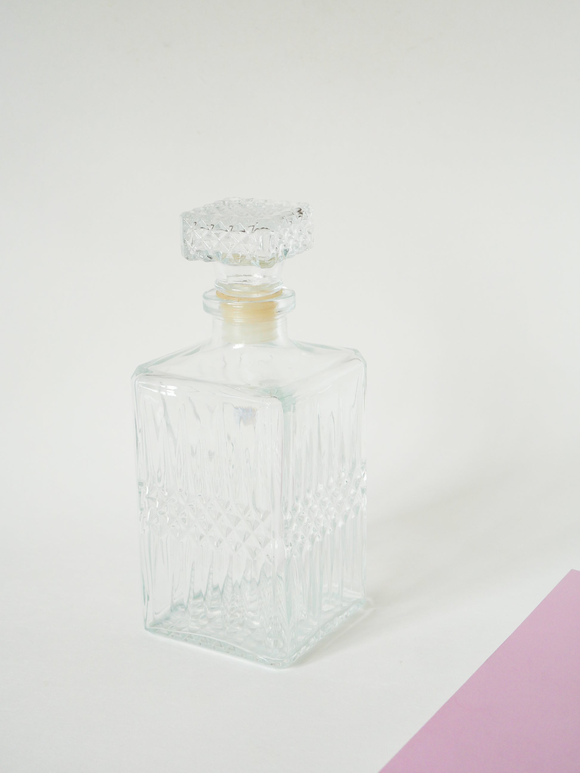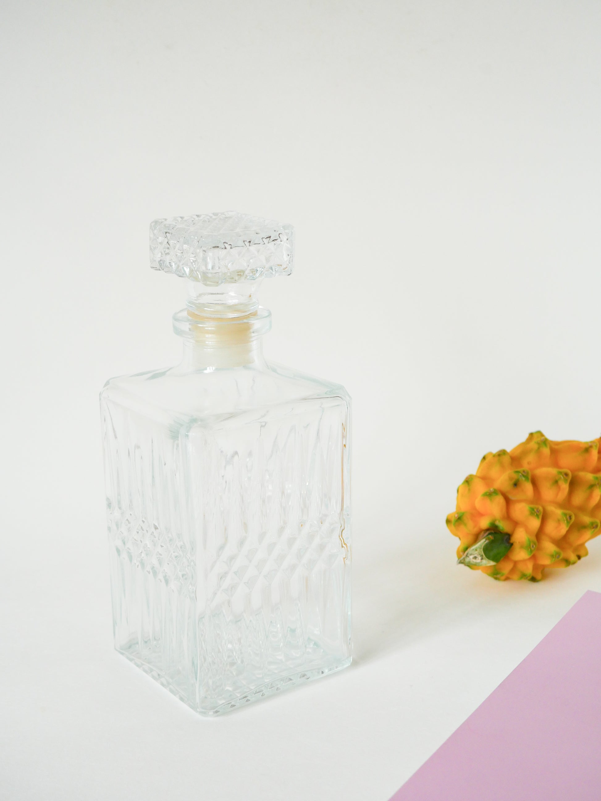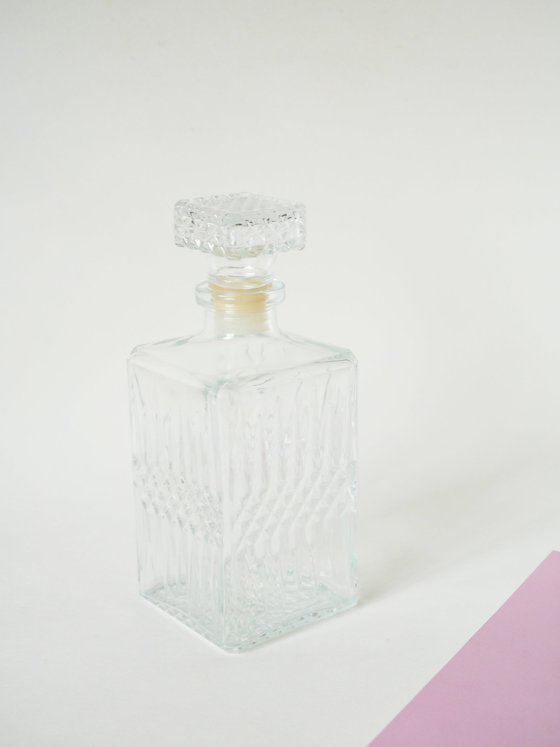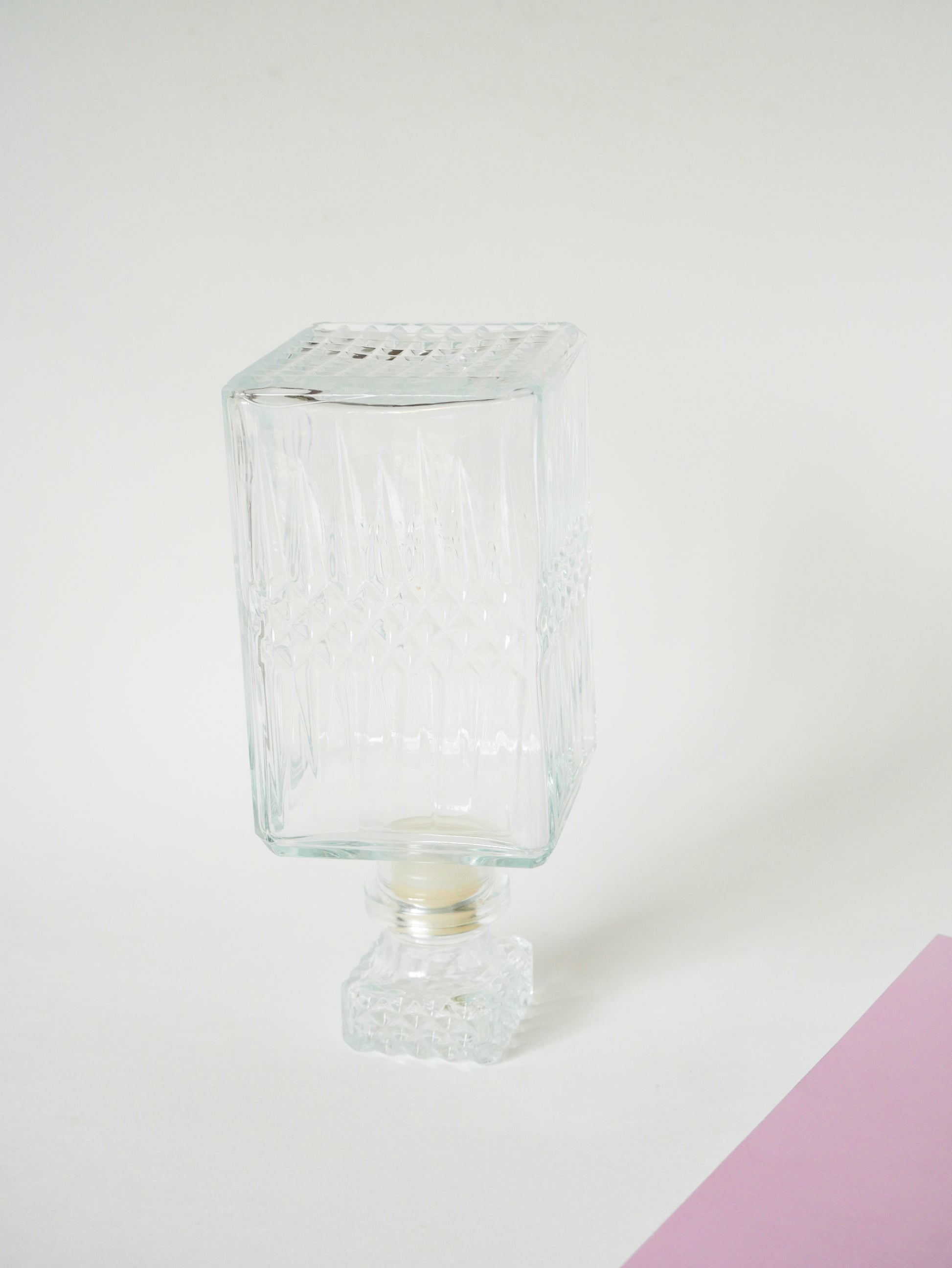 Superbe carafe à whisky en verre ciselé, 1970. En très bon état, de rares traces du temps. Envoi rapide et soigné. Possibilité d'envois groupés - plus économique et plus écologique ! Dimensions : 24 X 9.5 cm.