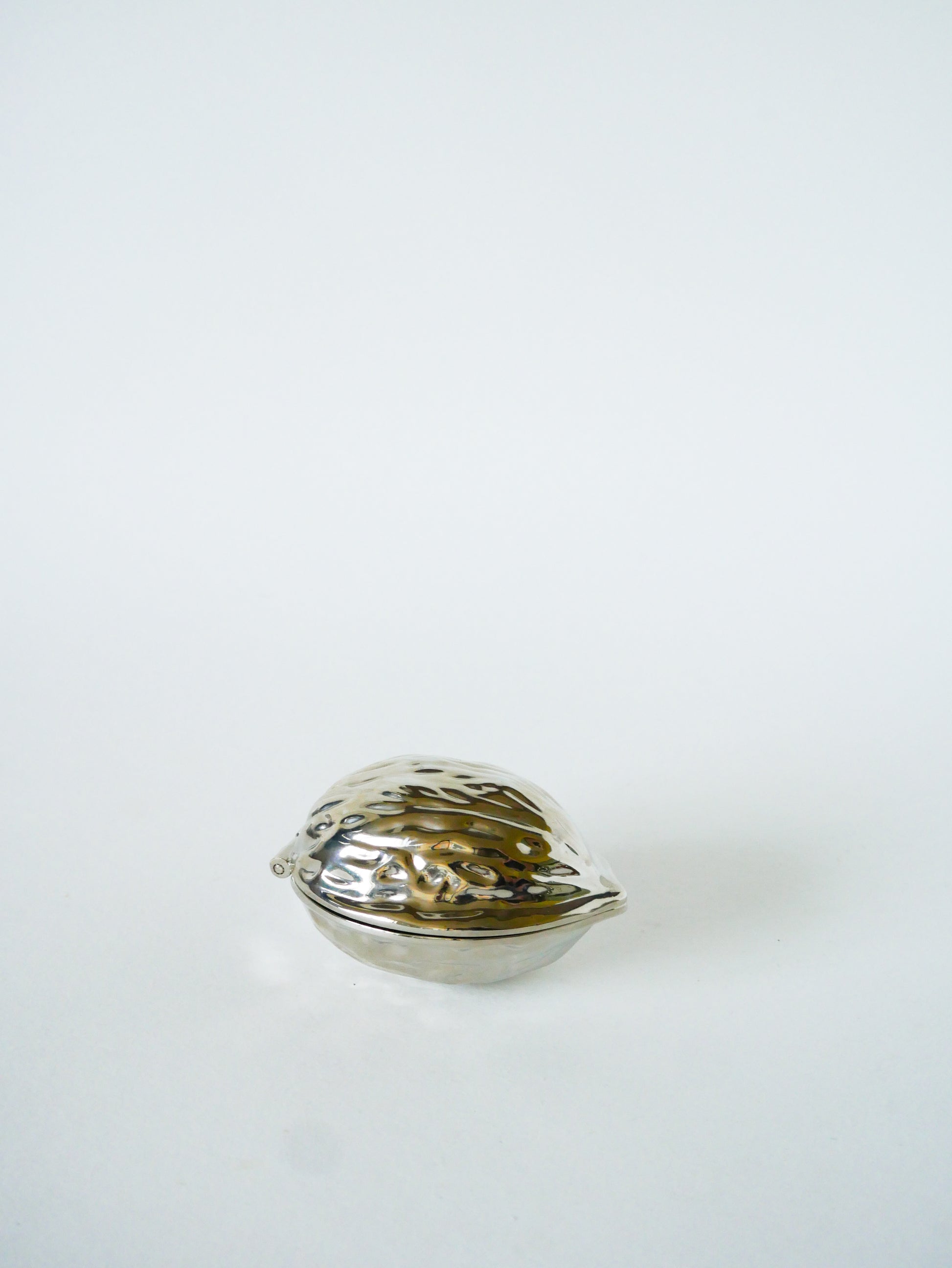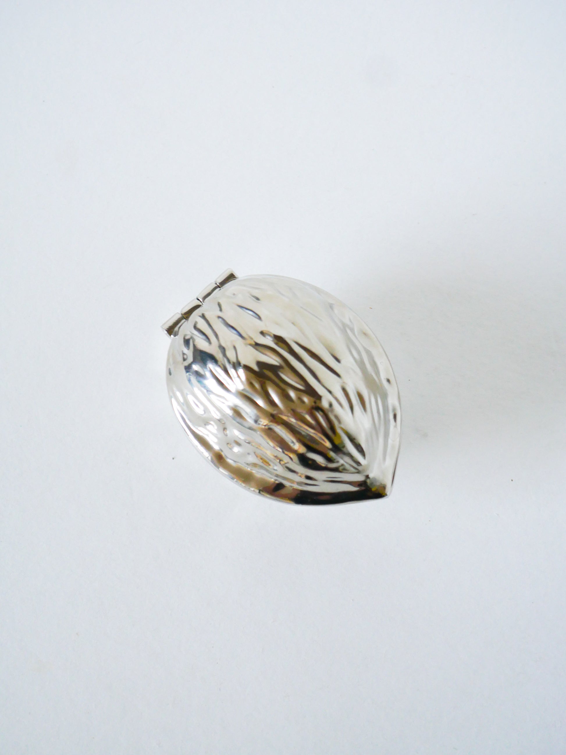 Superbe casse-noix en métal argenté, modèle Noix, 1960. En très bon état, de rares traces du temps. Envoi rapide et soigné. Possibilité d'envois groupés - plus économique et plus écologique ! Dimensions : 9 X 7.5 X 5 cm.
