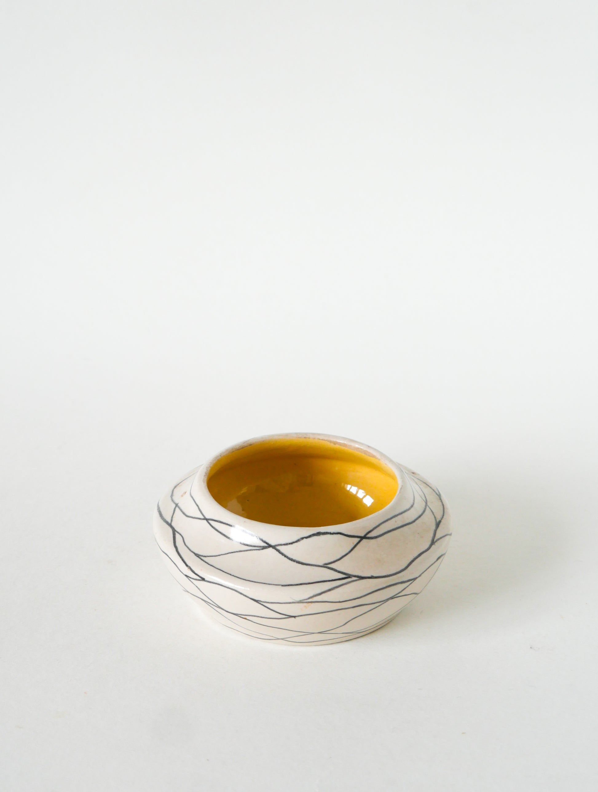 Cendrier / vide-poche en céramique, à motifs abstraits, Jaune & Crème, 1960