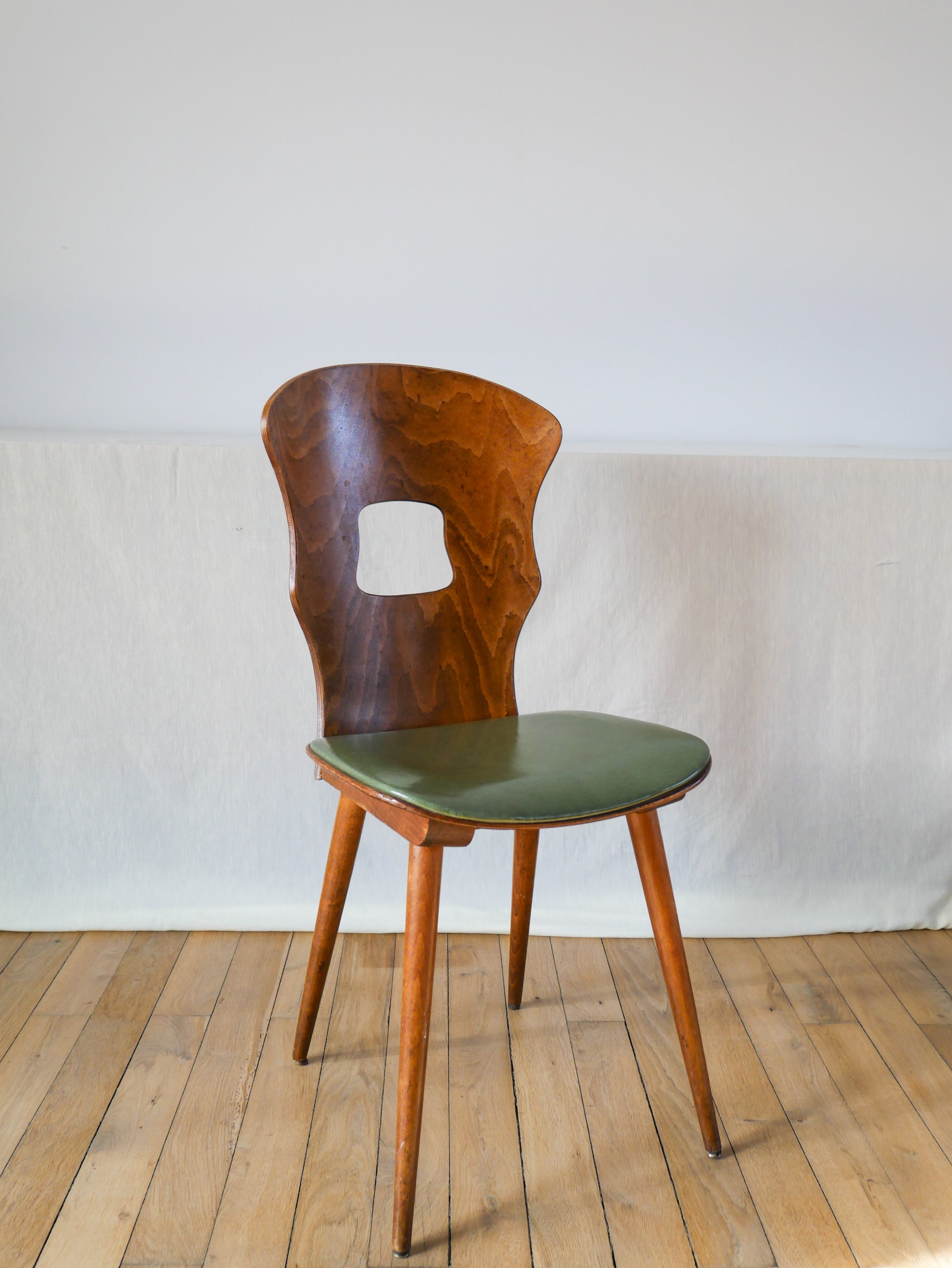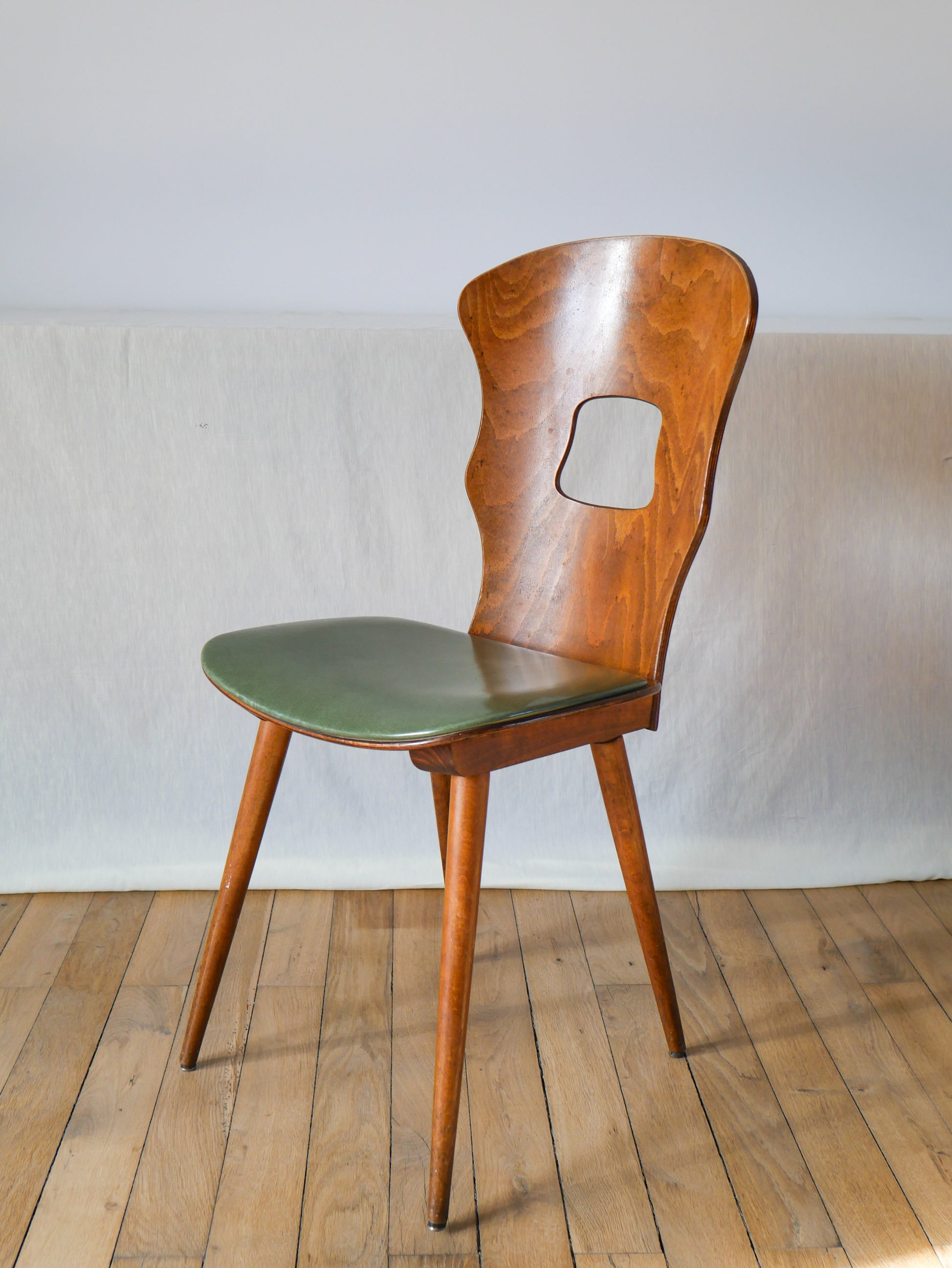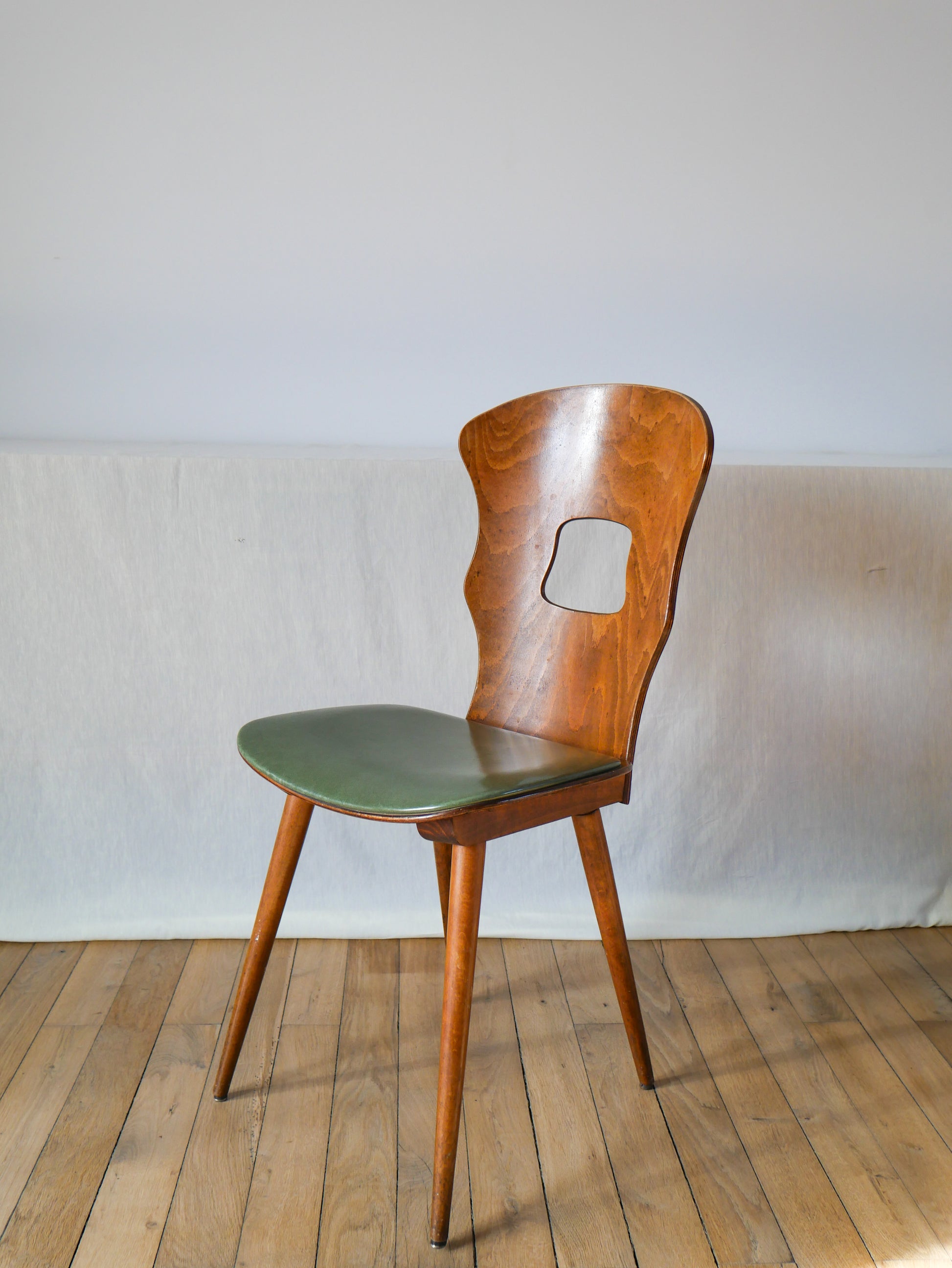Chaise baumann en bois et skaï modèle gentiane 1950