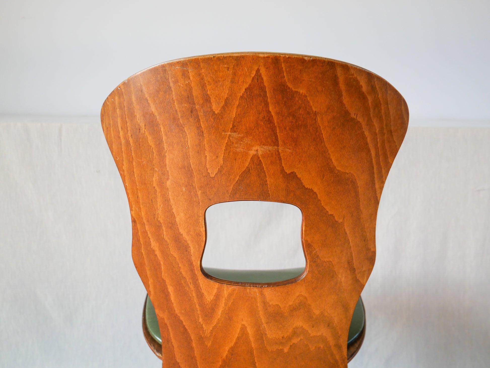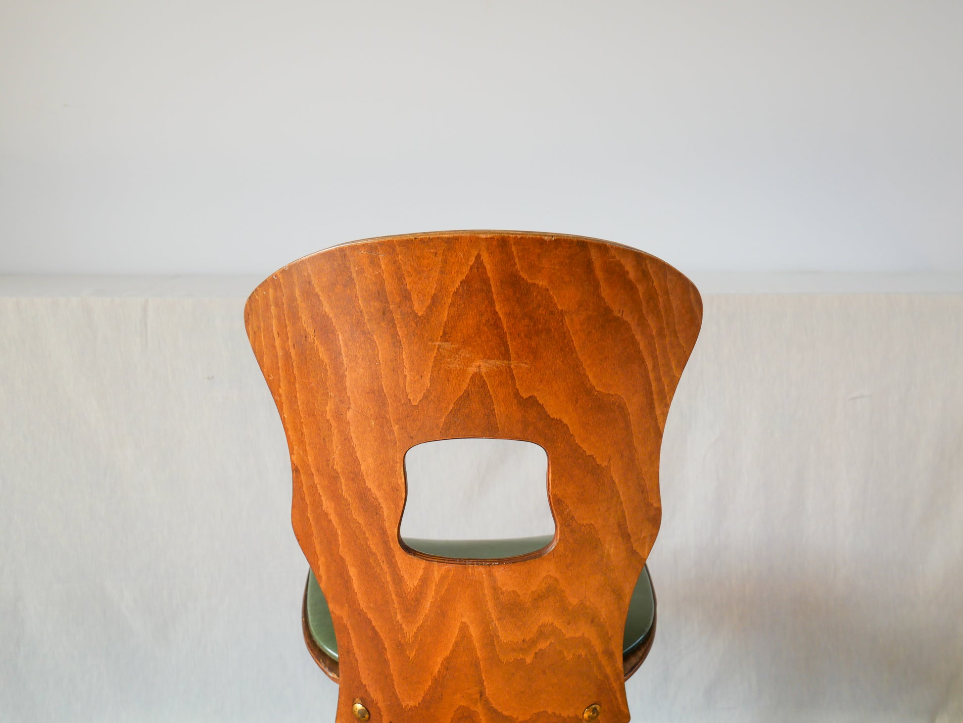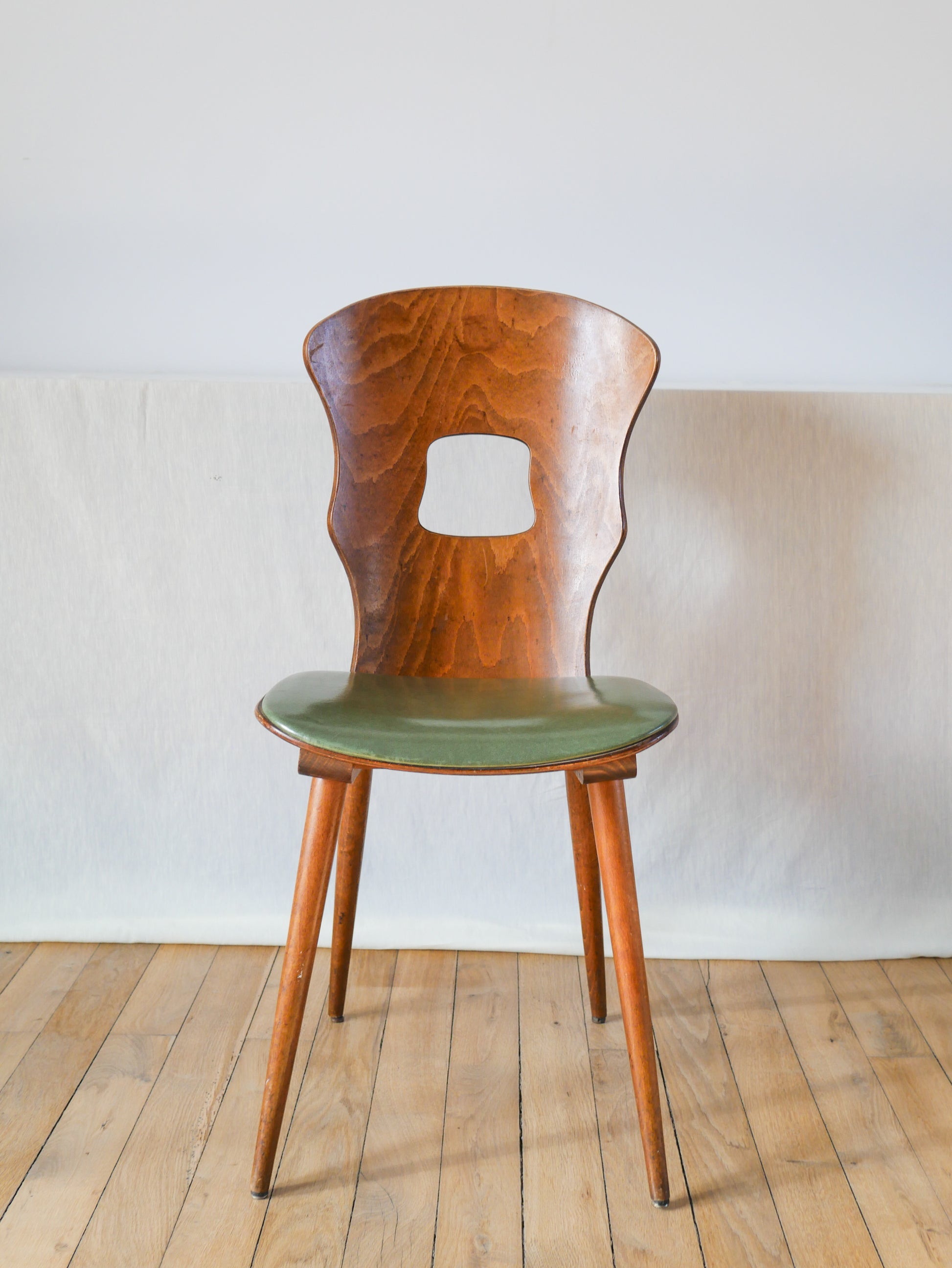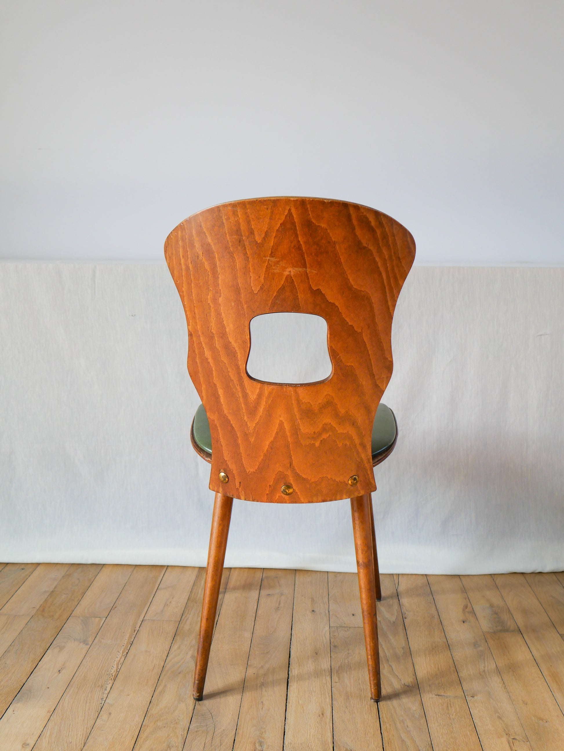 Chaise baumann en bois et skaï modèle gentiane 1950