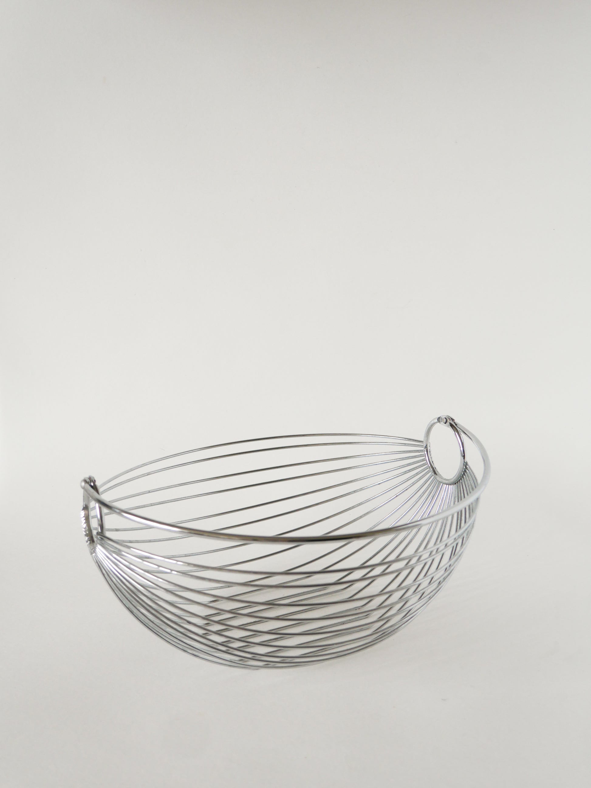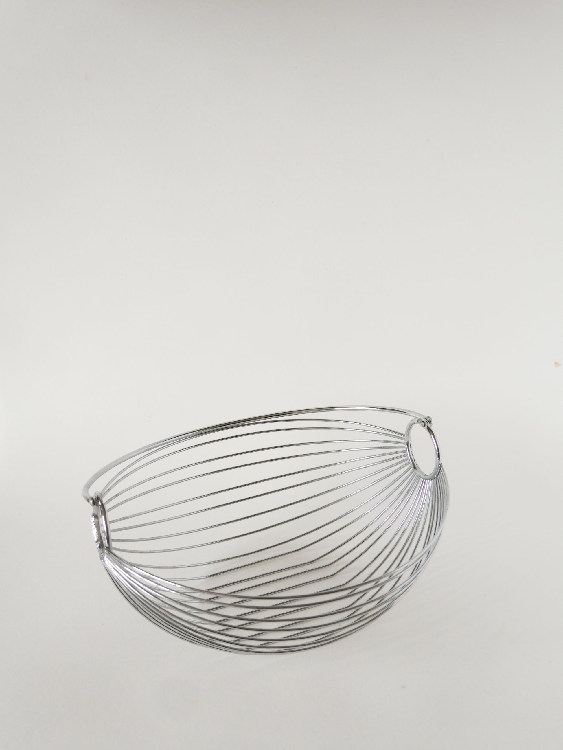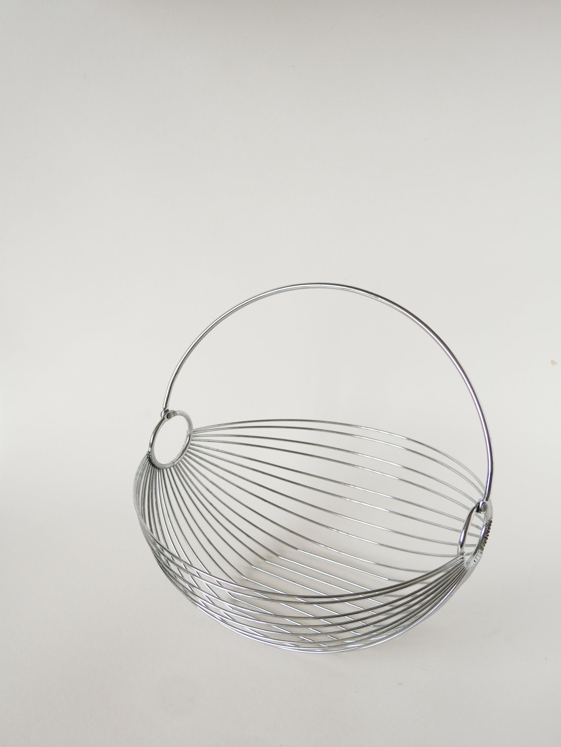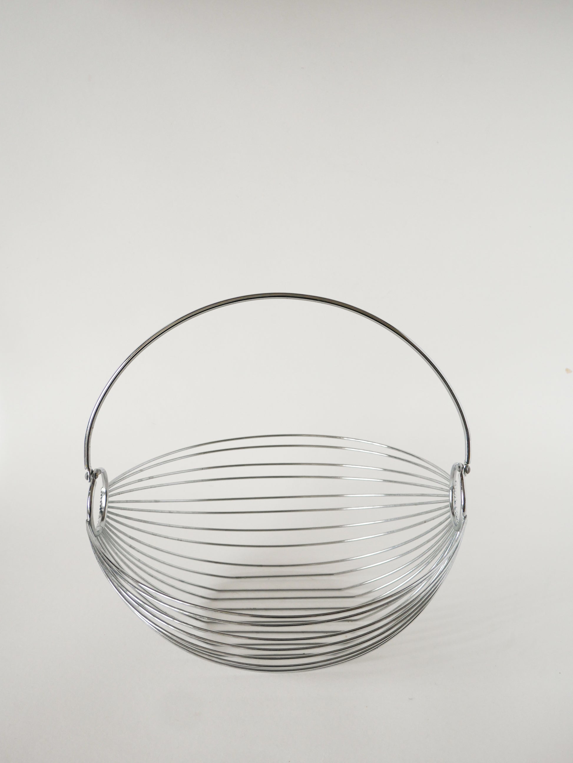 Jolie corbeille à fruits avec anse en inox, Design, 1970. En très bon état, de rares traces du temps. Envoi rapide et soigné. Possibilité d'envois groupés - plus économique et plus écologique ! Dimensions : 30 X 27 X 15 cm.