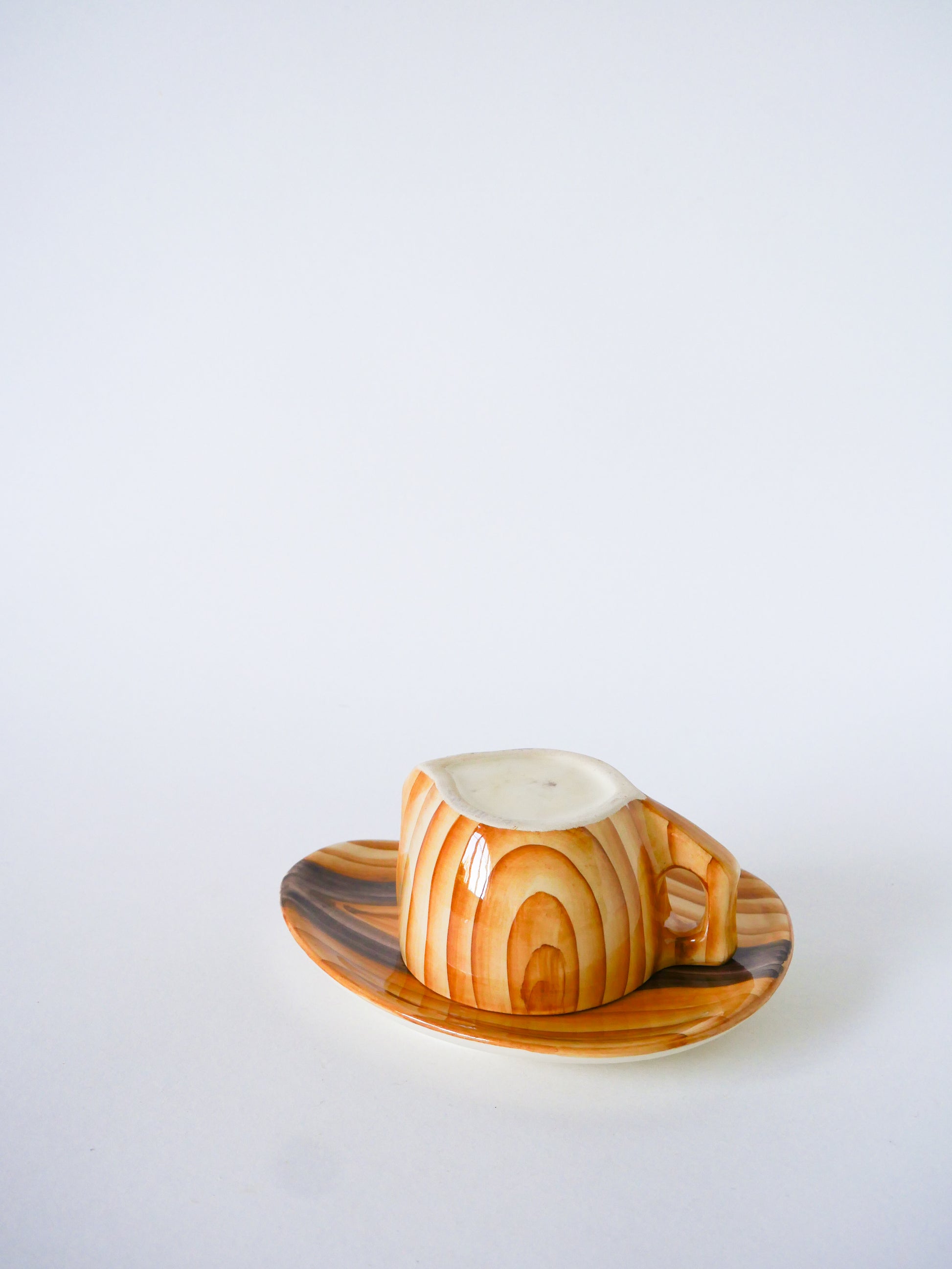 Magnifique déjeuner en céramique effet bois, Beige & Vert Pomme, Vallauris par Granjean Jourdan, 1960 . En excellent état. Envoi rapide et soigné. Possibilité d'envois groupés - plus économique et plus écologique ! Dimensions : 9 X 6 cm ; 17 X 14 cm.