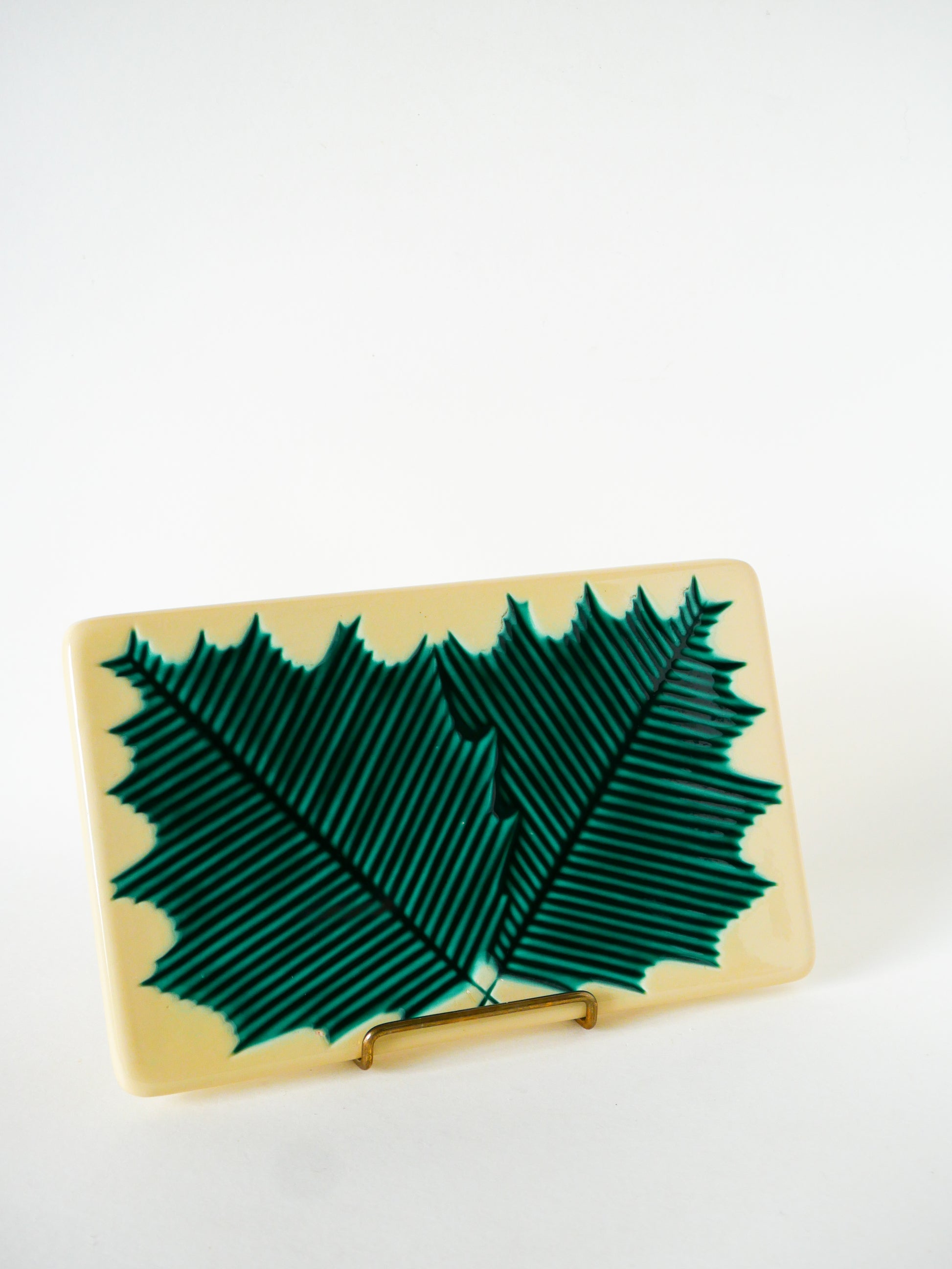 Dessous de plat en céramique modèle Feuille, Gien, 1960