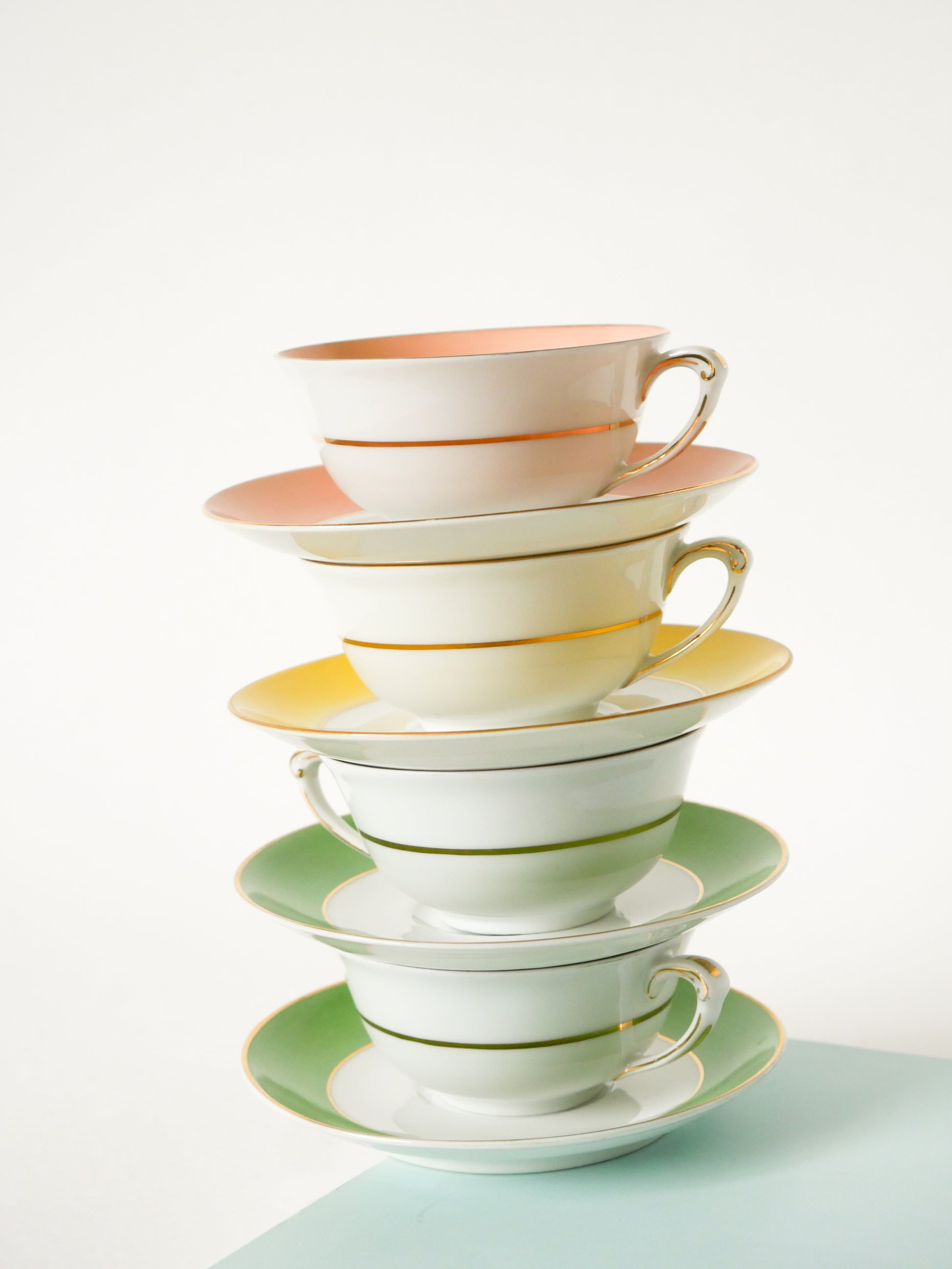 Duo de tasses à café colorées GDA Limoges, Vert, Made in France, 1950