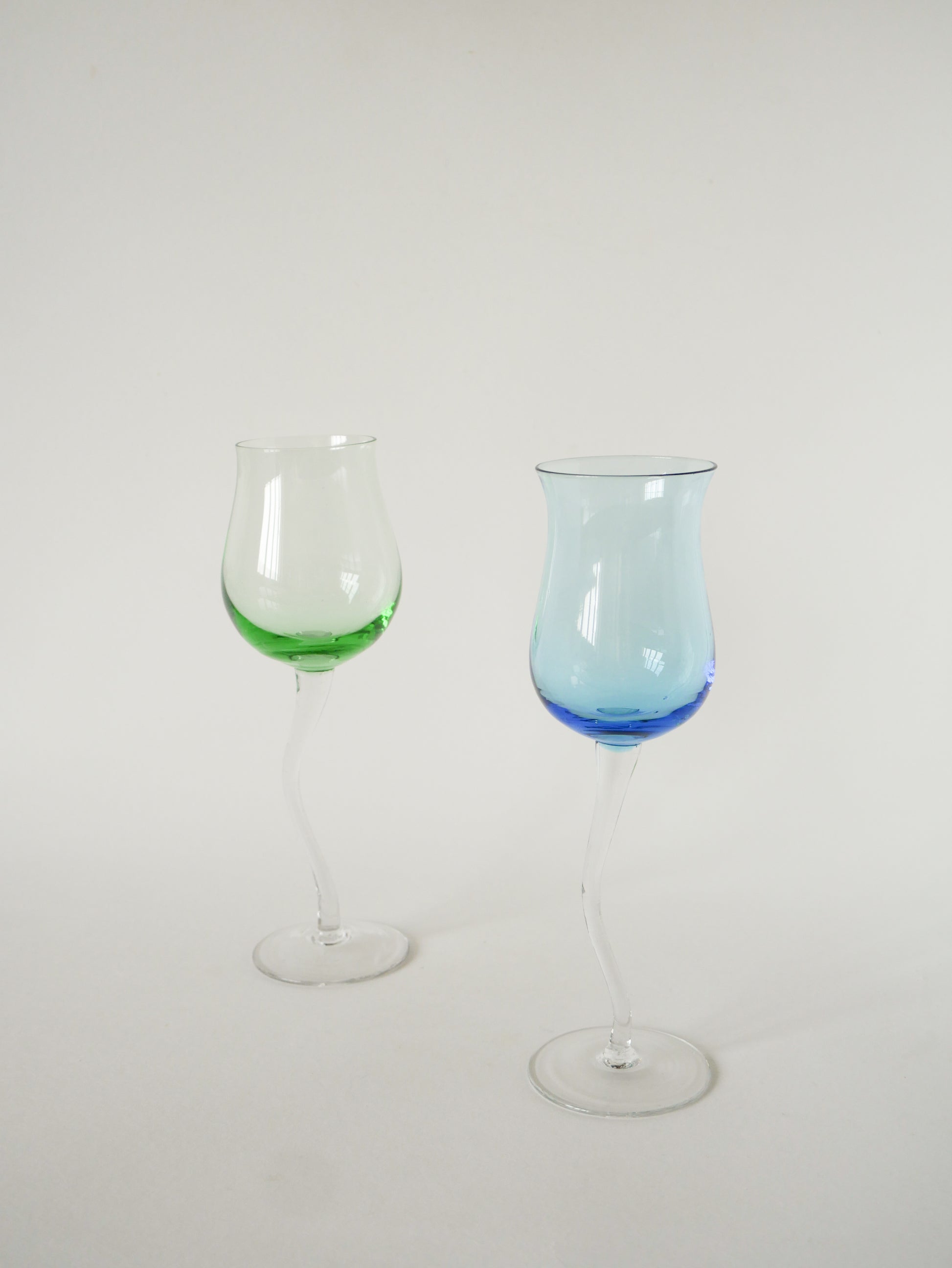 Duo de verres à vin, Curve, Bleu et Vert, 1980