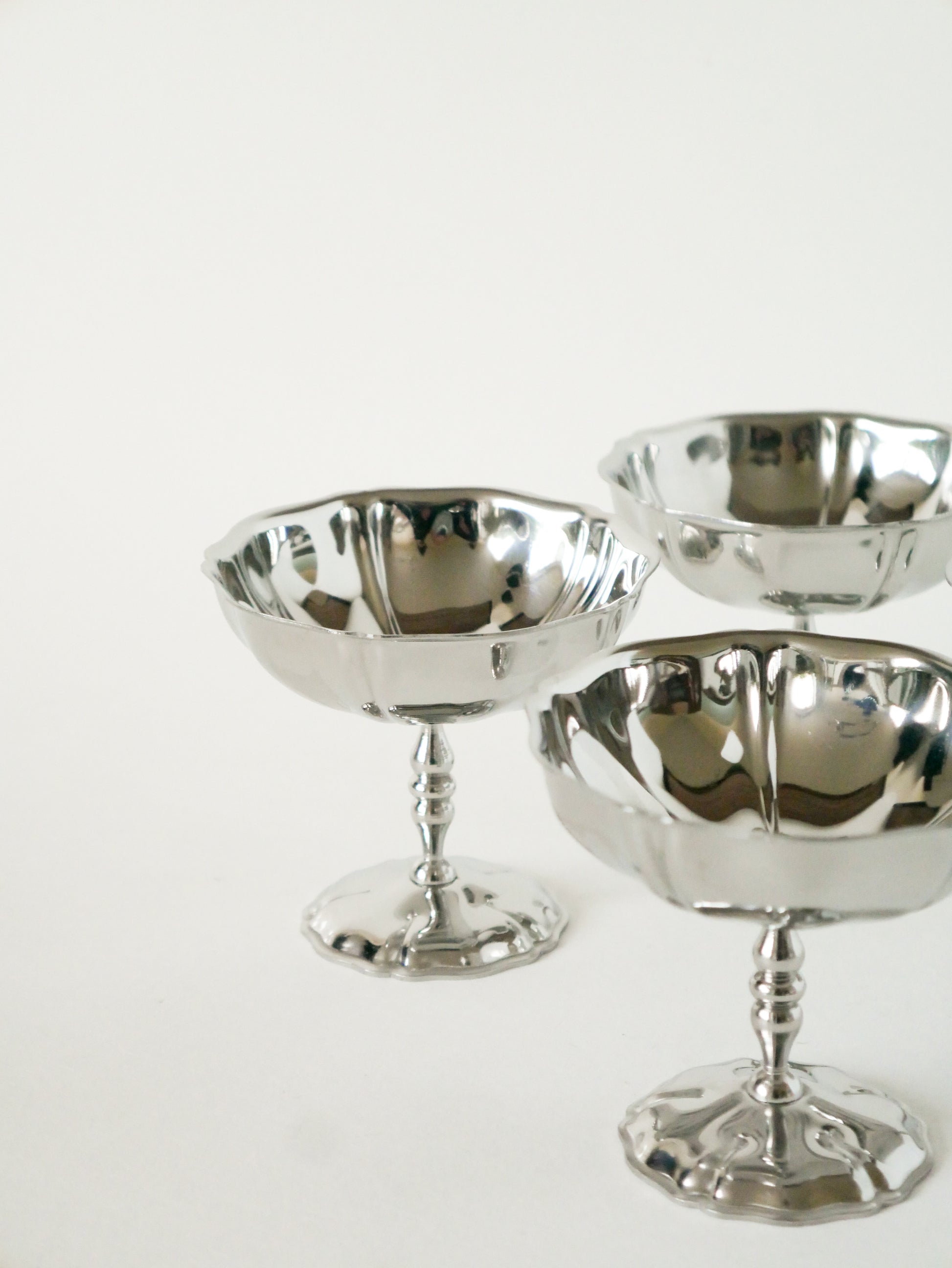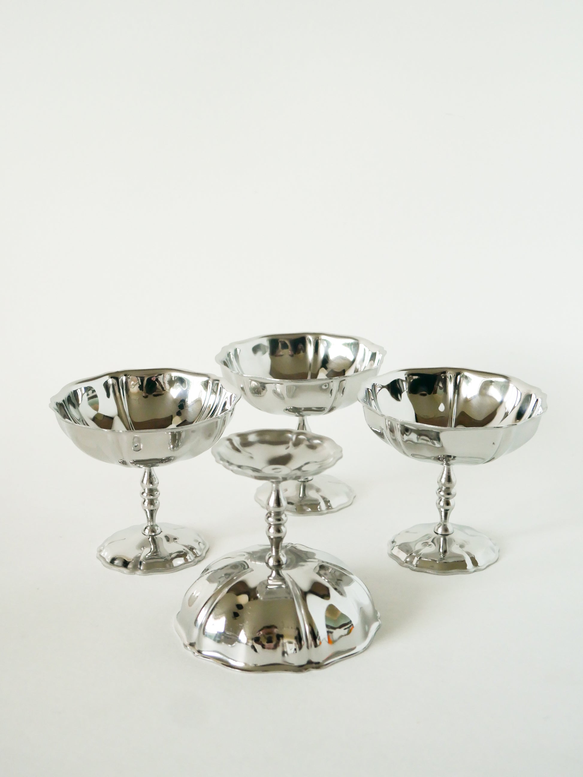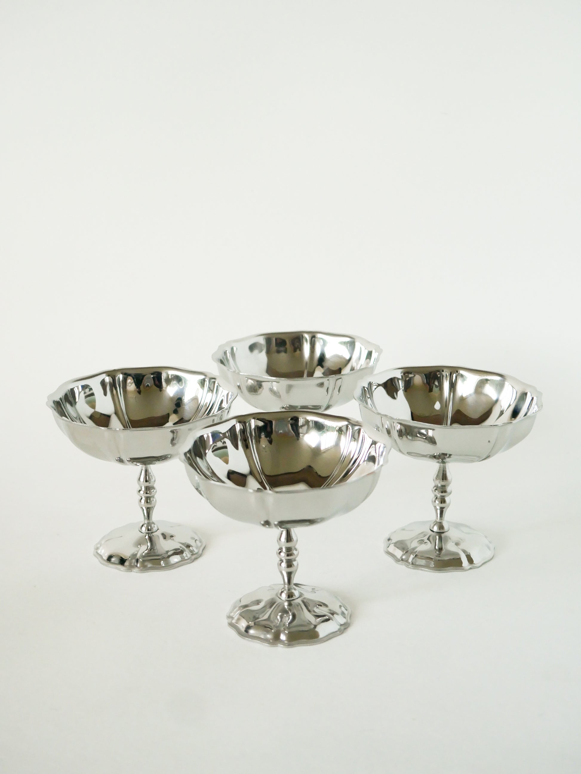 Ensemble de 4 coupes à glace en inox hautes, pieds fins travaillés, Design, 1970