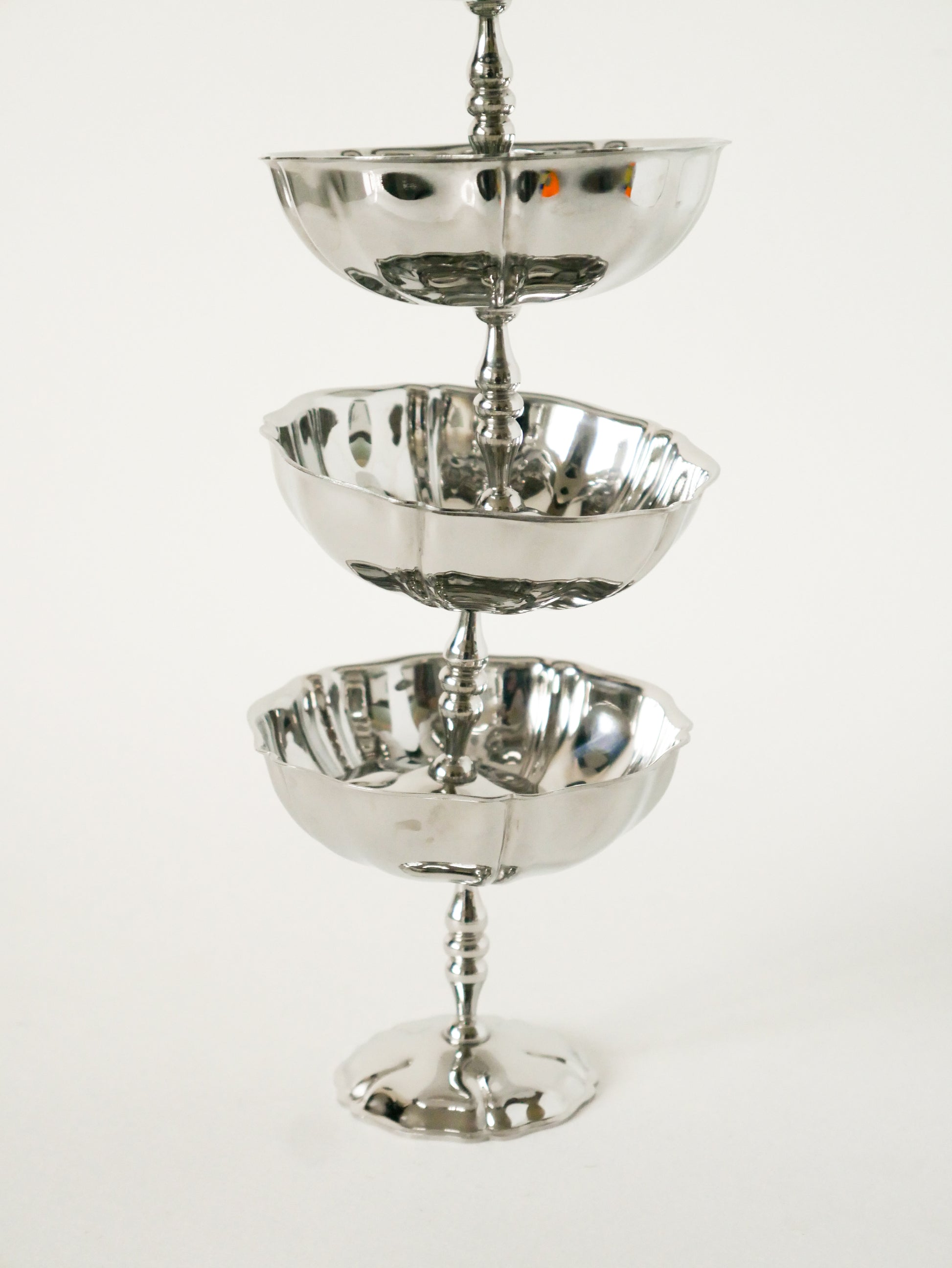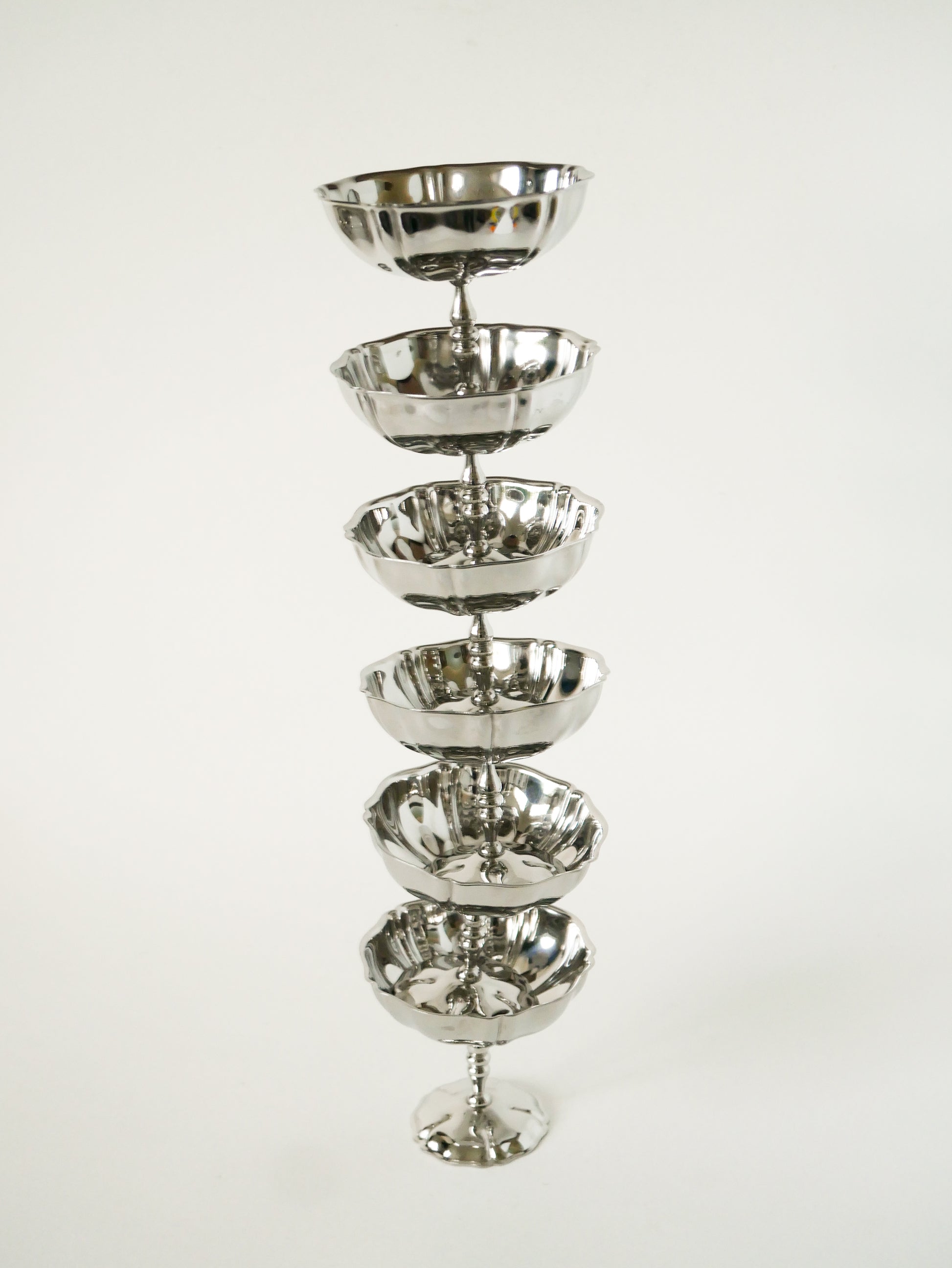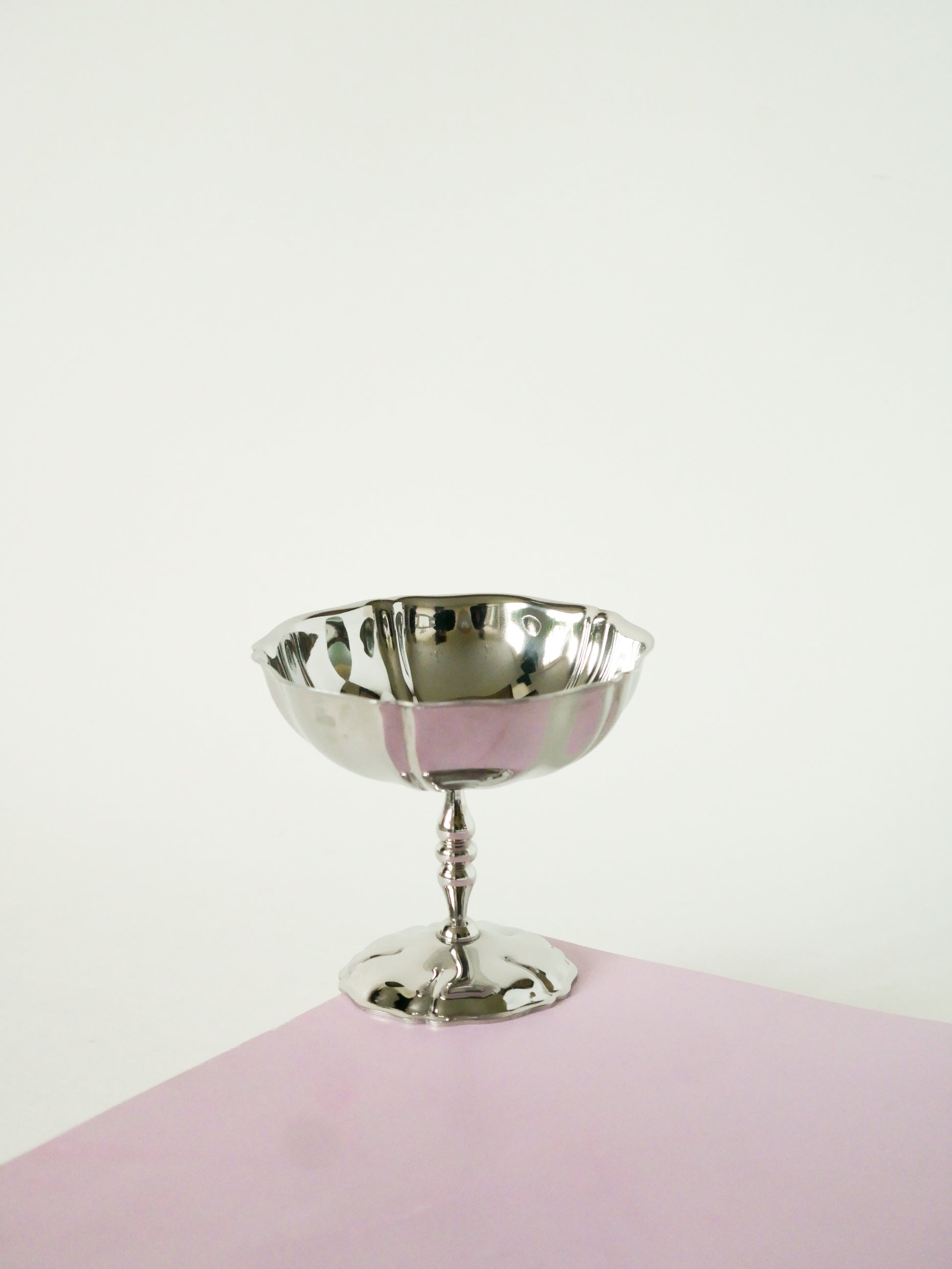 Ensemble de 4 coupes à glace en inox hautes, pieds fins travaillés, Design, 1970