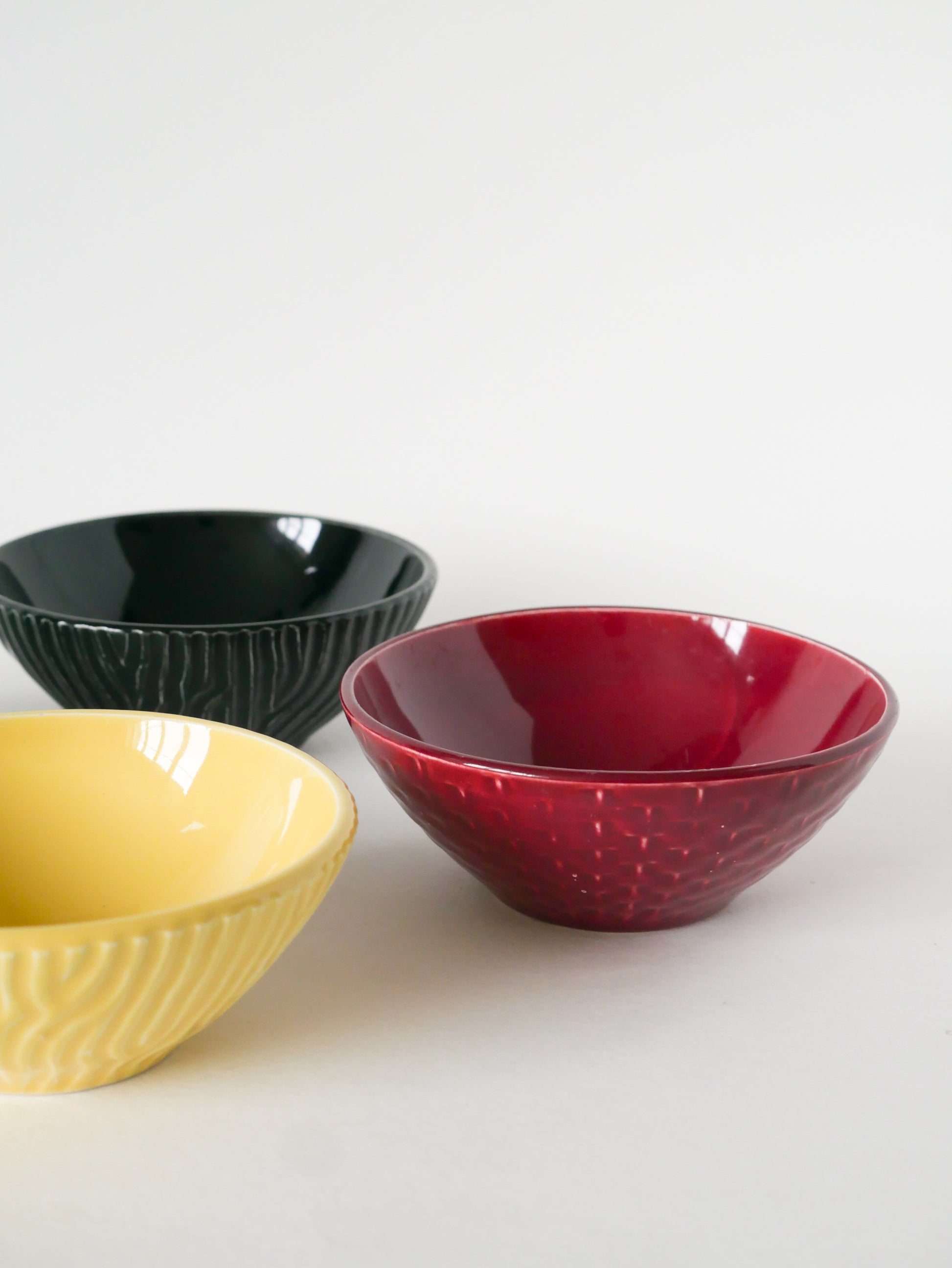 Ensemble de 4 petits bols en céramique, Effet Bambou, Sarreguemines, 1960