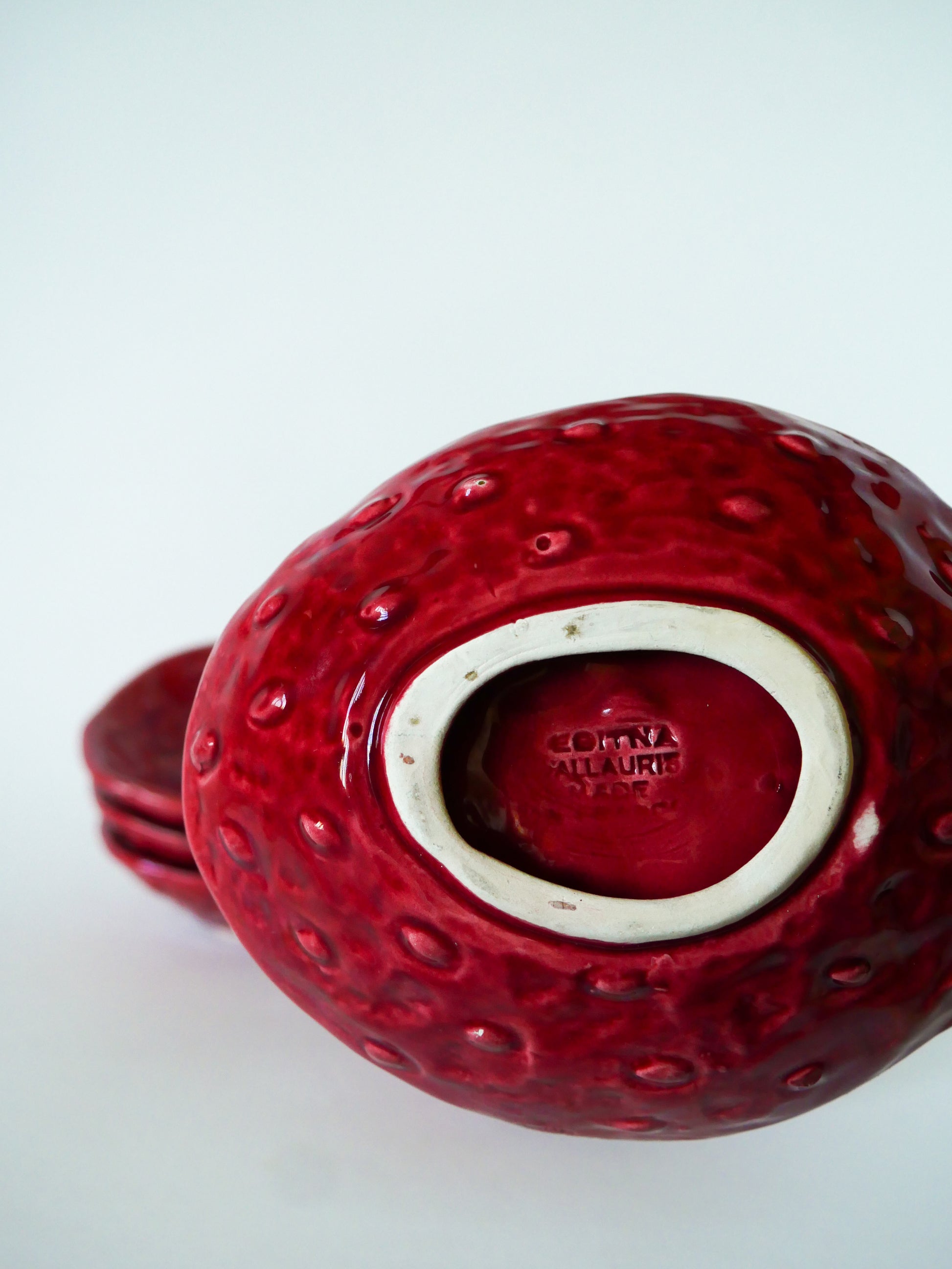 Ensemble de 6 ramequins en barbotine, modèle Framboise, Vallauris, 1970