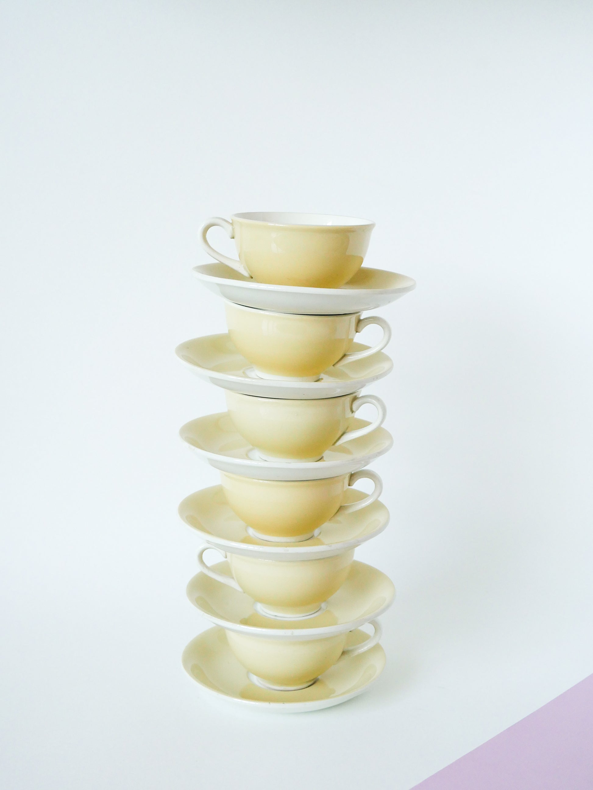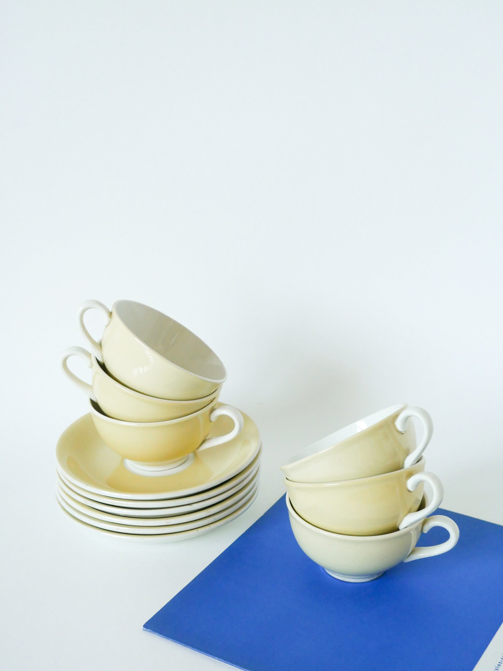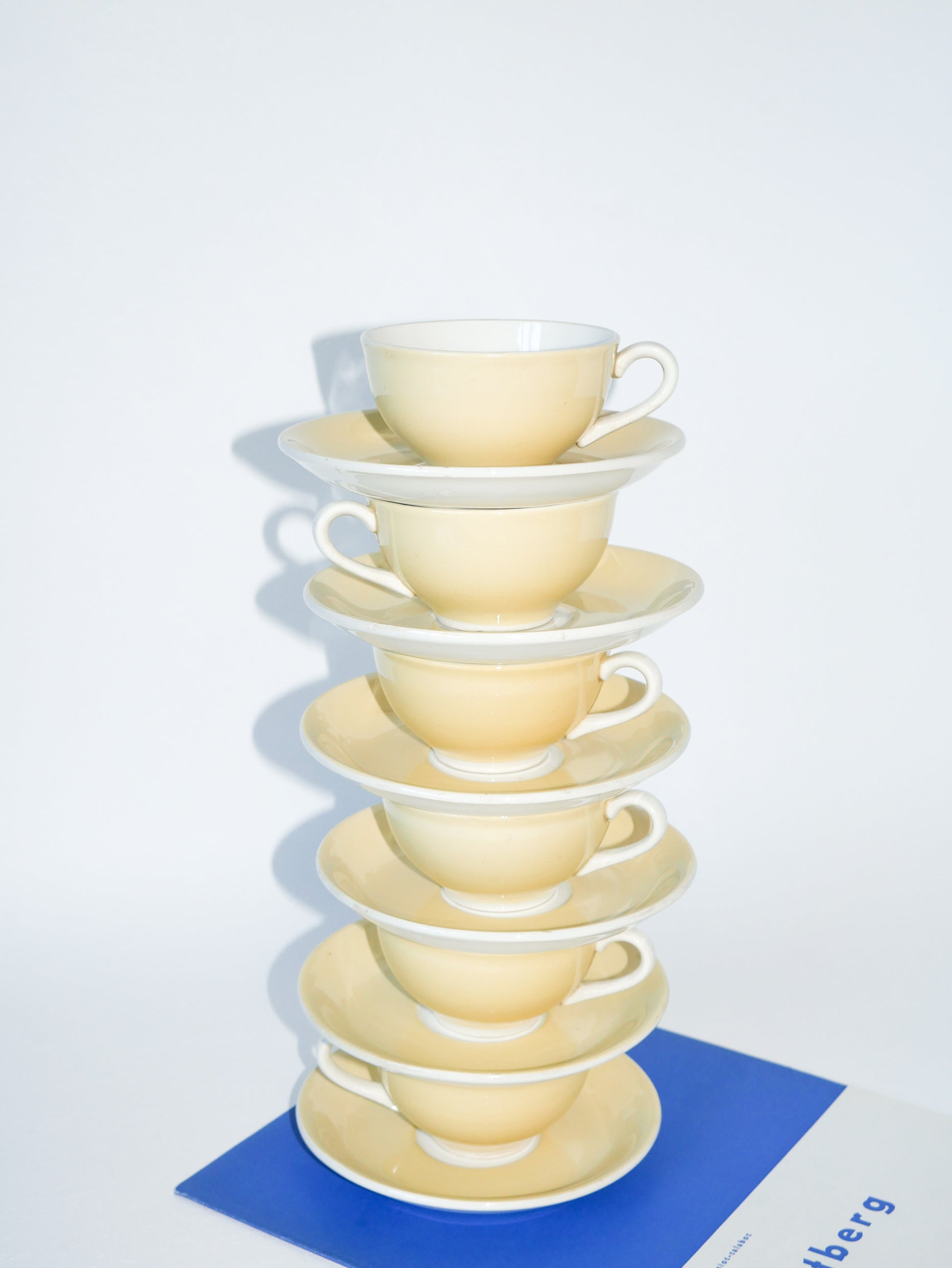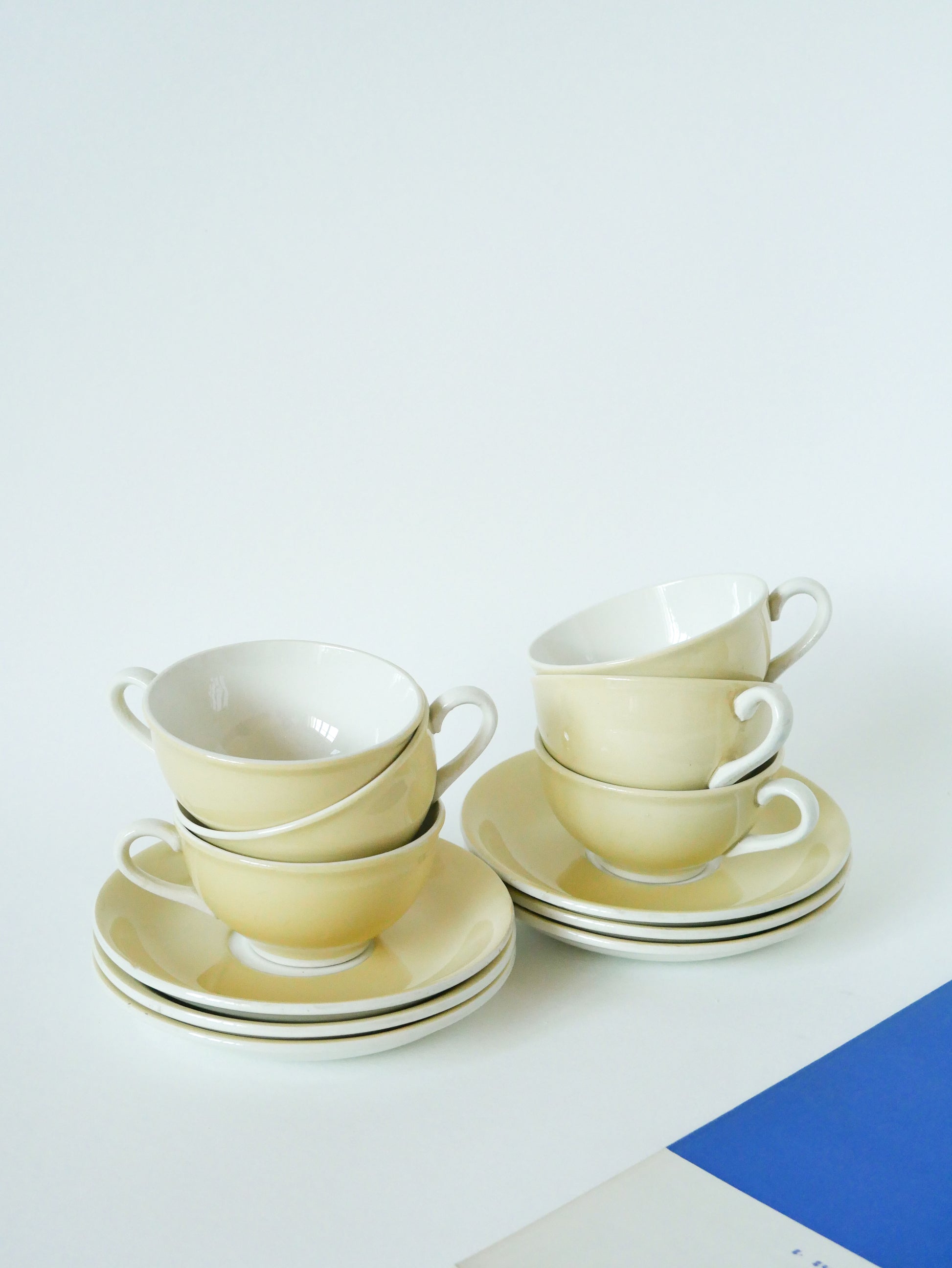 Ensemble de 6 tasses Pastel "Jaune" Digoin Sarreguemines, 1960