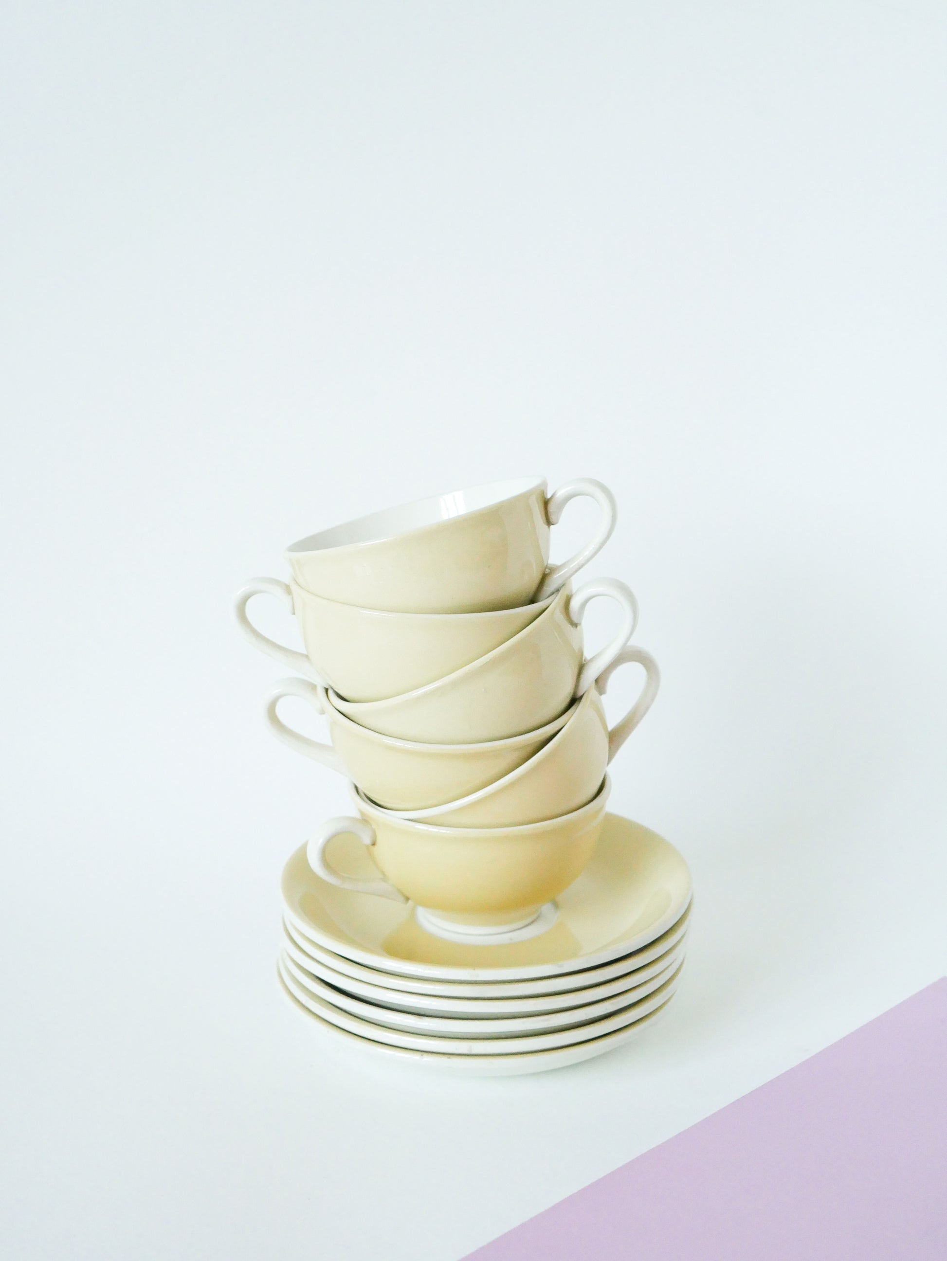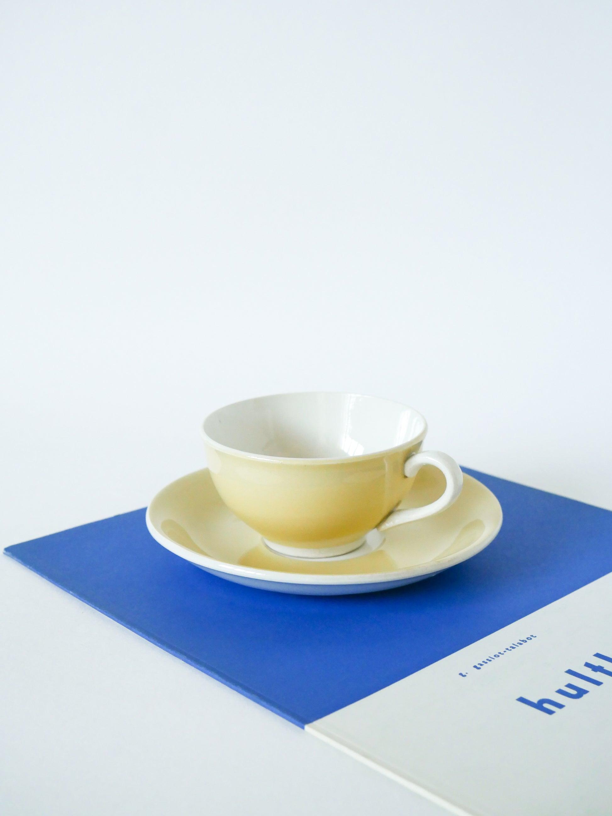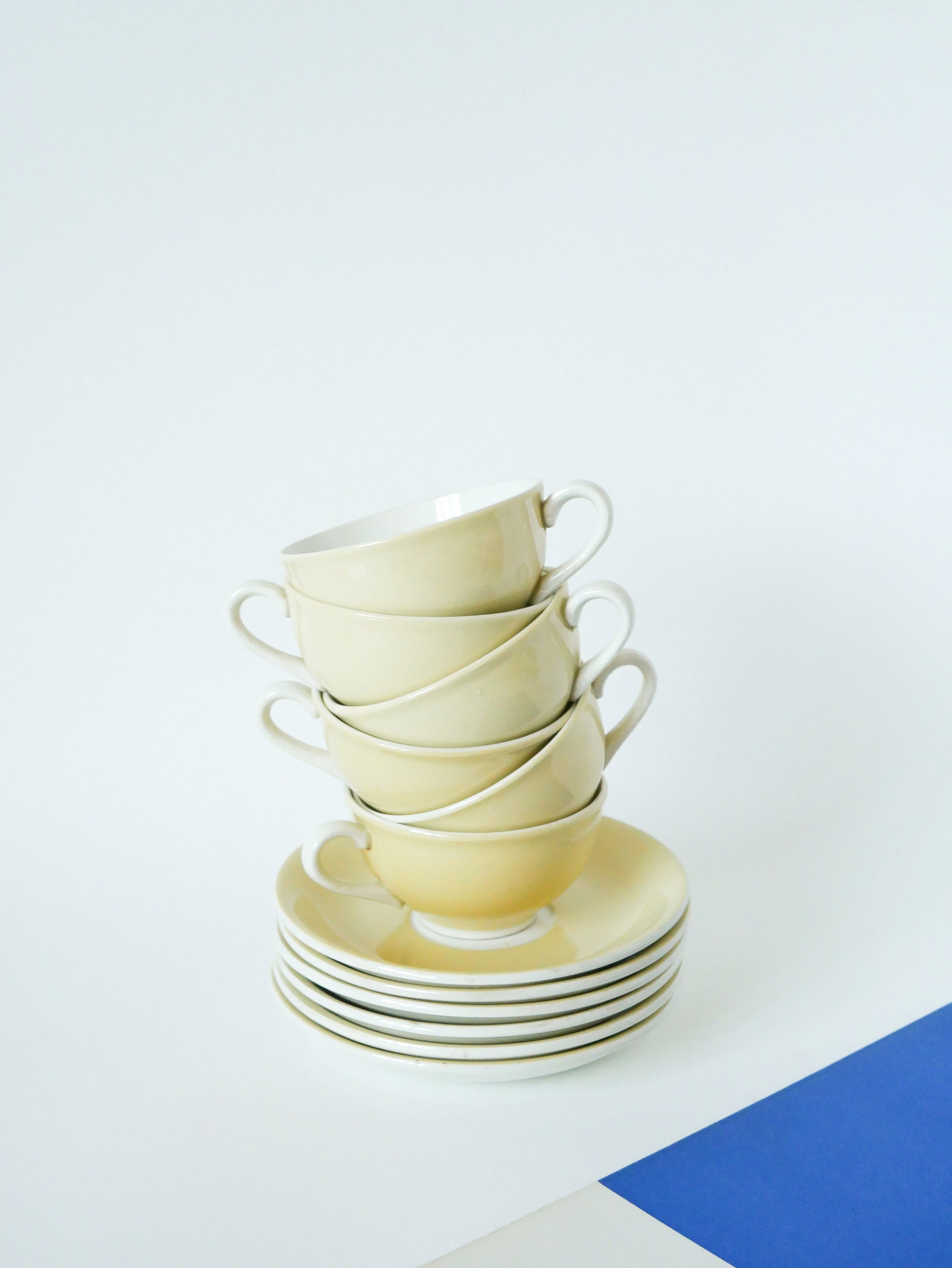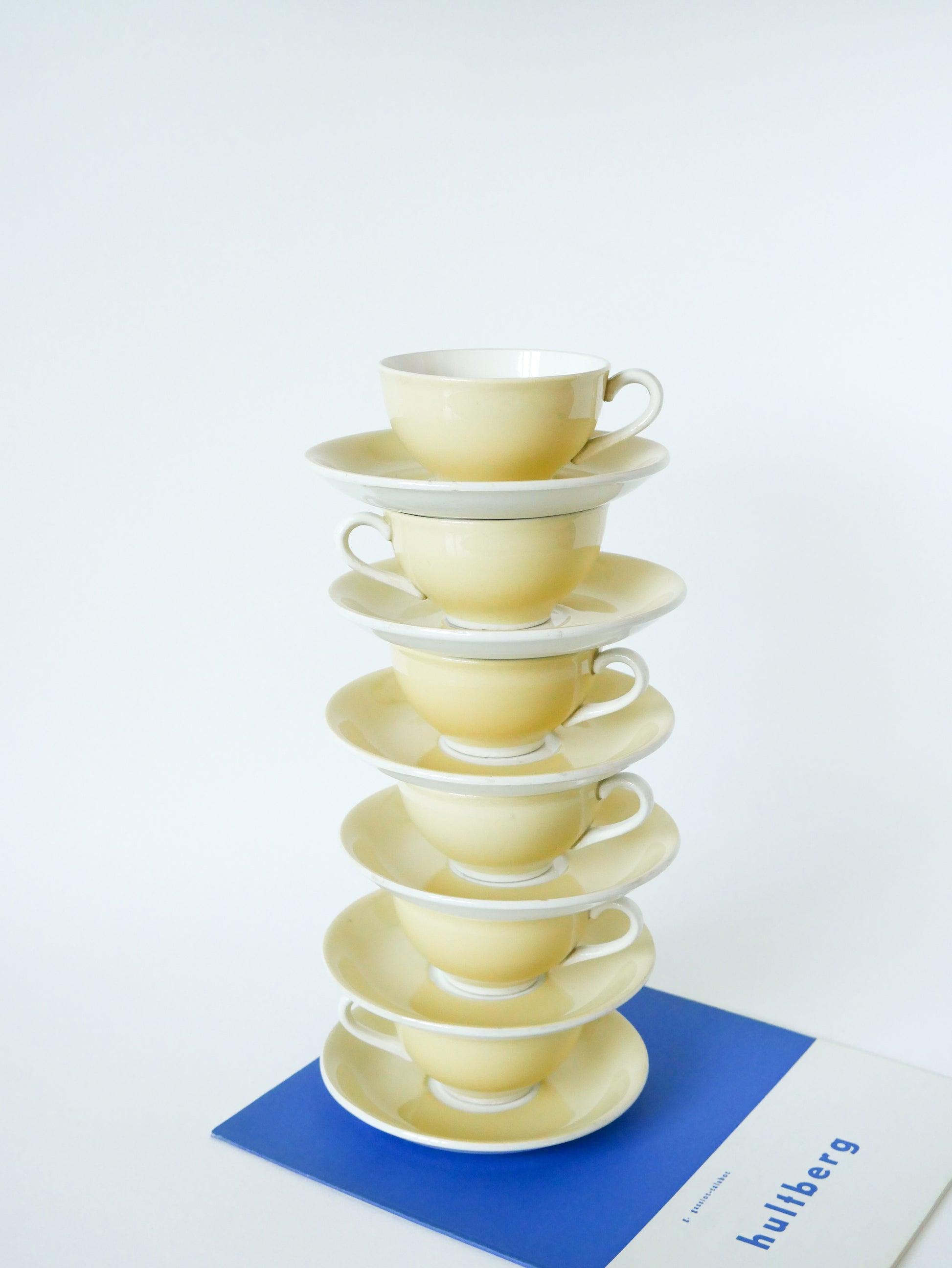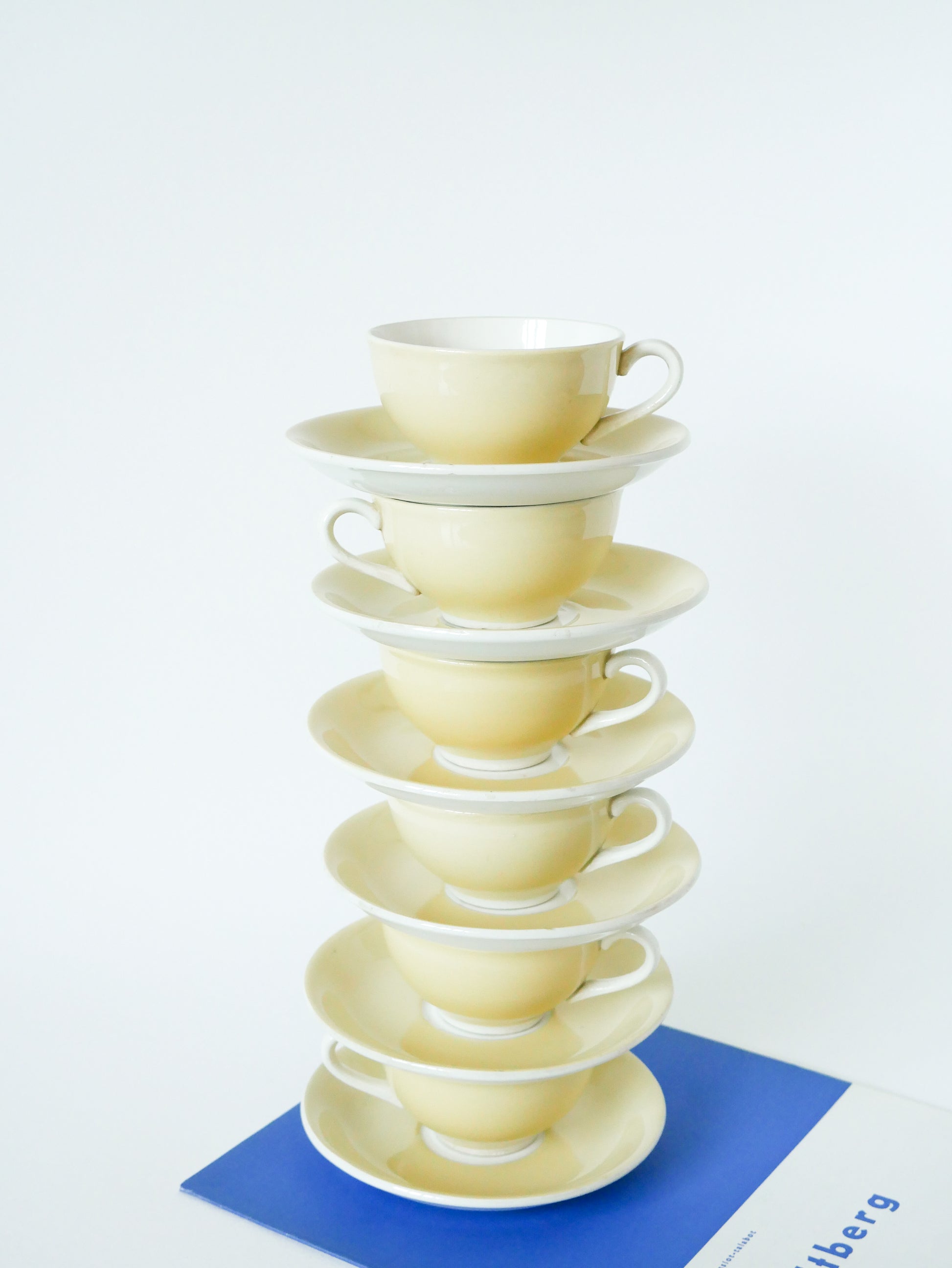 Ensemble de 6 tasses Pastel "Jaune" Digoin Sarreguemines, 1960