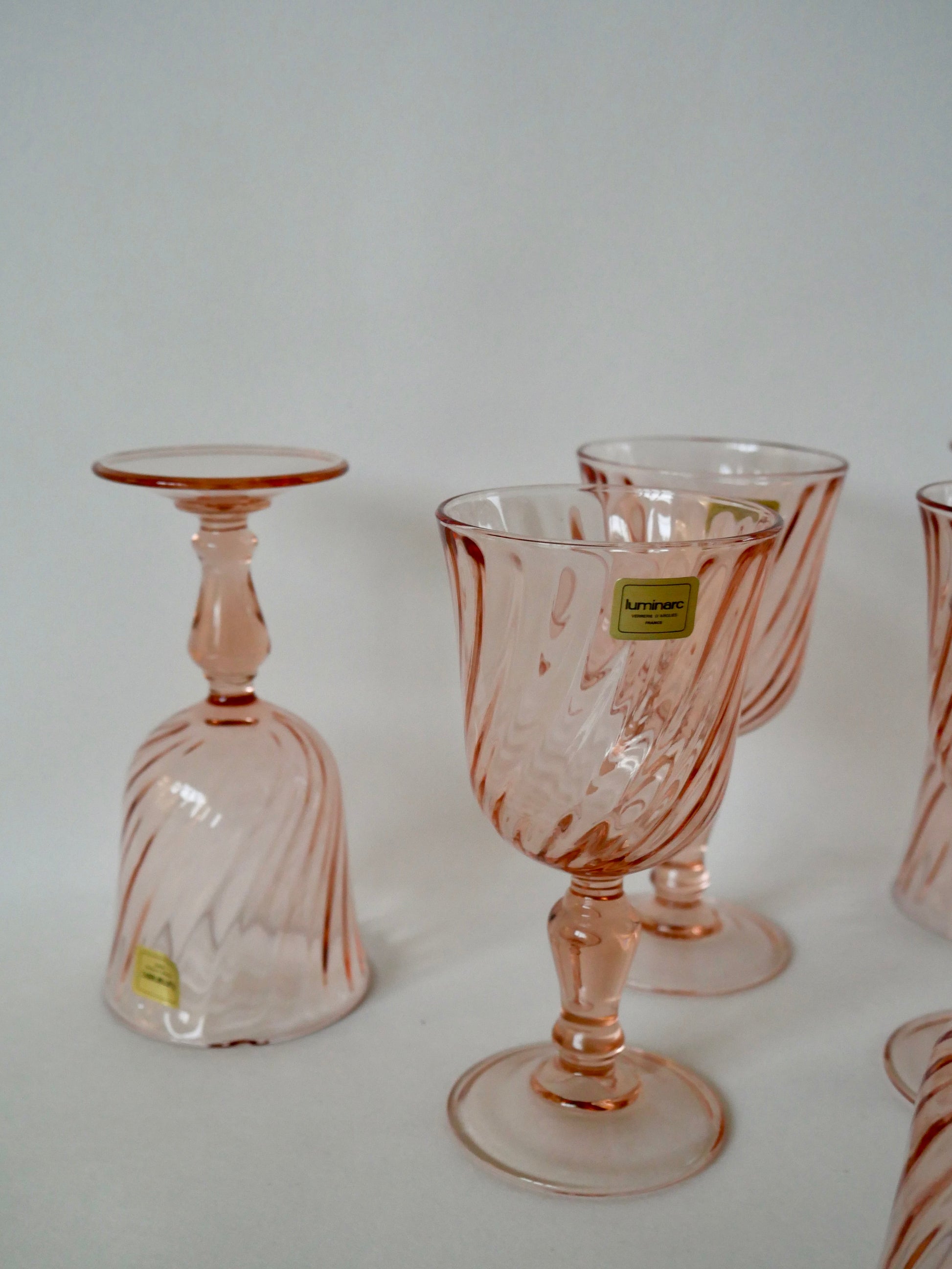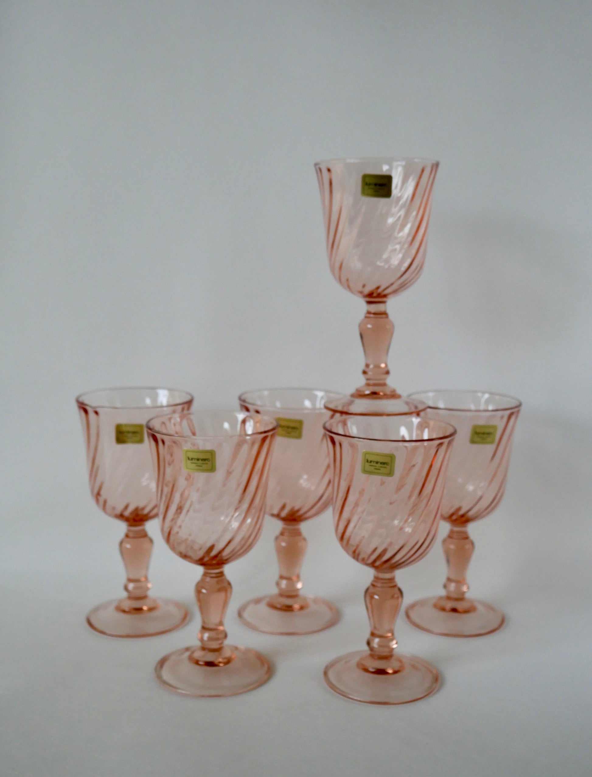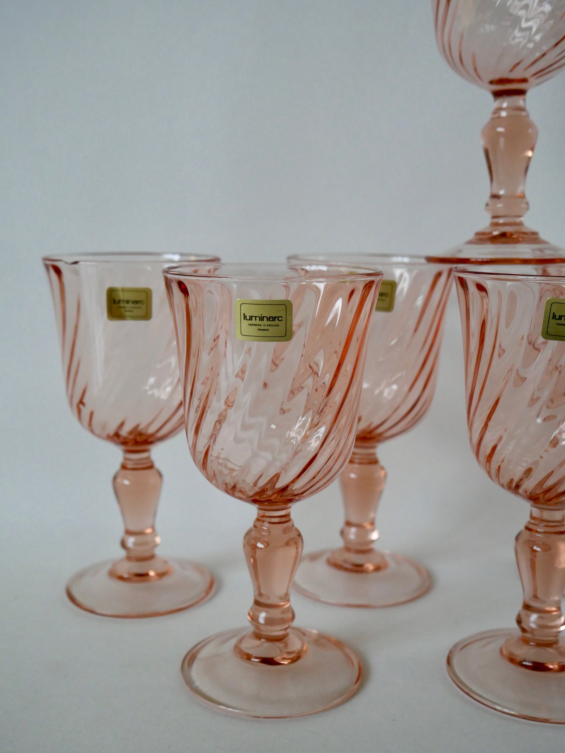 Ensemble de 6 verres à vin Rosaline Luminarc en verre rose facetté 18cl années 60