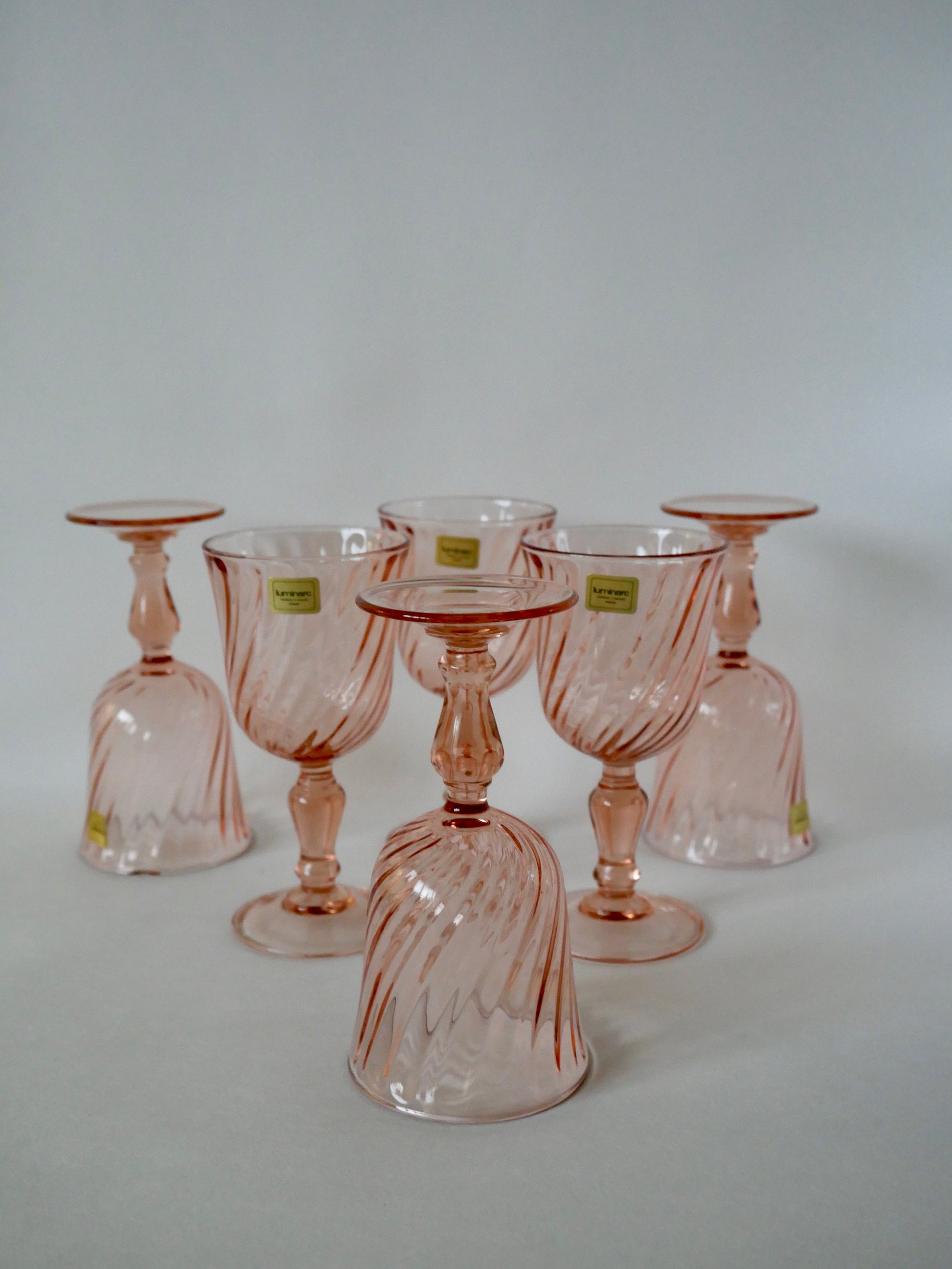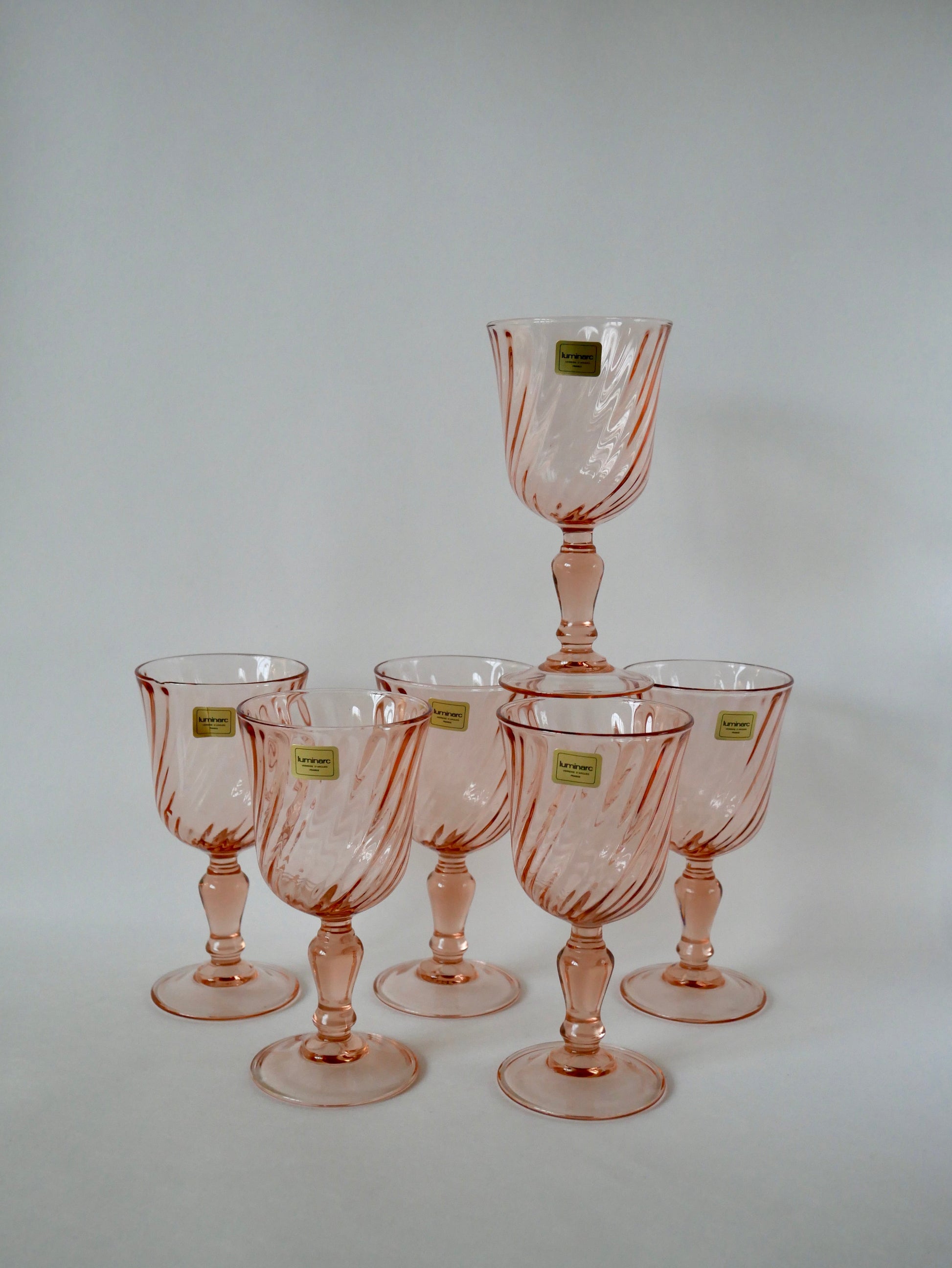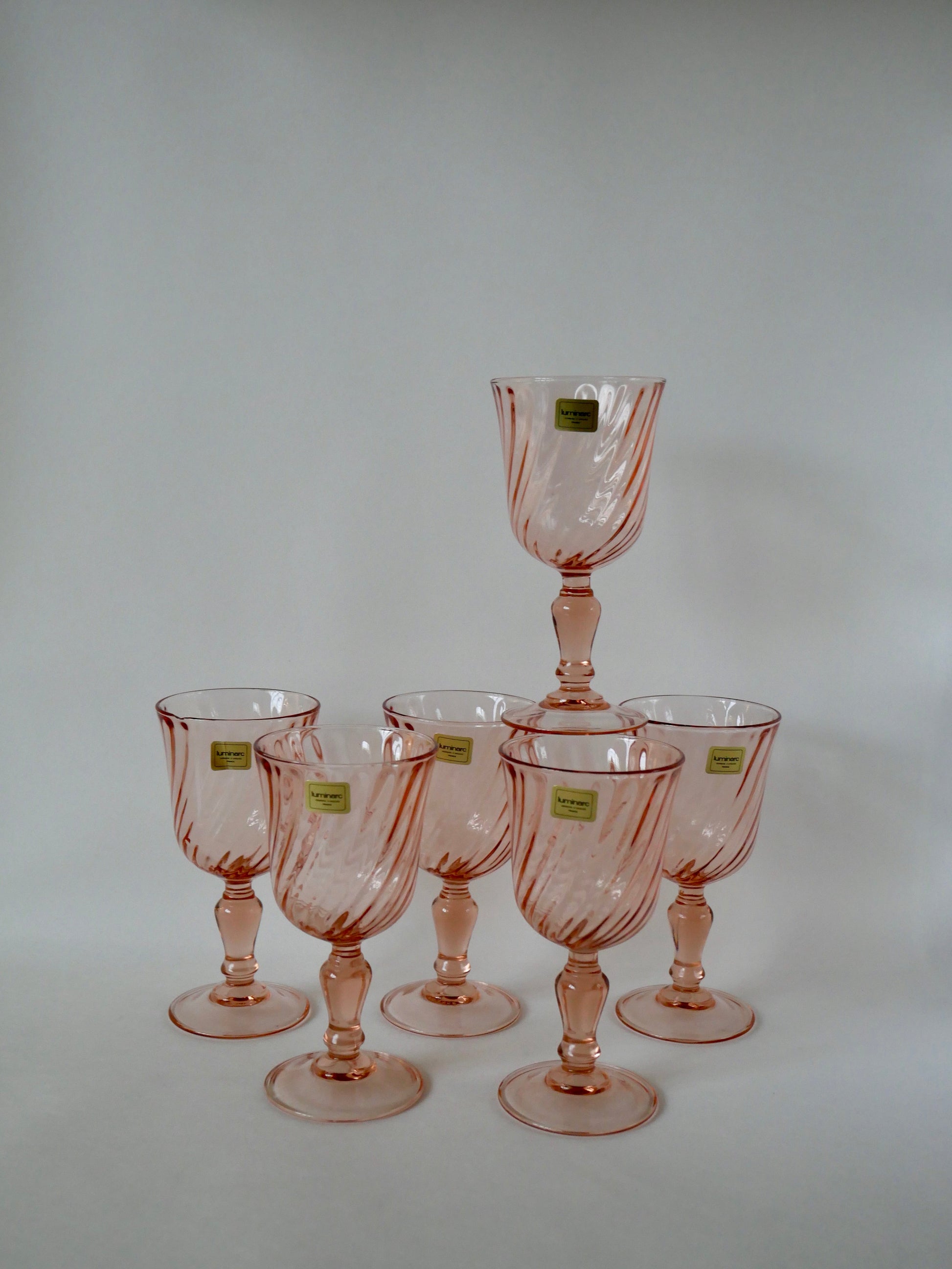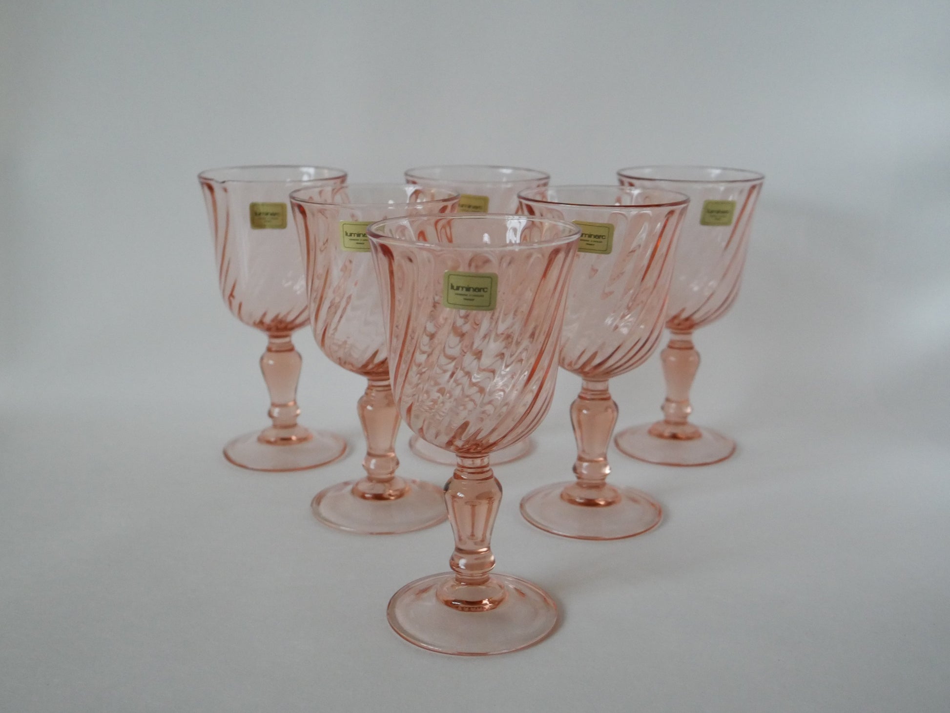 Ensemble de 6 verres à vin Rosaline Luminarc en verre rose facetté 18cl années 60