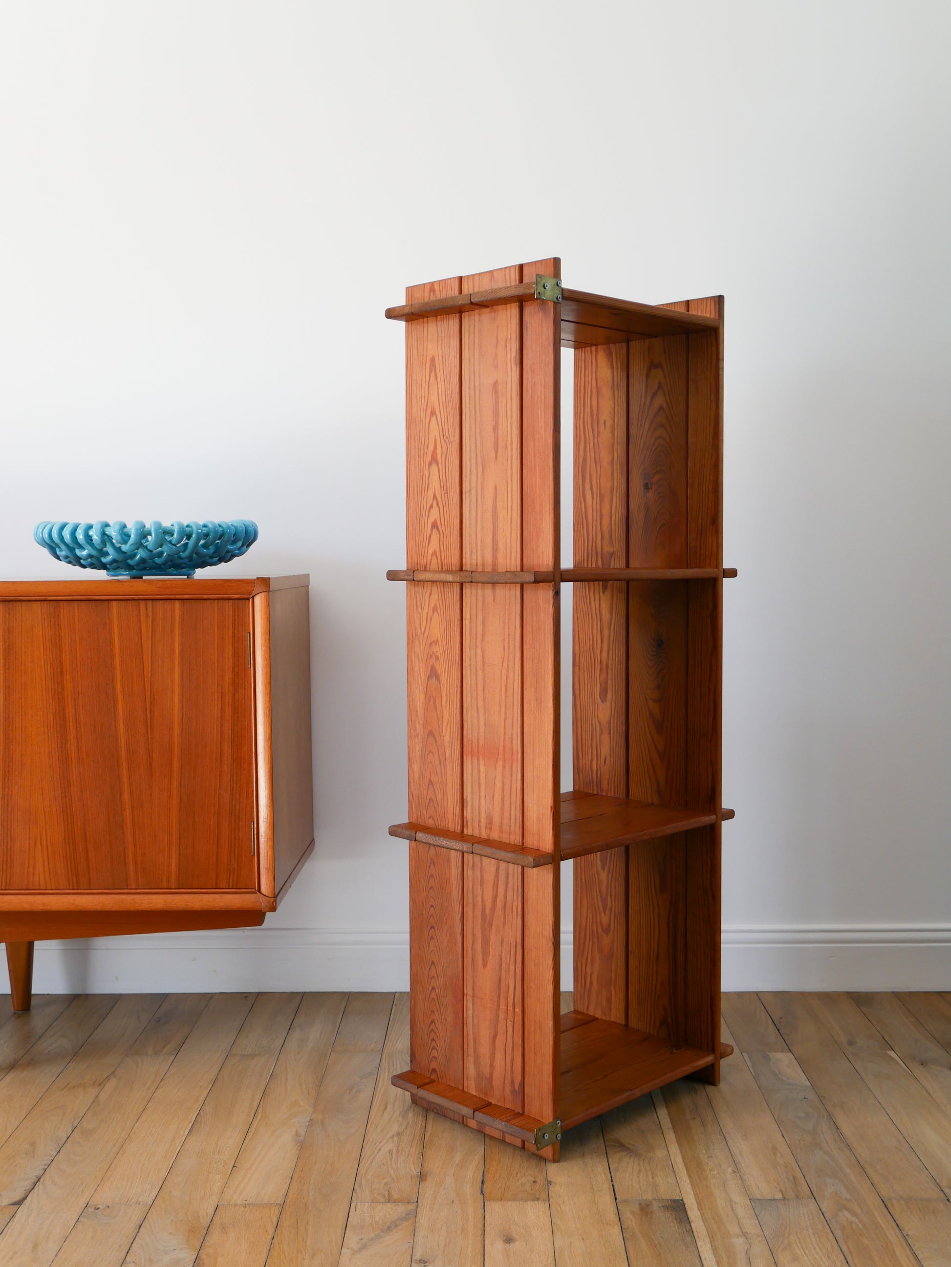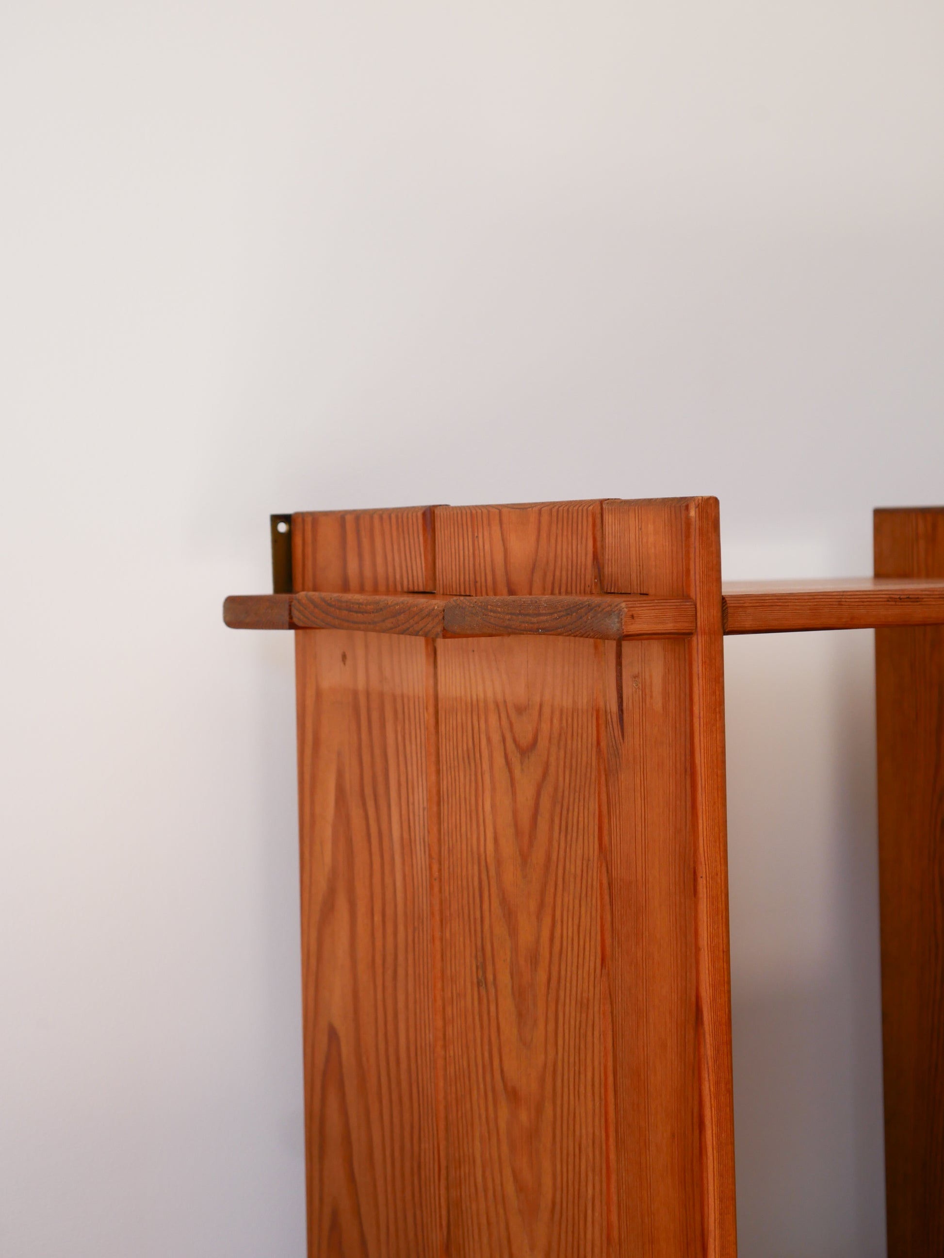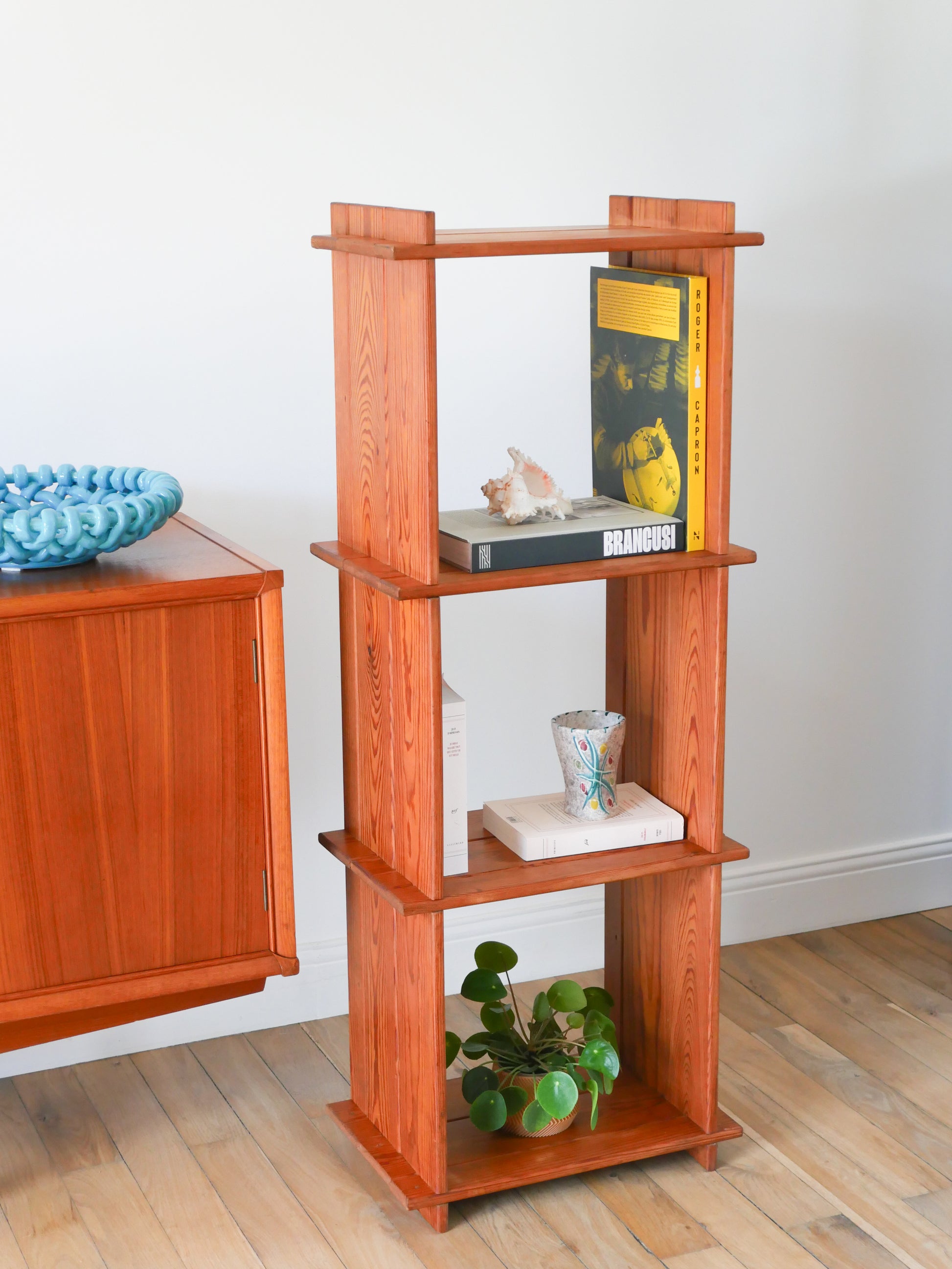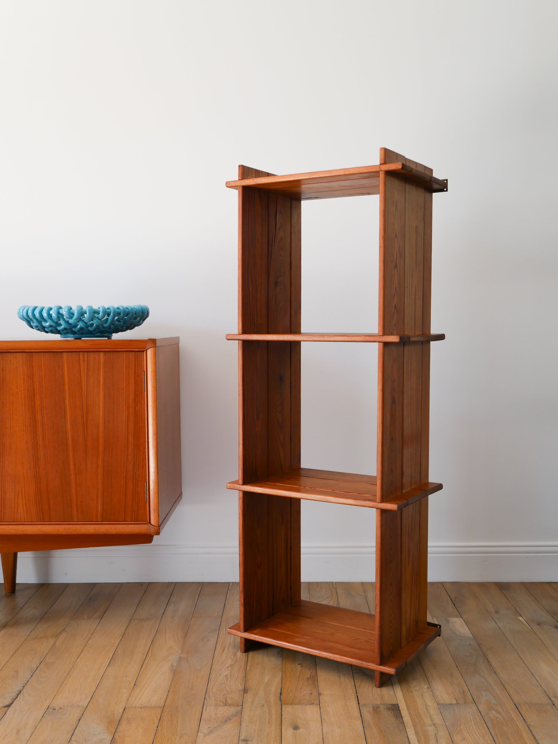 Superbe étagère en pin, sur pieds ou à poser, 1980. En très bon état, de rares traces du temps. Envoi rapide et soigné. Possibilité d'envois groupés - plus économique et plus écologique ! Dimensions : 118 X 45 X 25 cm.