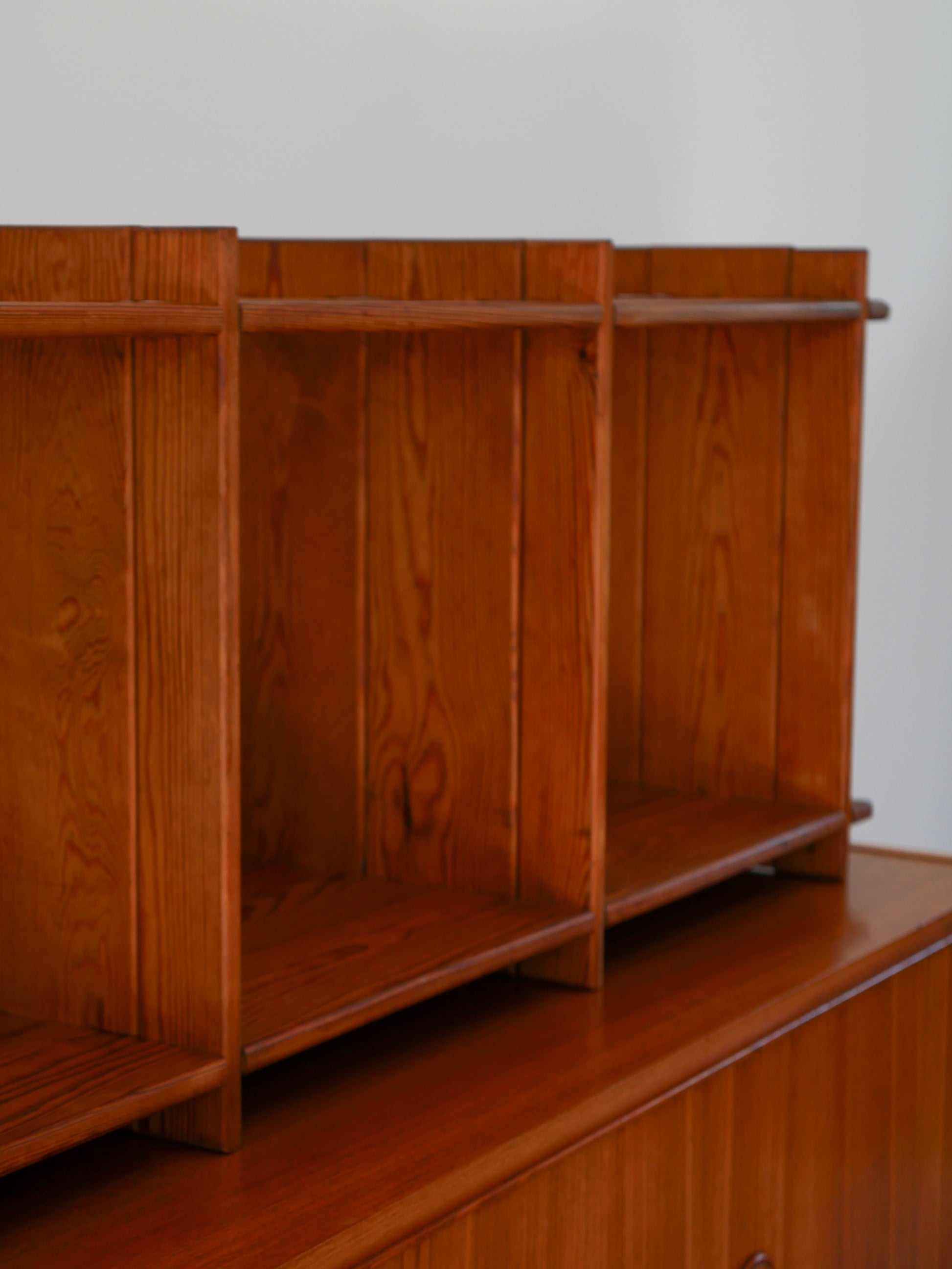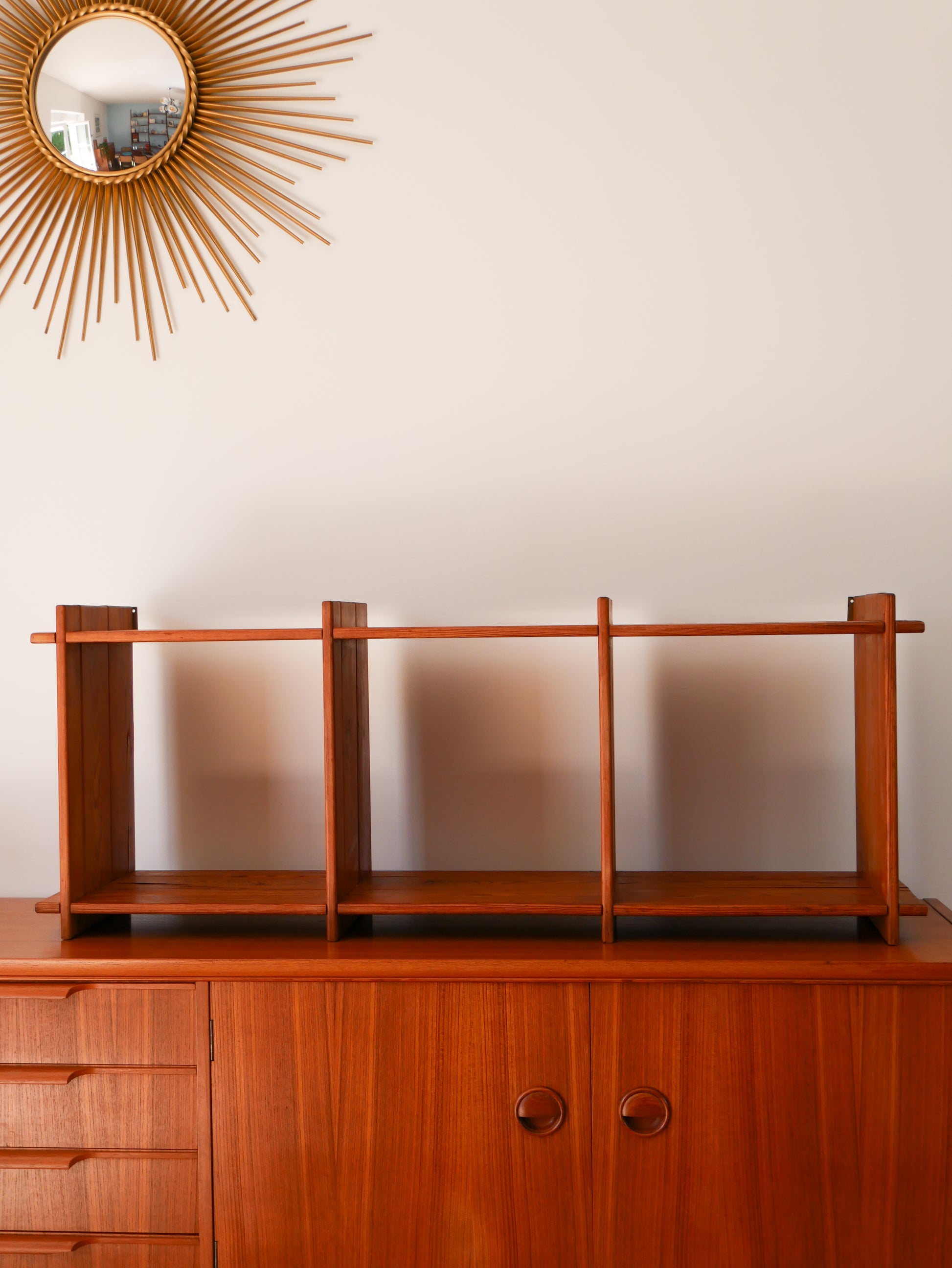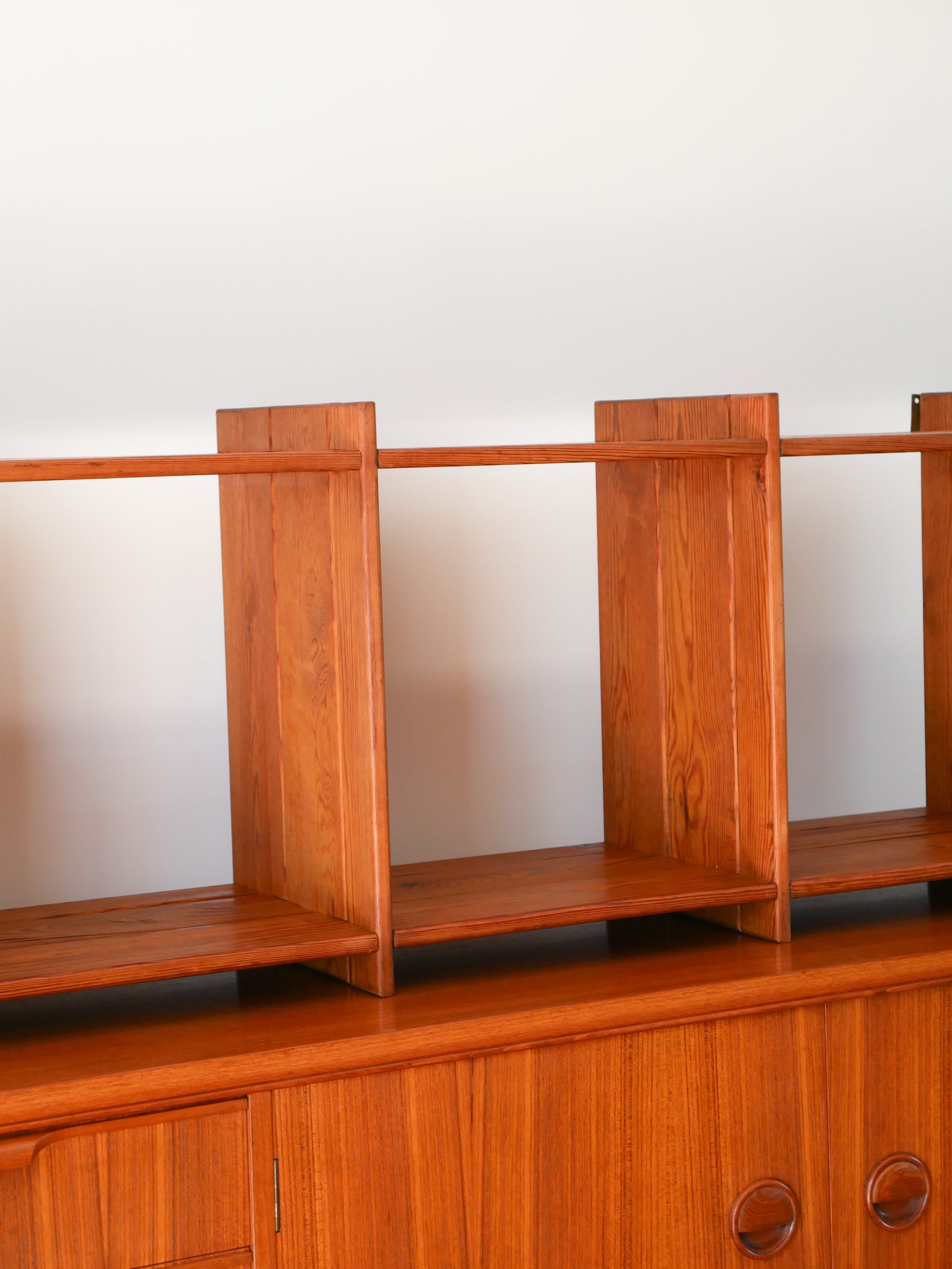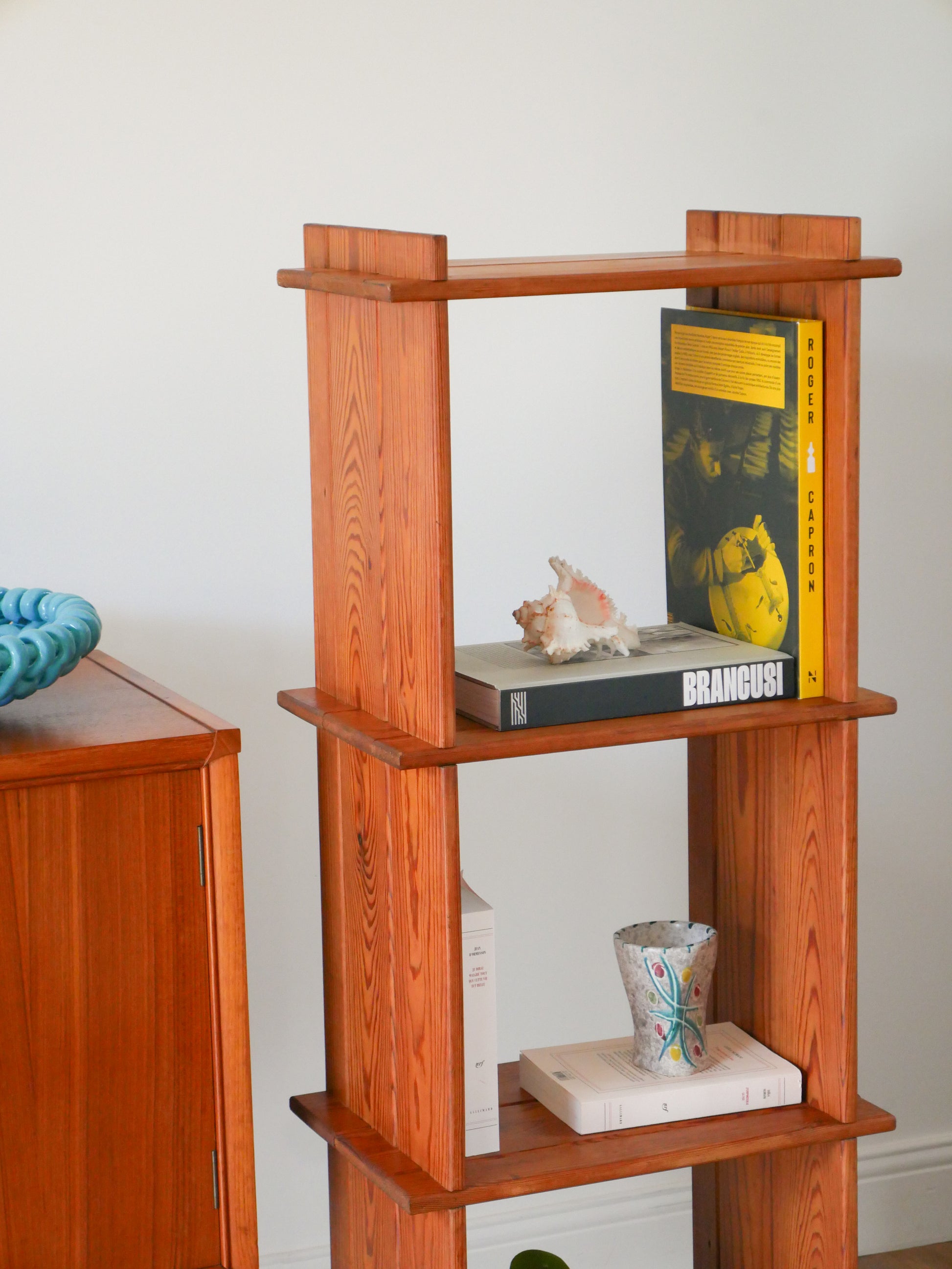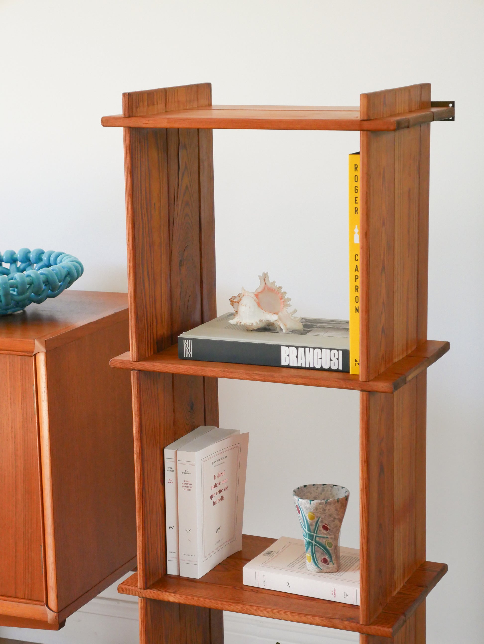 Superbe étagère en pin, sur pieds ou à poser, 1980. En très bon état, de rares traces du temps. Envoi rapide et soigné. Possibilité d'envois groupés - plus économique et plus écologique ! Dimensions : 118 X 45 X 25 cm.