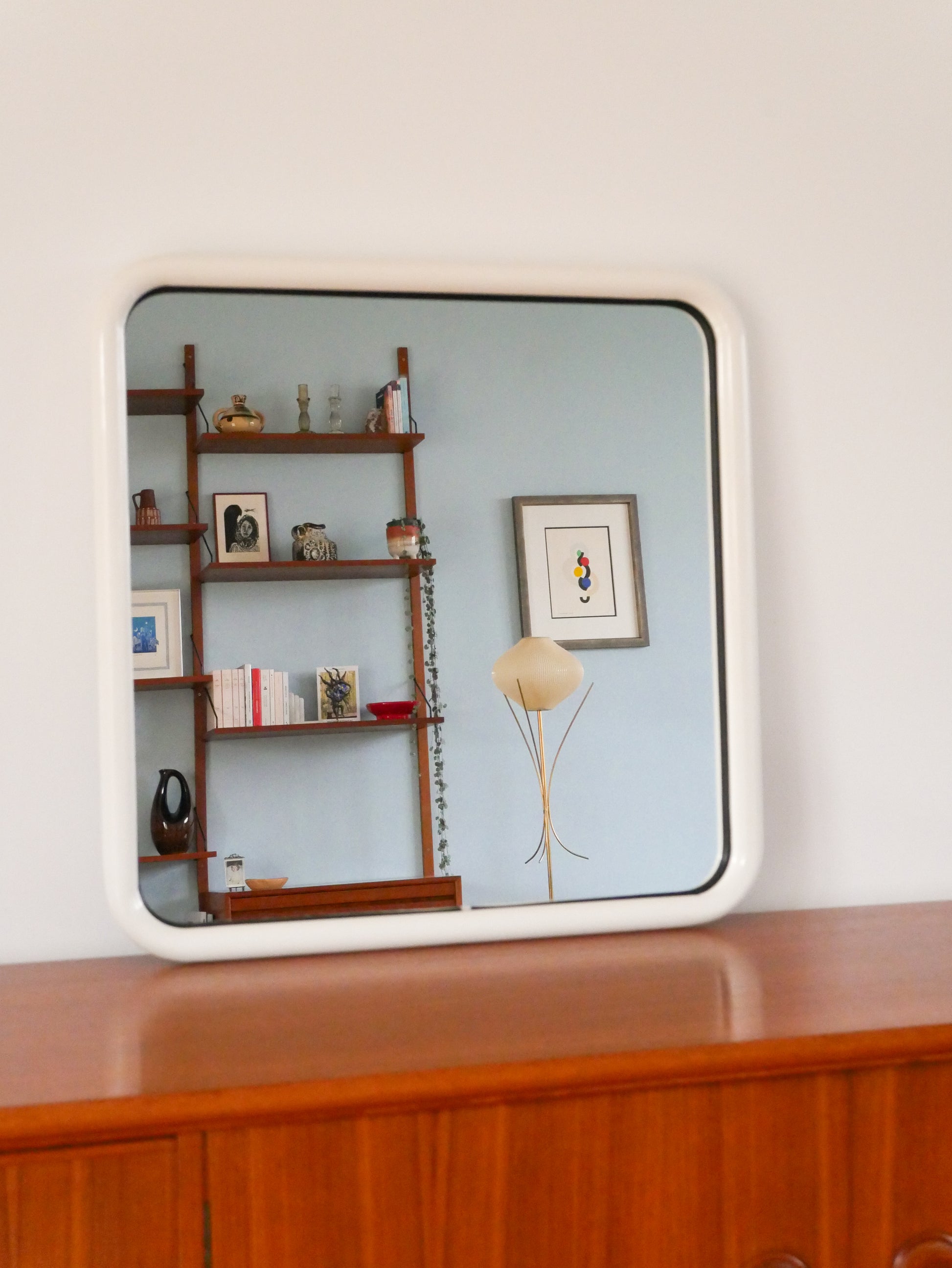 Superbe grand miroir en métal tubulaire, forme Carrée, Blanc, Made in Italy, Design, 1970. En très bon état, à noter un ou des petits défauts. Envoi rapide et soigné. Possibilité d'envois groupés - plus économique et plus écologique ! Dimensions : 60 cm.