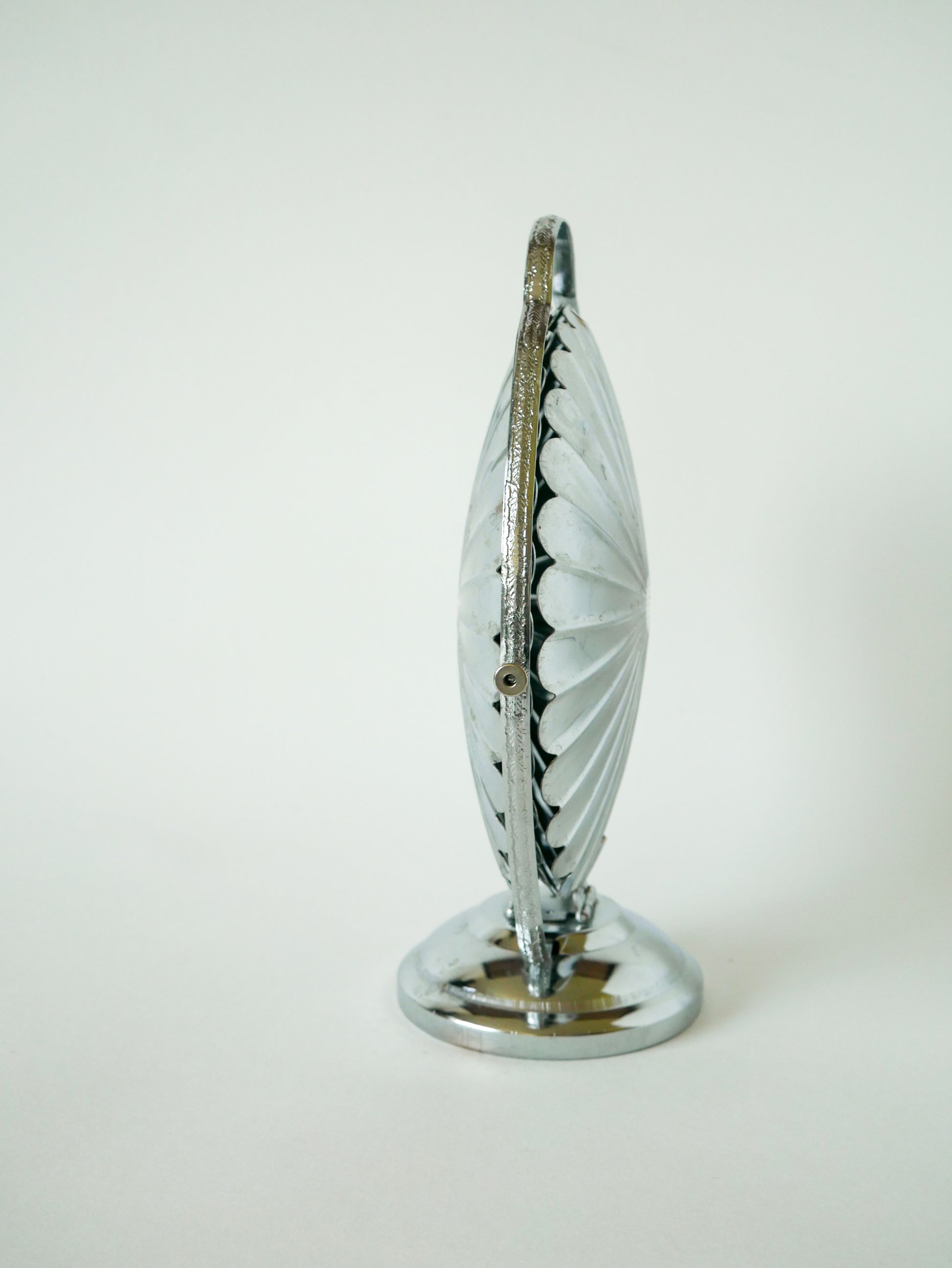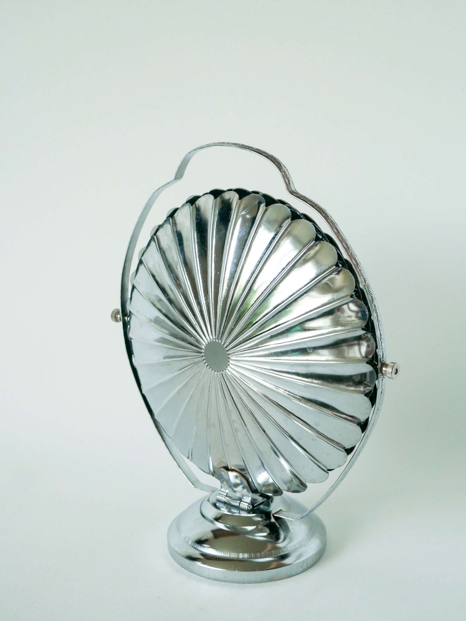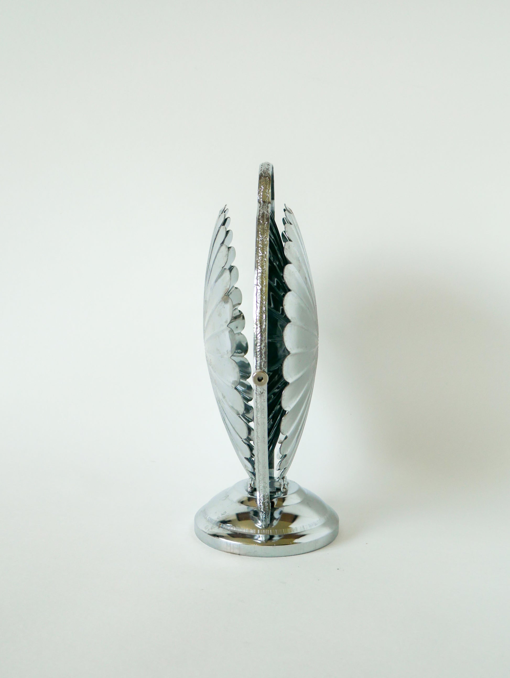 Superbe grand plat / présentoir pliant en inox avec trois plateaux en forme de fleurs, 1970. En très bon état, de rares traces du temps. Envoi rapide et soigné. Possibilité d'envois groupés - plus économique et plus écologique ! Dimensions : 44 X 27 X 23 cm.
