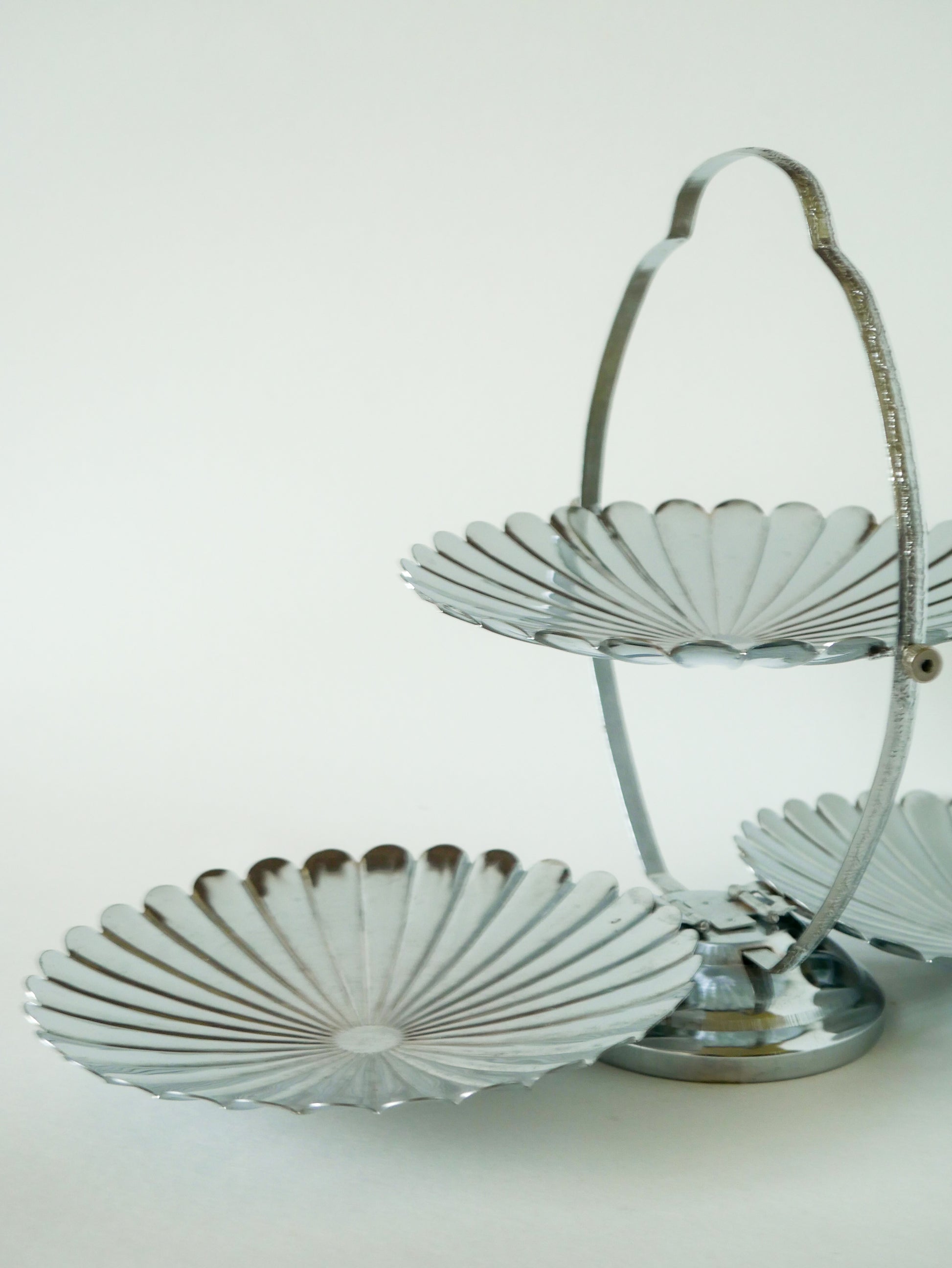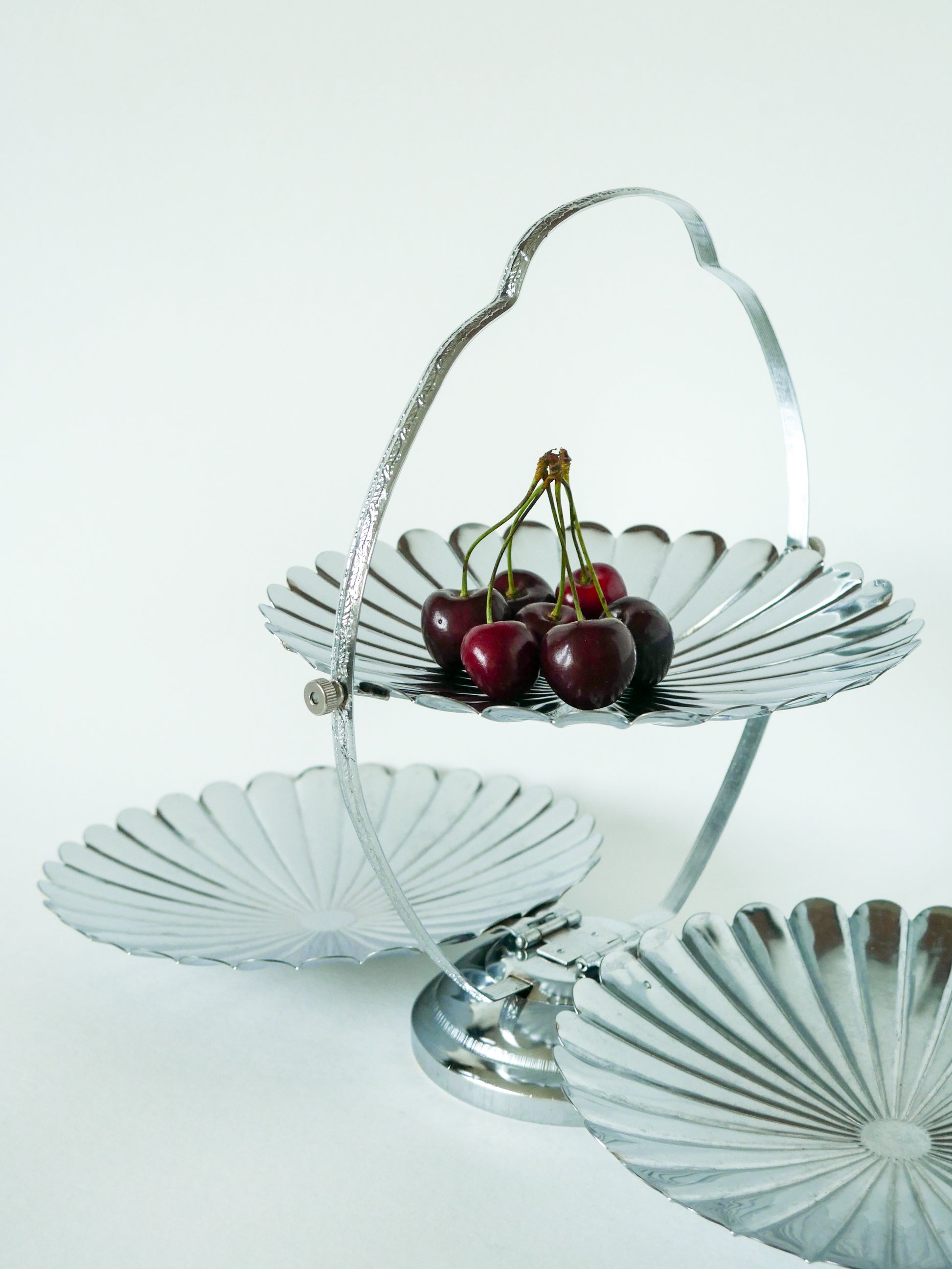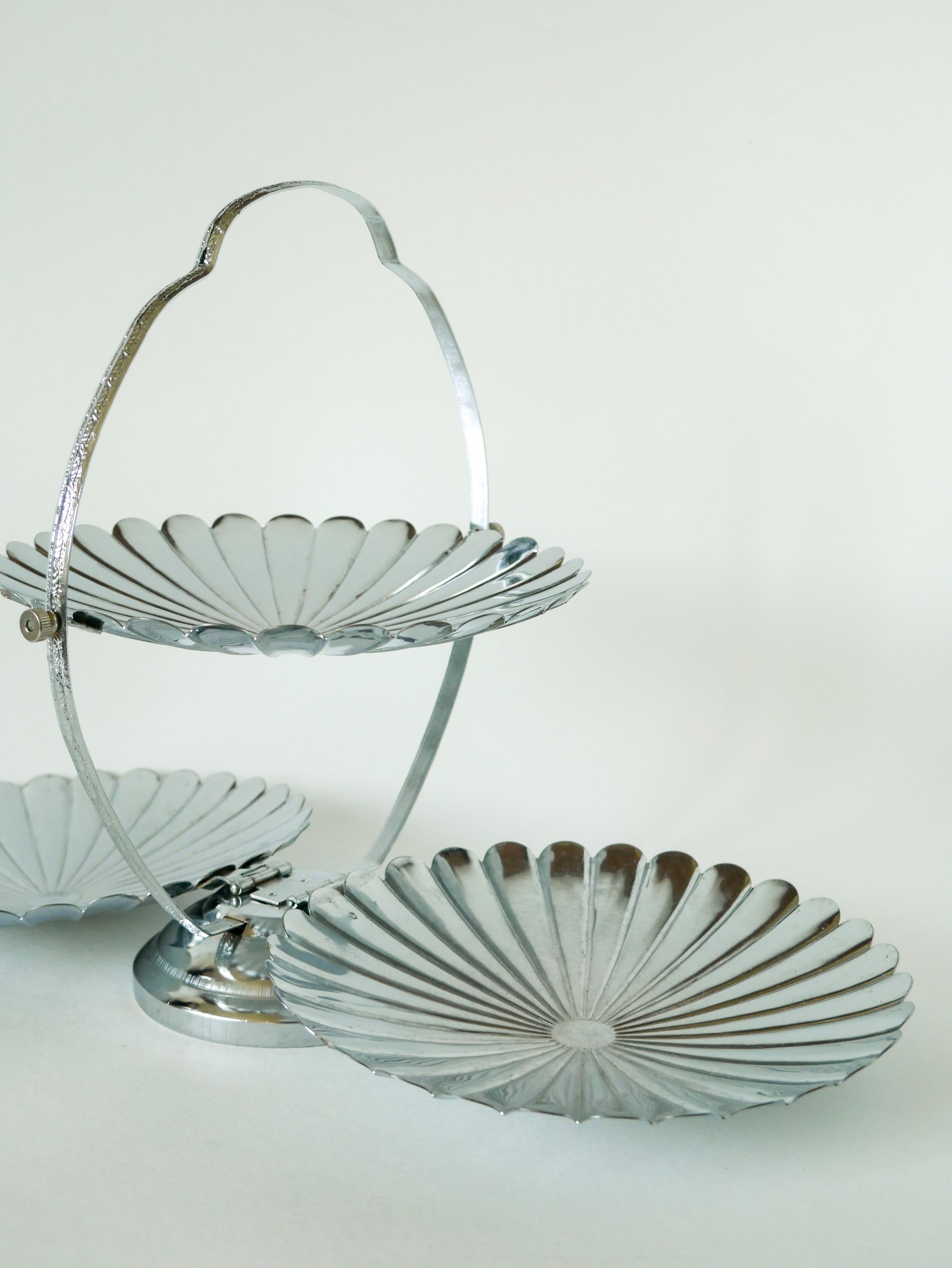 Grand plat / présentoir pliant en inox avec trois plateaux en forme de fleurs, 1970