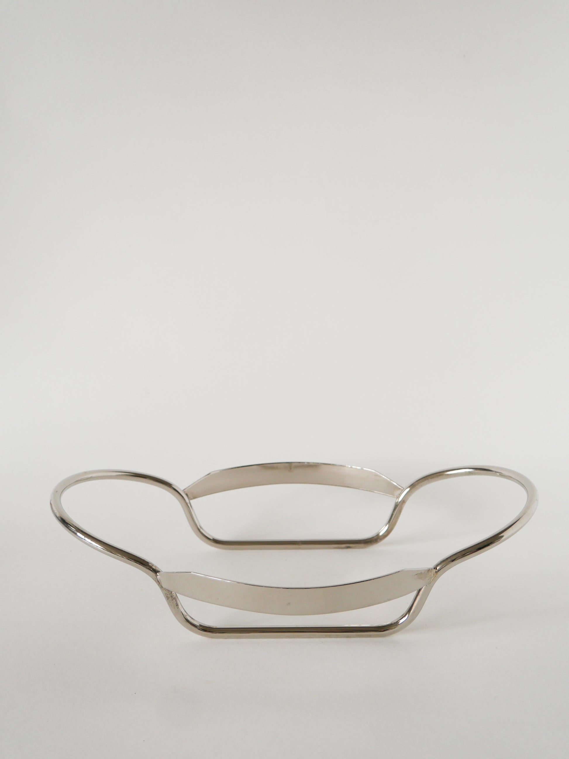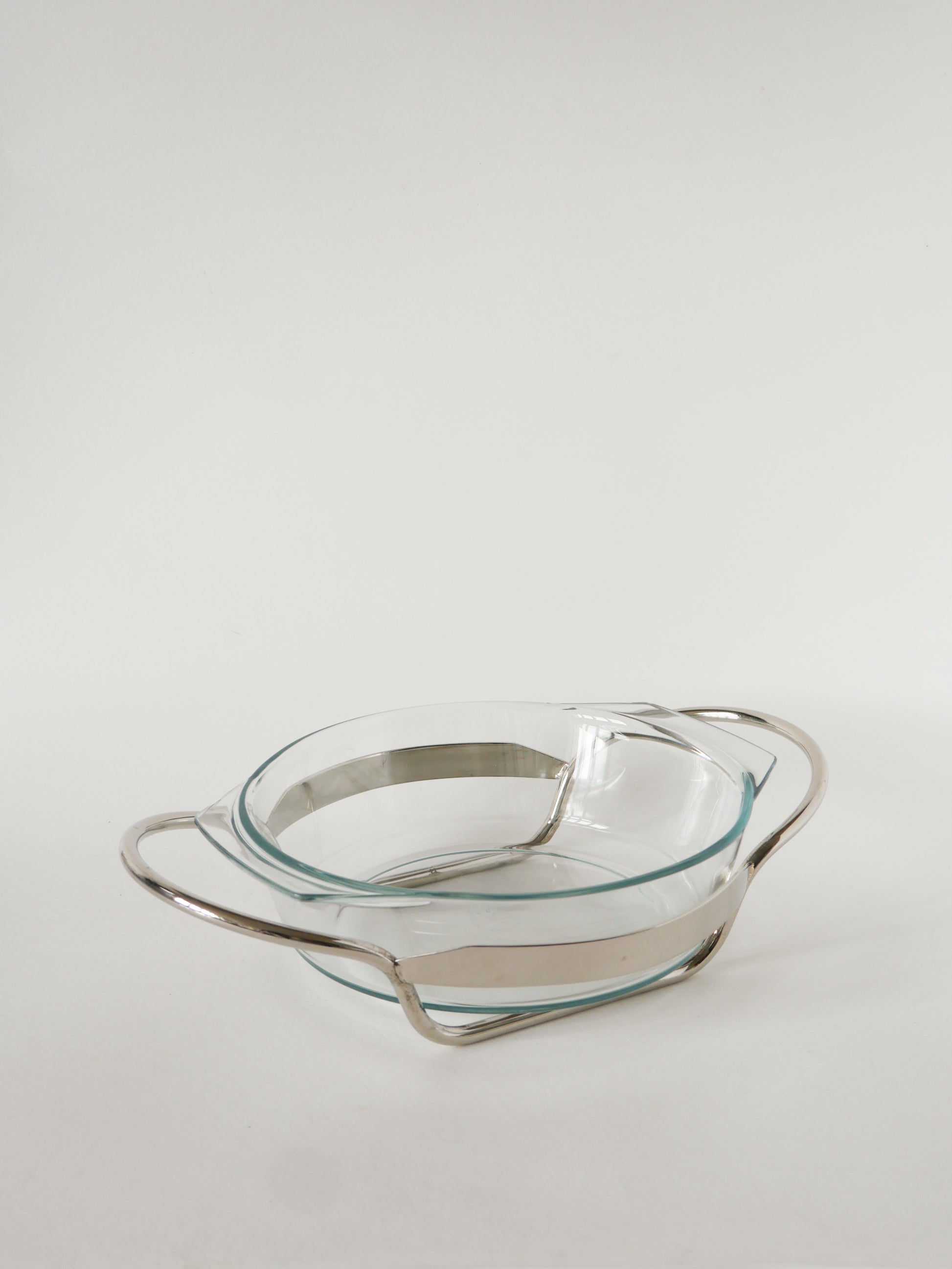 Superbe saladier en verre et métal argenté, 1950. En très bon état, de rares traces du temps. Envoi rapide et soigné. Possibilité d'envois groupés - plus économique et plus écologique. Dimensions : 34 X 23 X 8 cm.