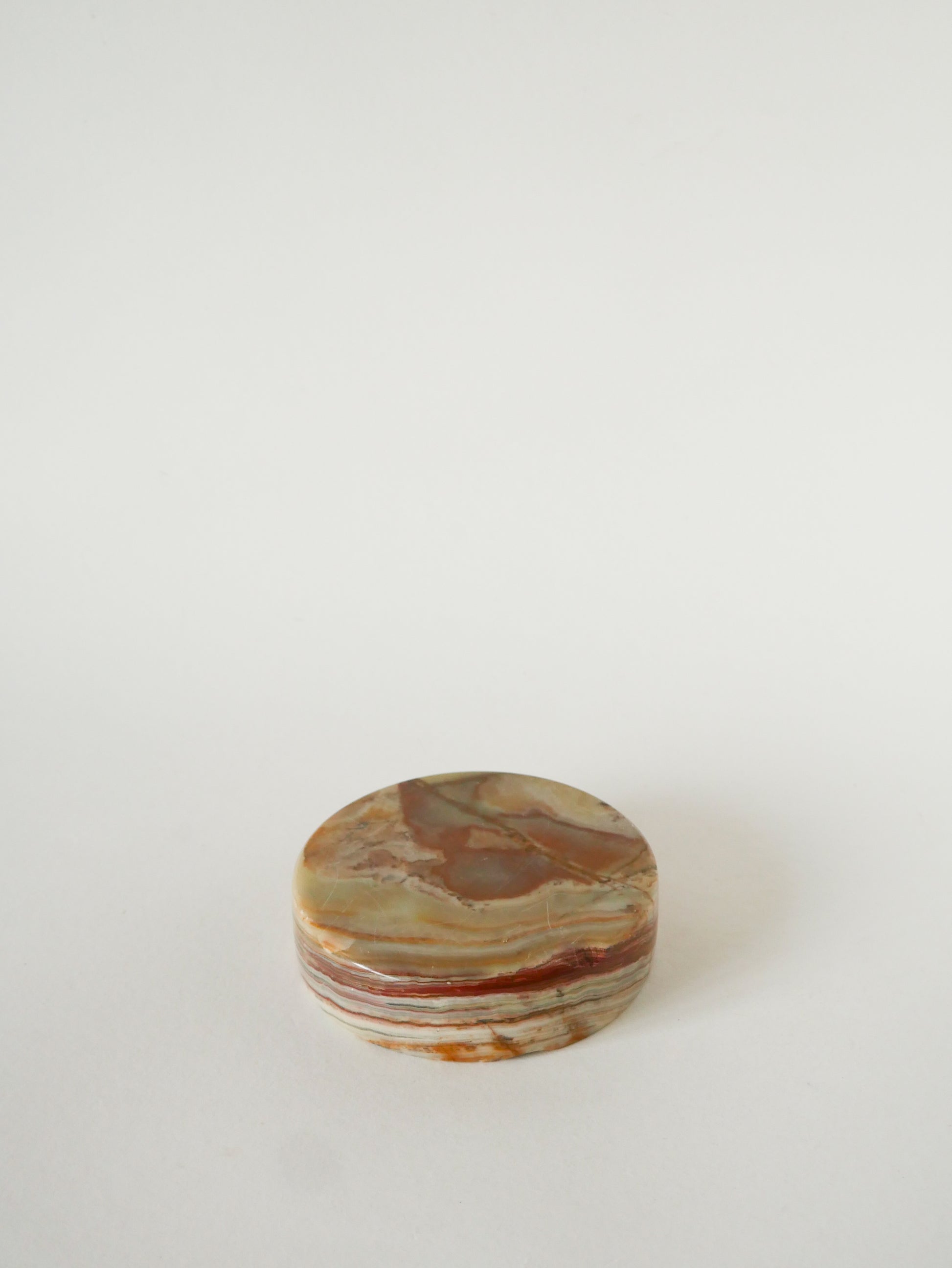 Grand vide-poche en Albâtre, forme Ronde, Beige et Marron, Design, 1970 - 13 X 3.5 cm