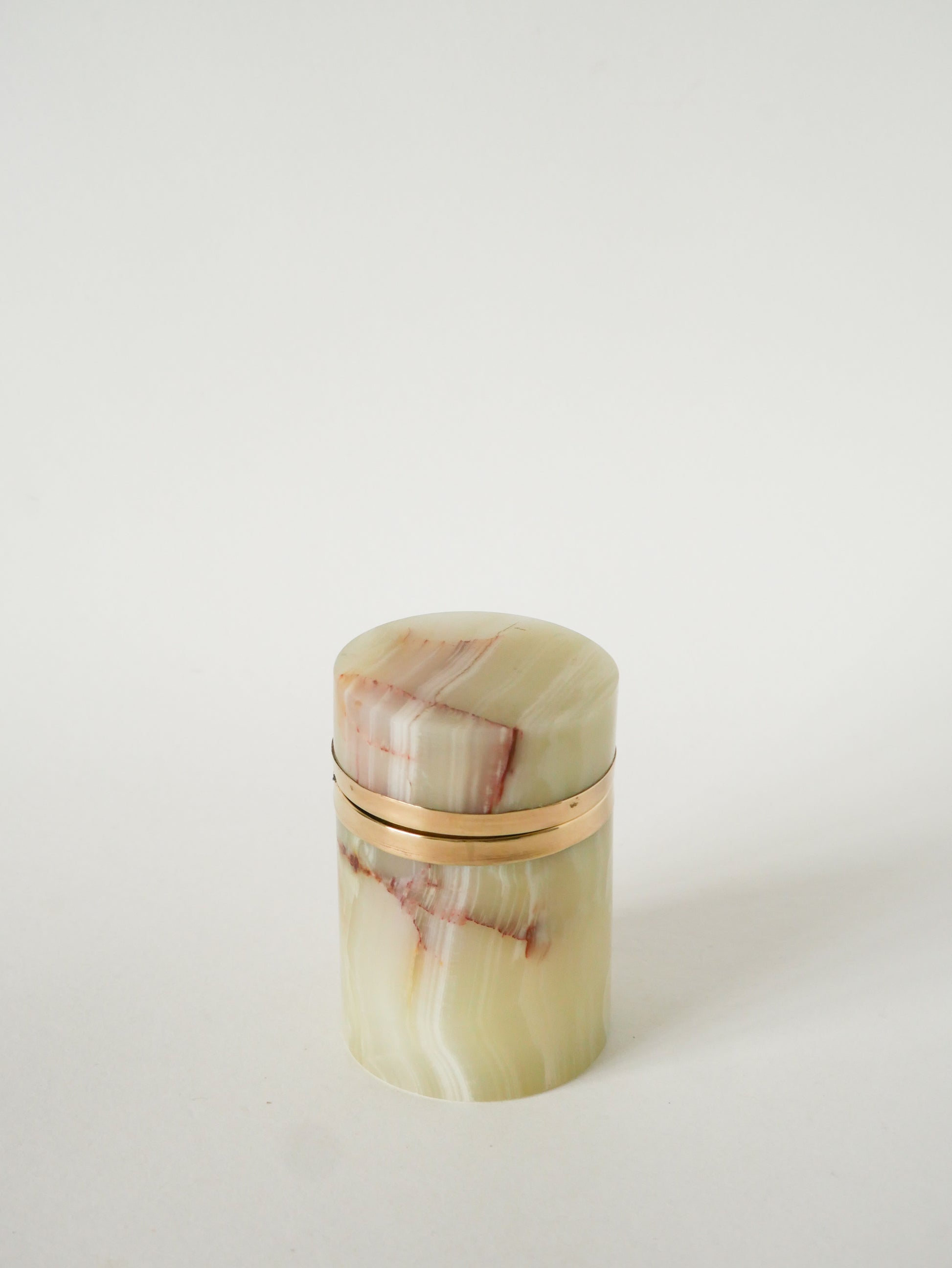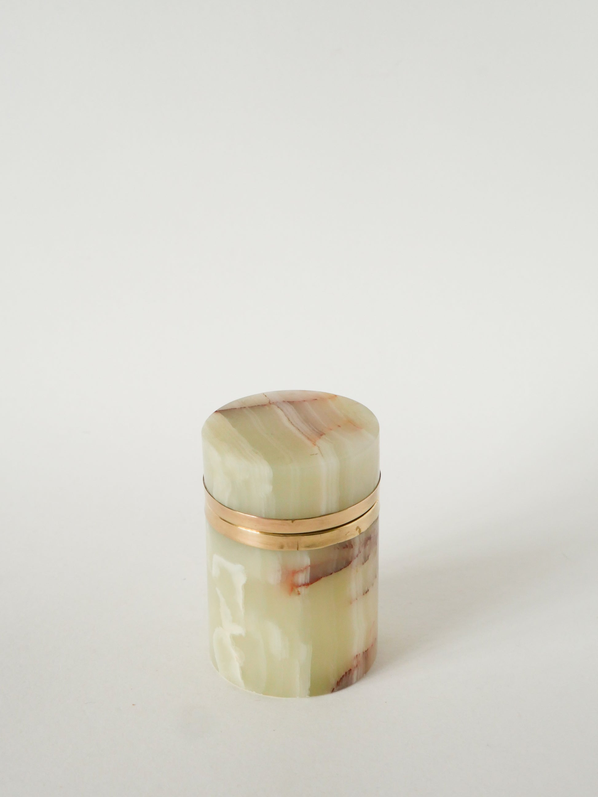 Grande boîte en Albâtre et Laiton, forme Cylindre, Design, 1970