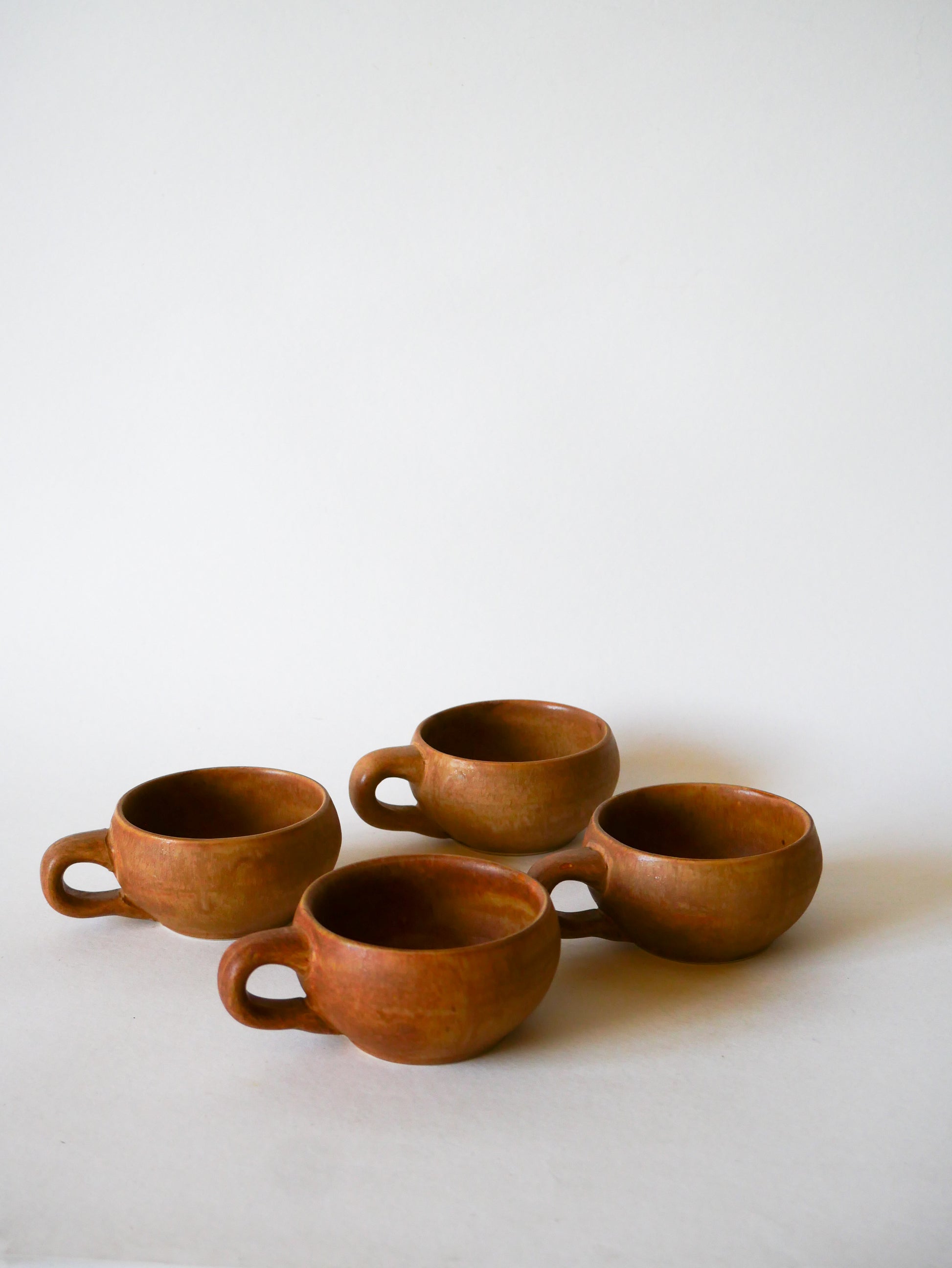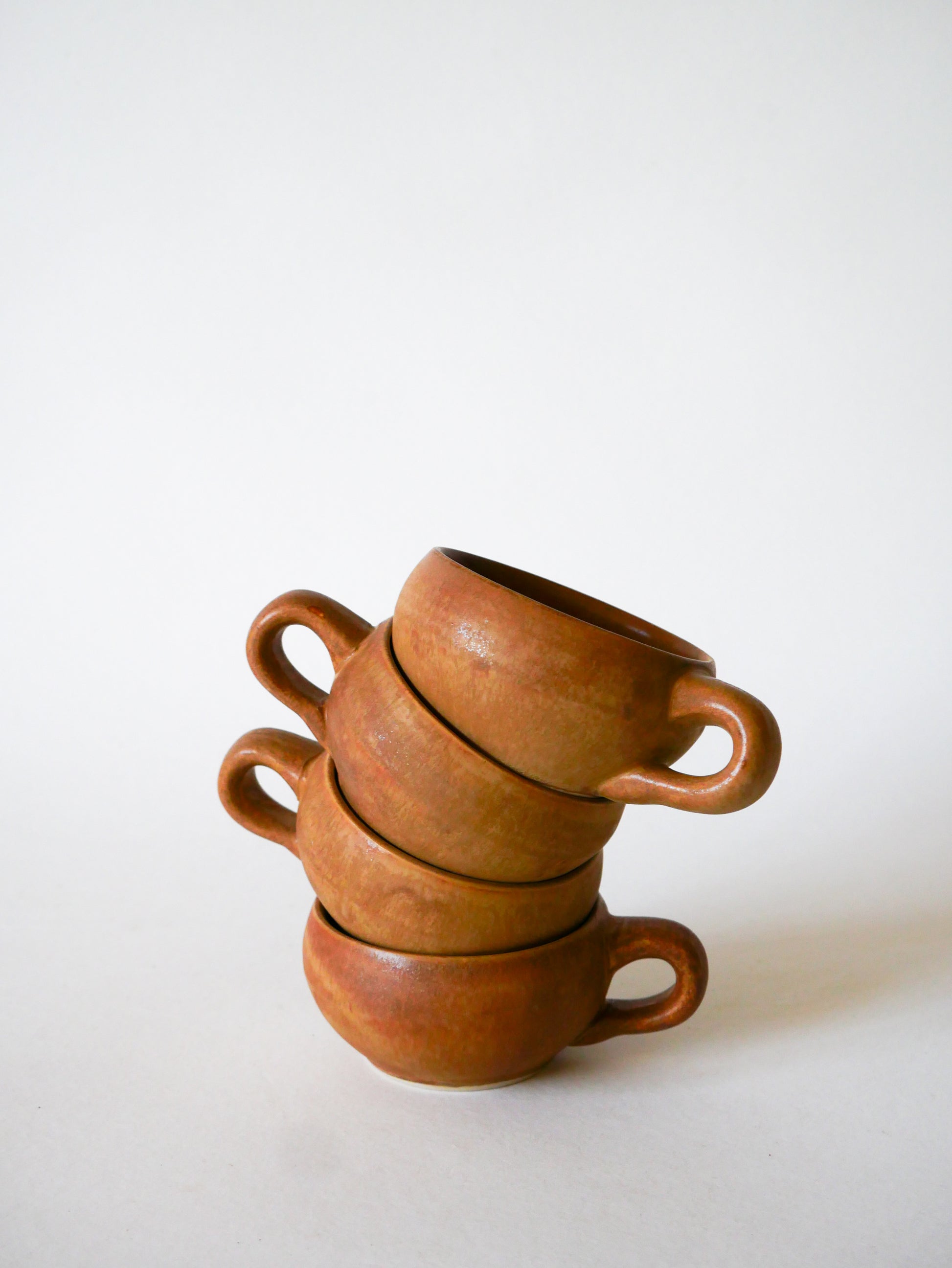 Lot de 4 tasses à café en grès, fabrication artisanale, 1970