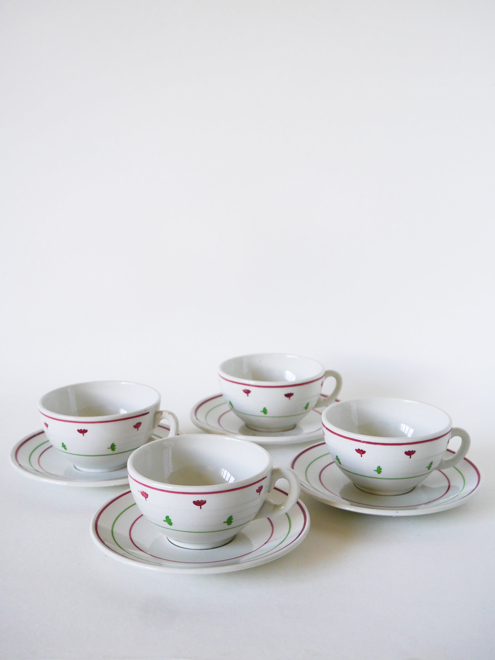 Lot de 4 tasses à café Luneville, Rose & Vert, 1950
