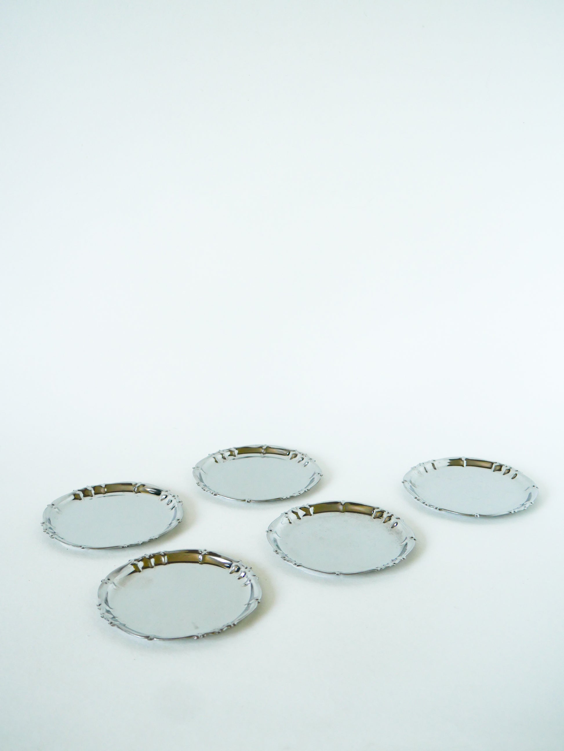 Lot de 5 dessous de verres dentelés en inox, 1970