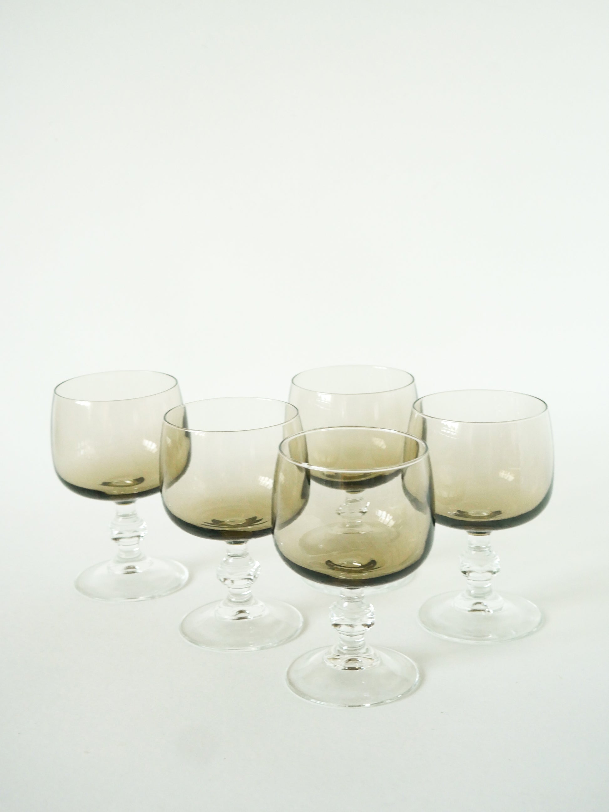 Lot de 5 verres à vin en verre fumé, 1970