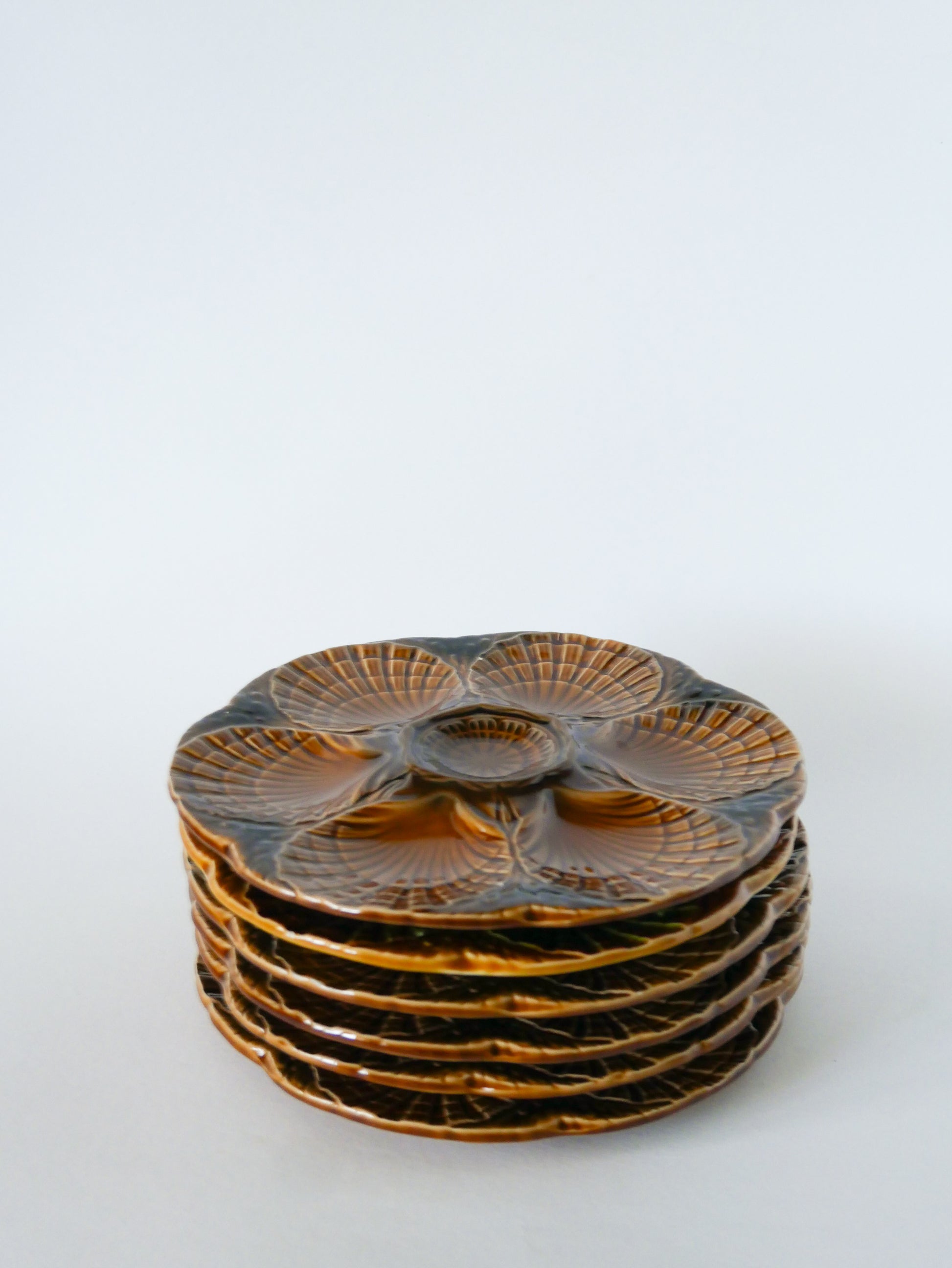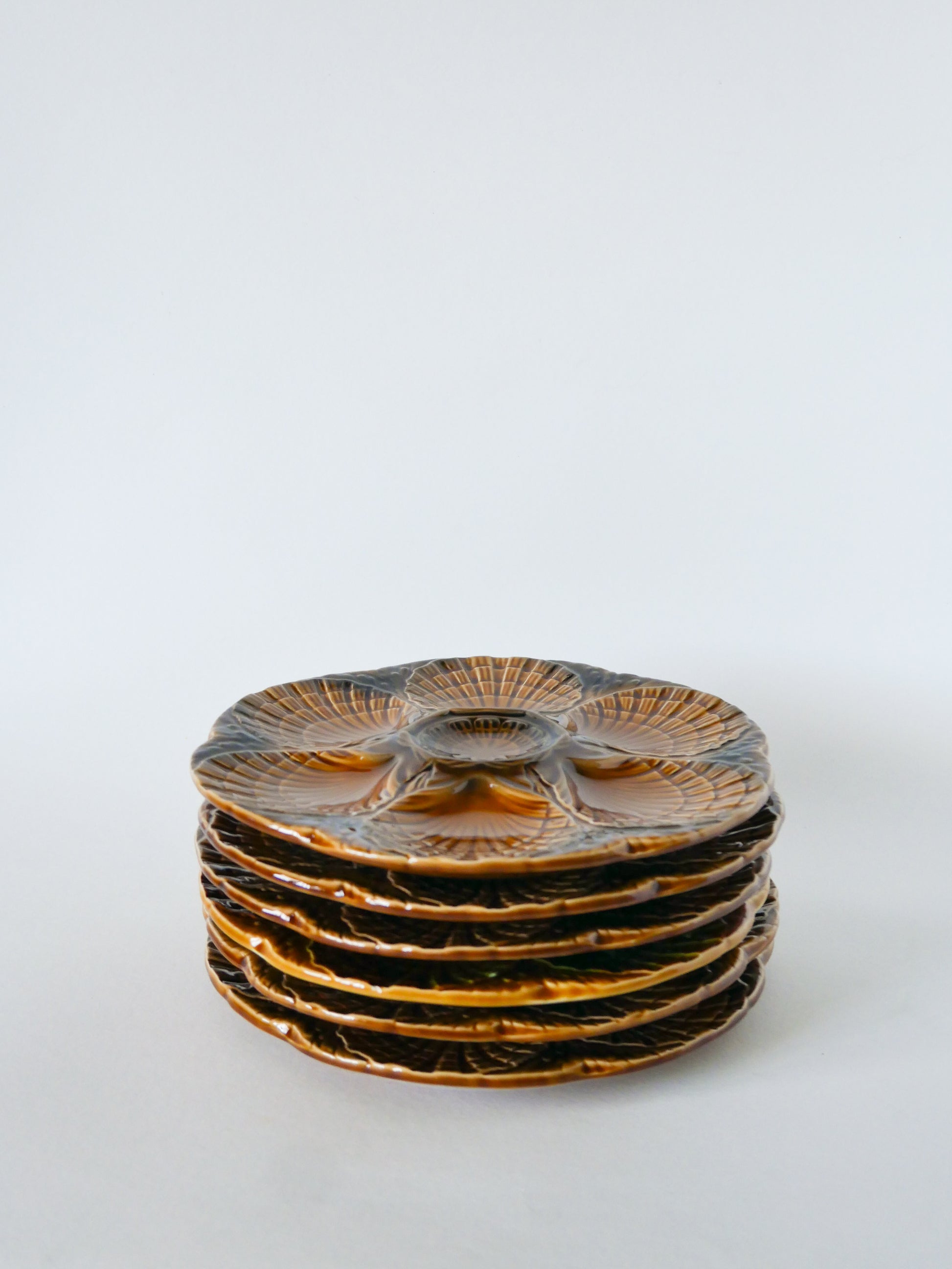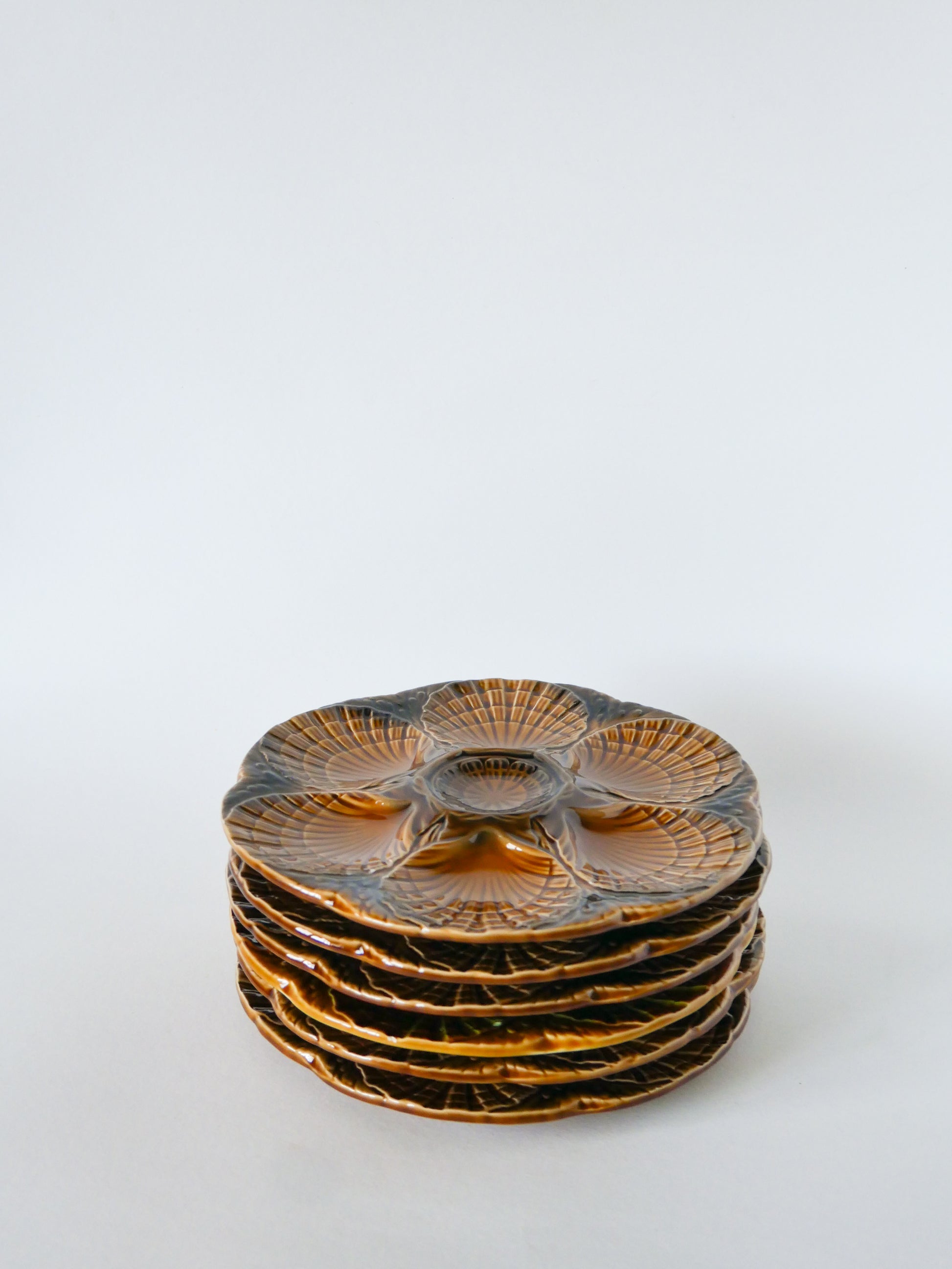 Lot de 6 assiettes à huîtres en barbotine, Marron, Design, 1960