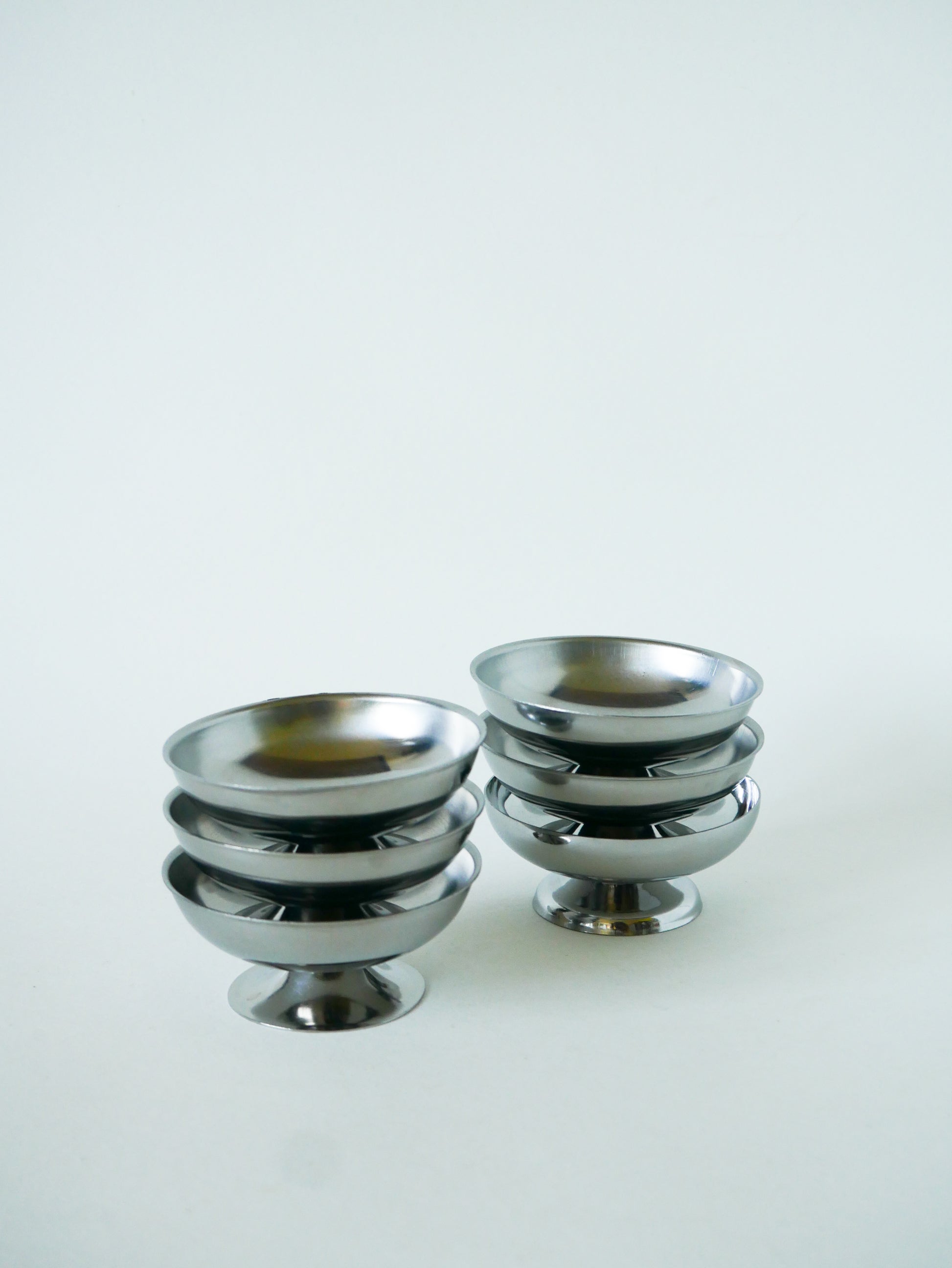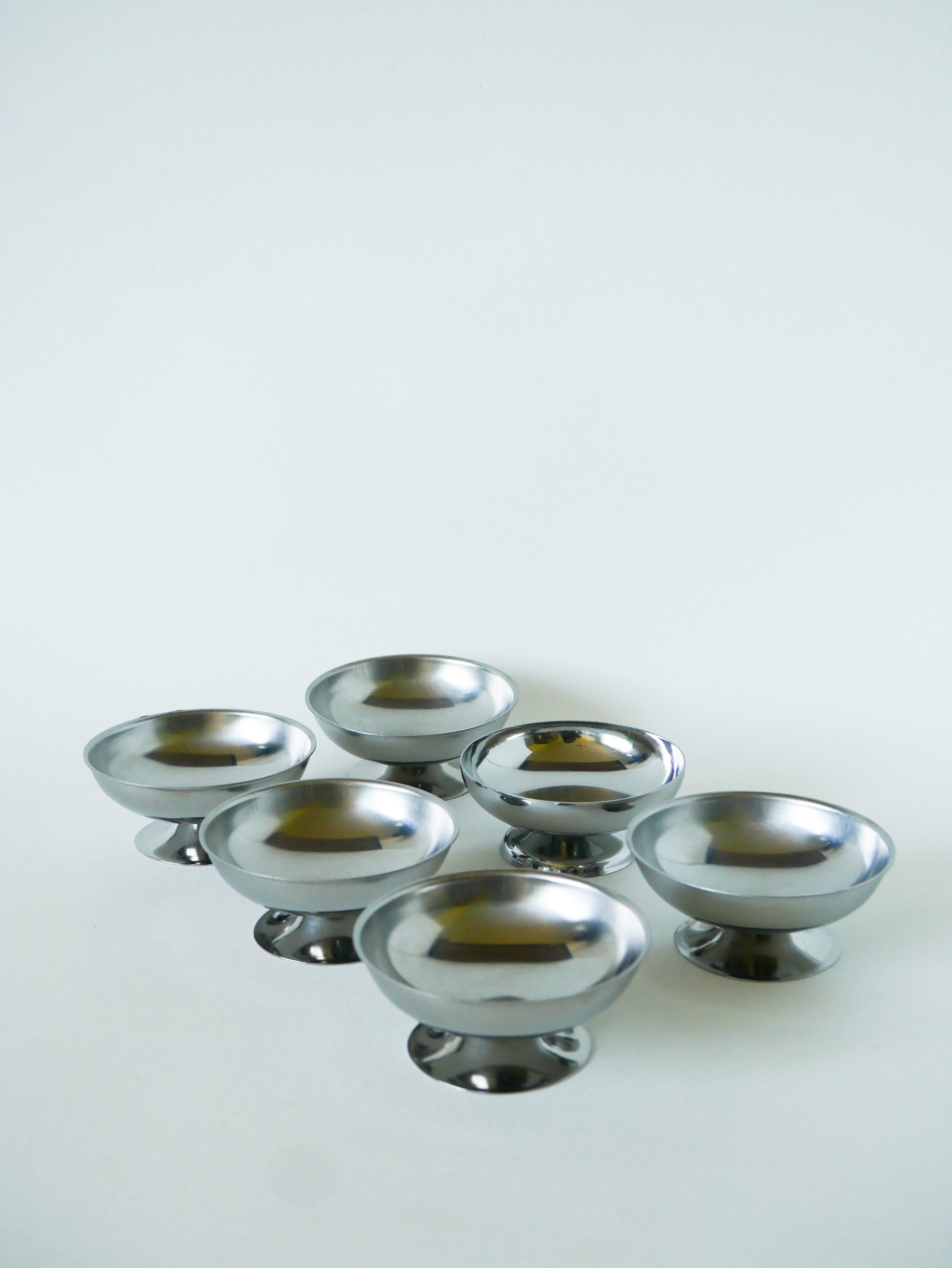 Lot de 6 coupes à glace en inox, pieds large, Design, 1970 - 4 X 9 cm