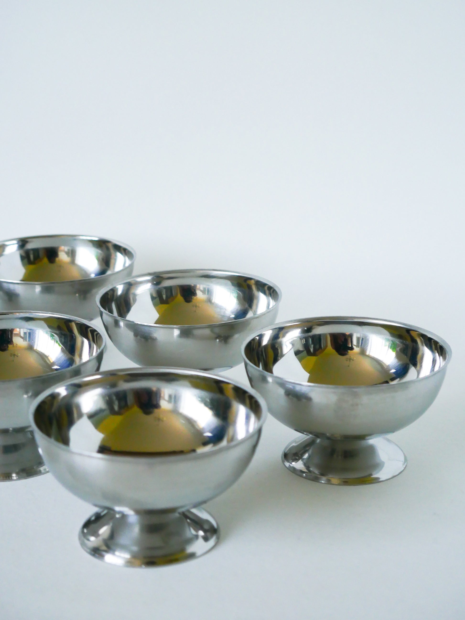 Lot de 6 coupes à glace en inox, pieds large, Design, 1970 - 5 X 9 cm