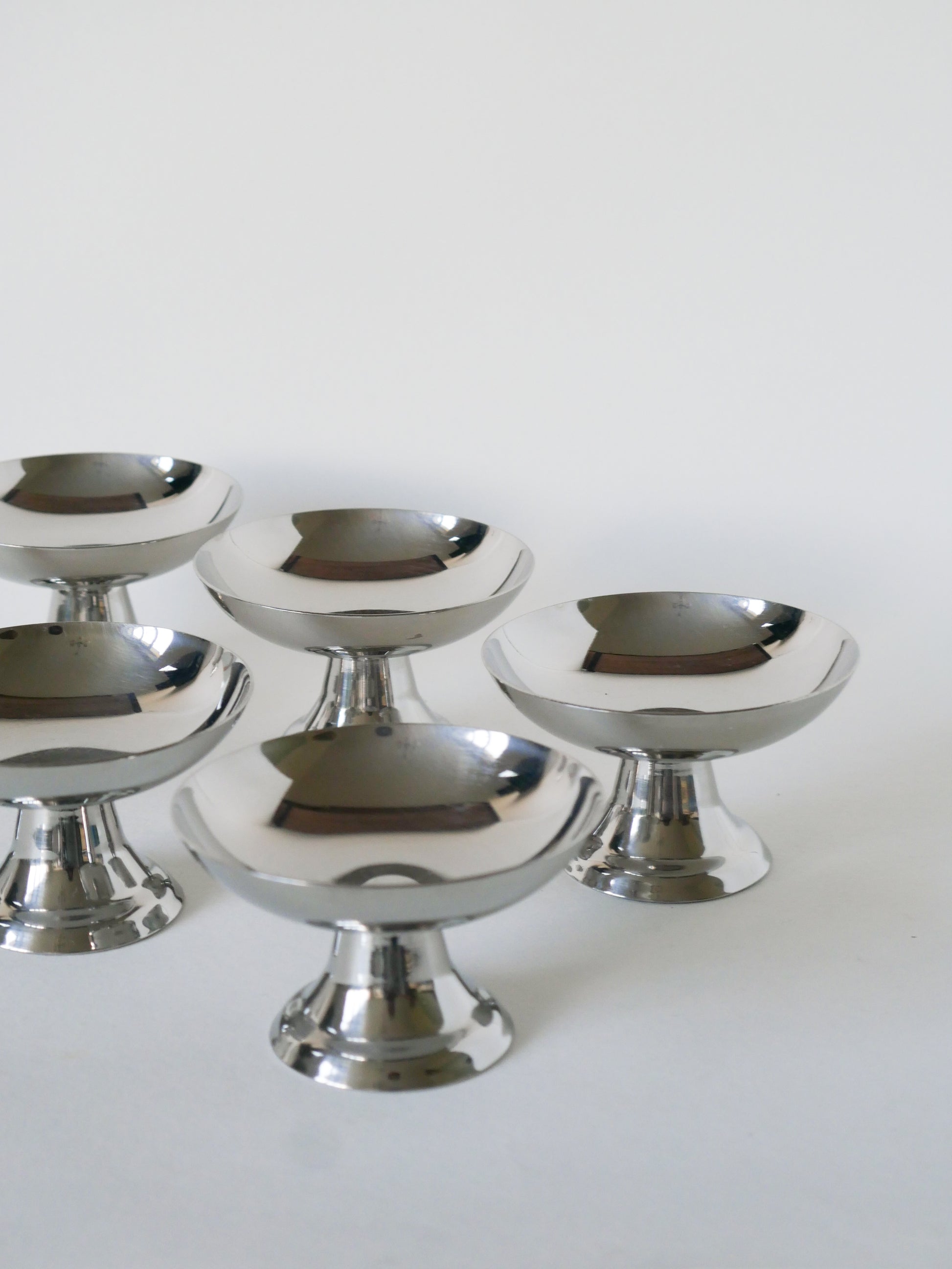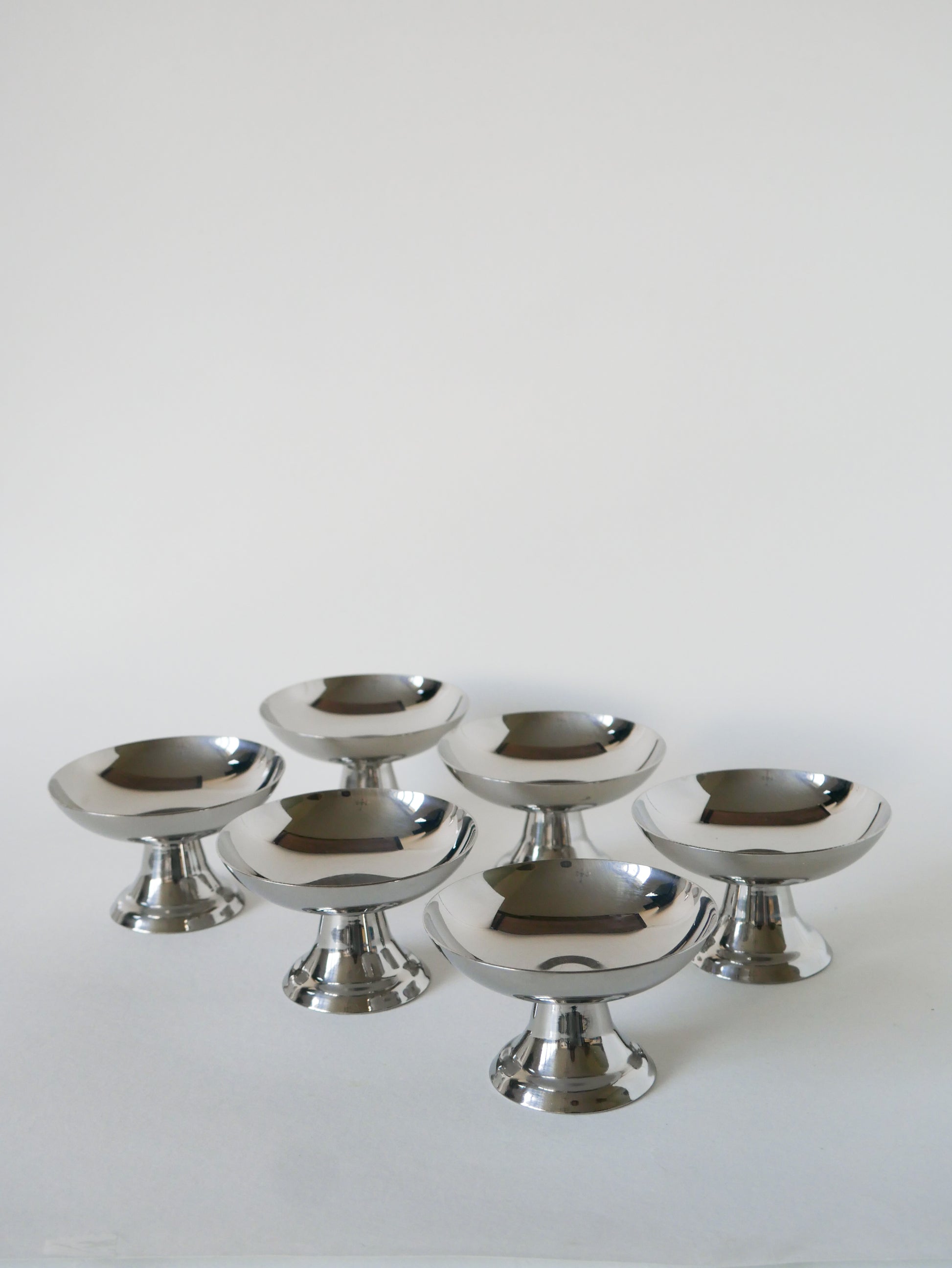 Lot de 6 coupes en inox hautes, pieds large, Design,1970 - 6 X 9 cm