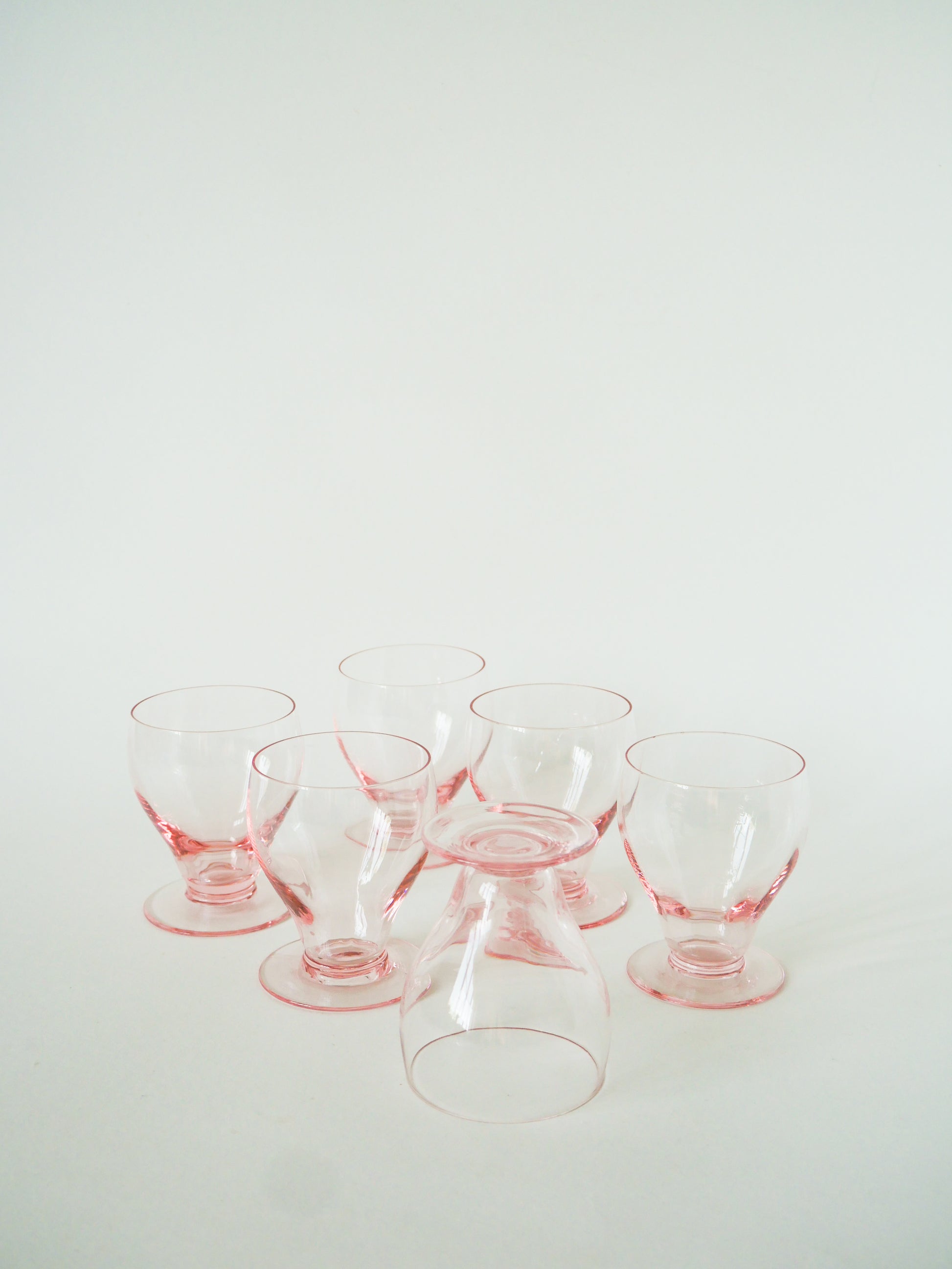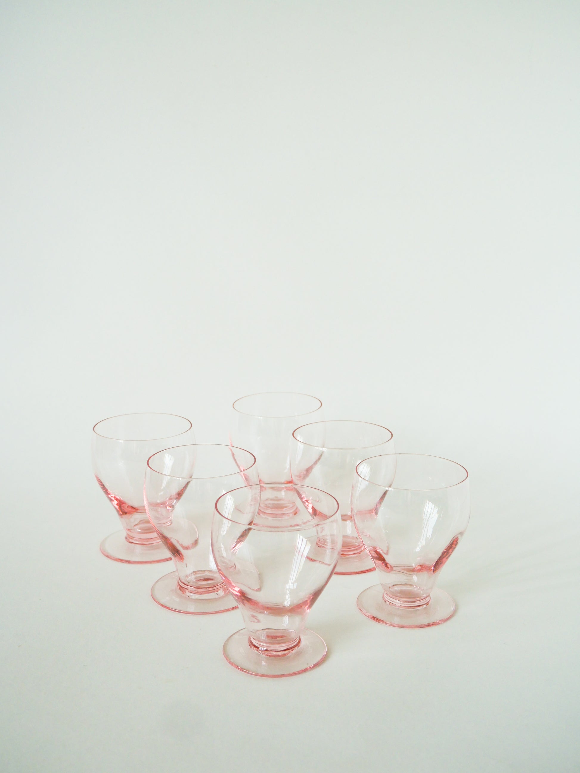 Lot de 6 petits verres à vin, Rose, Art Déco, 1930