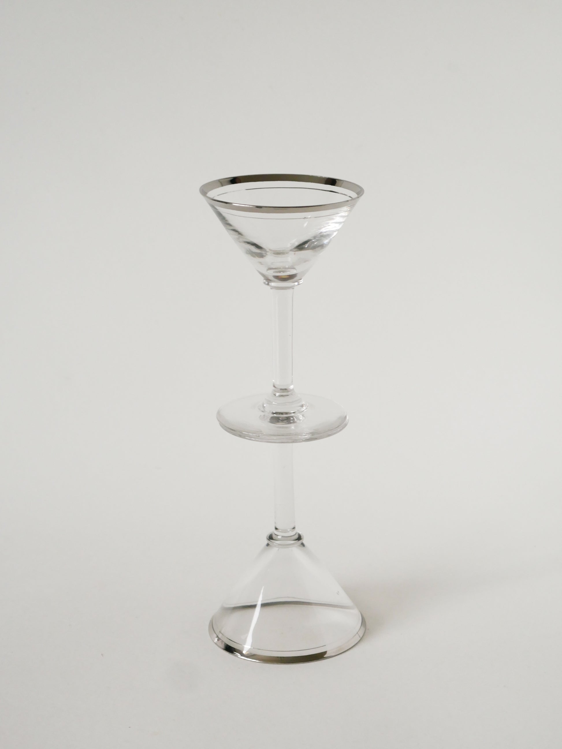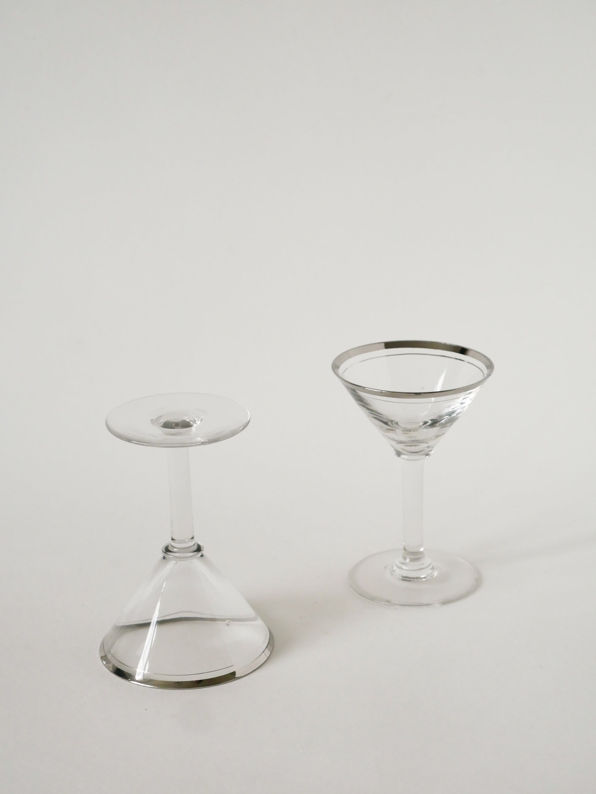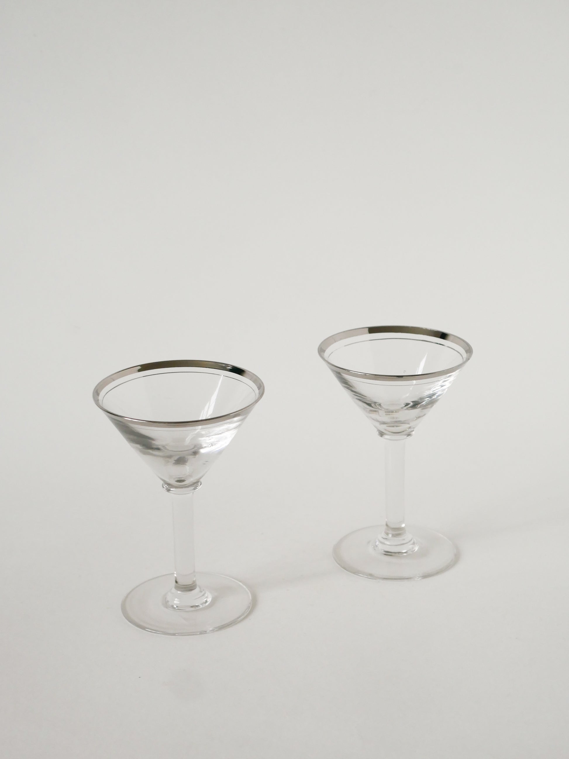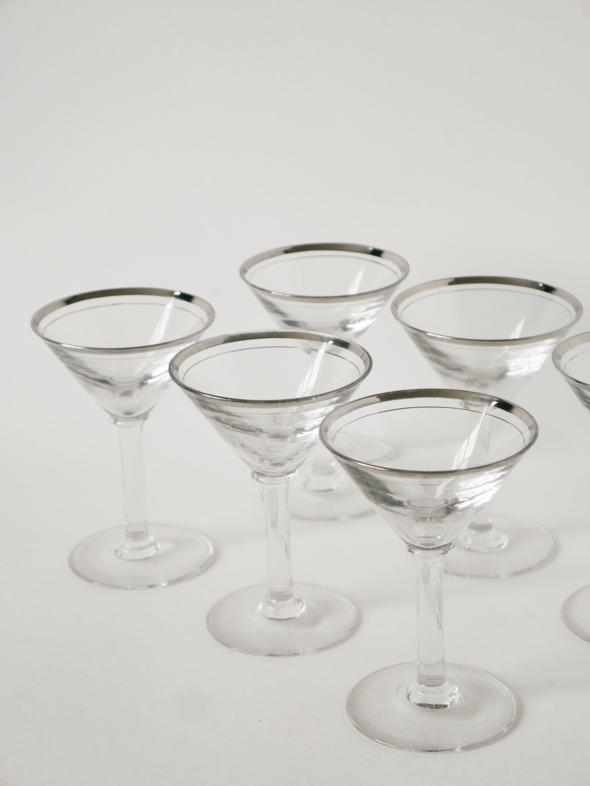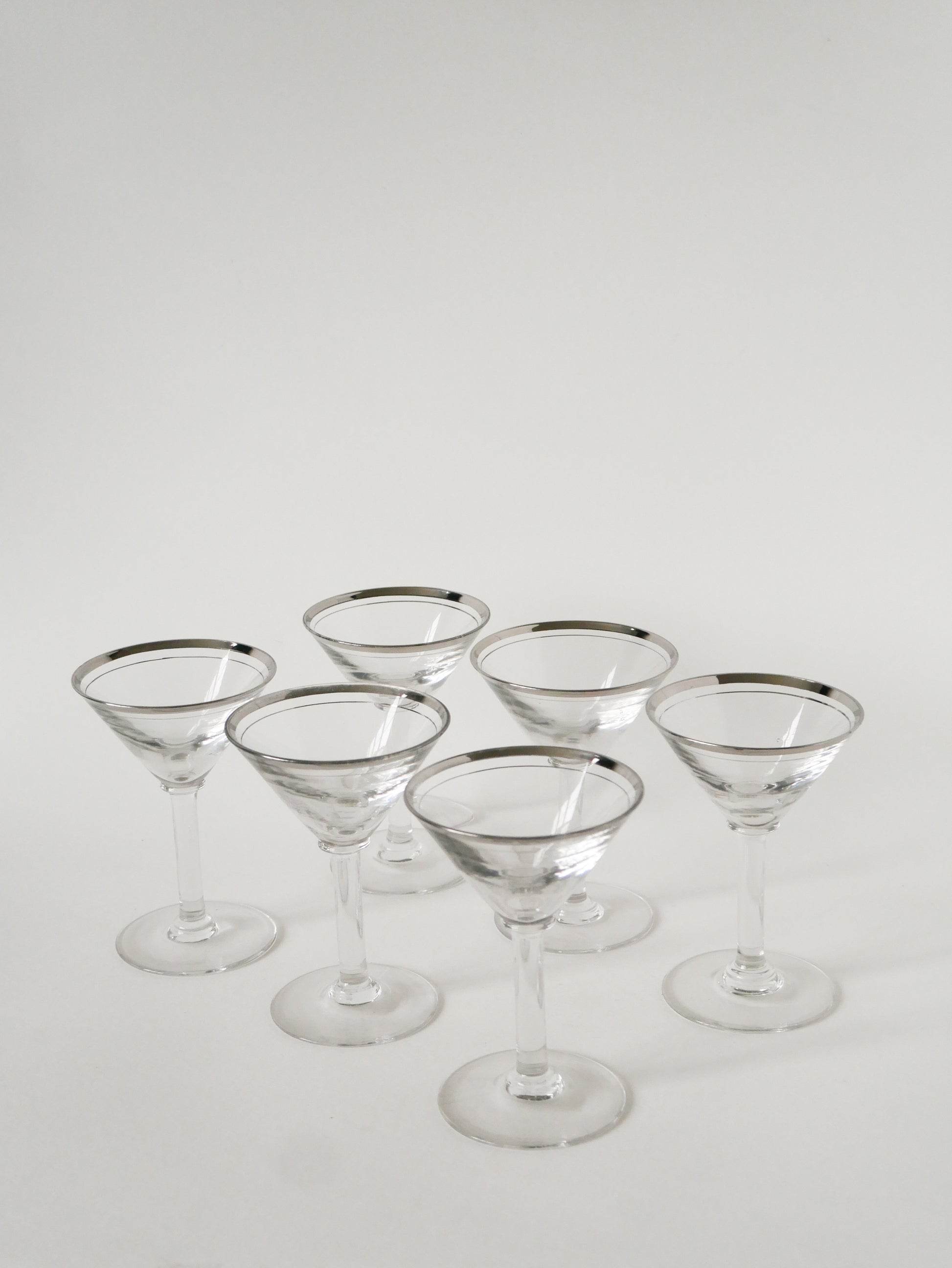 Lot de 6 verres à cocktail / Martini, liseré chromé, Art Déco, 1930