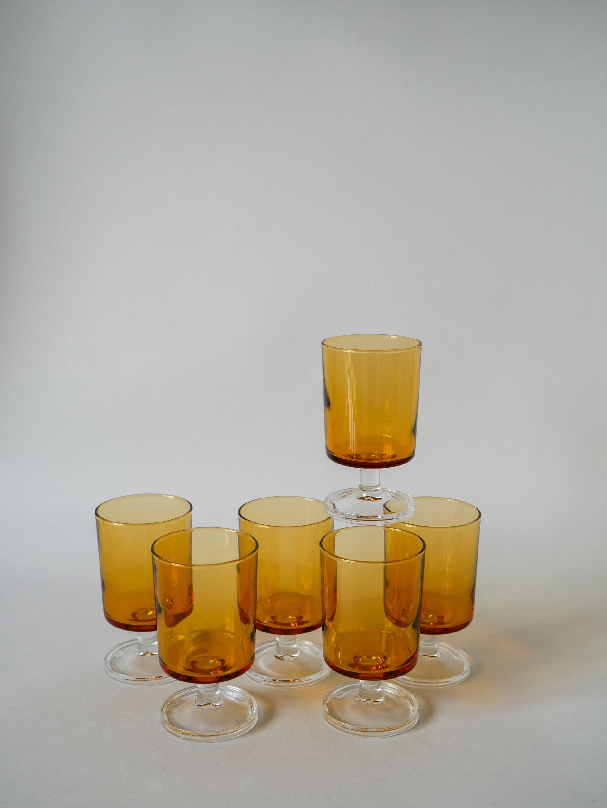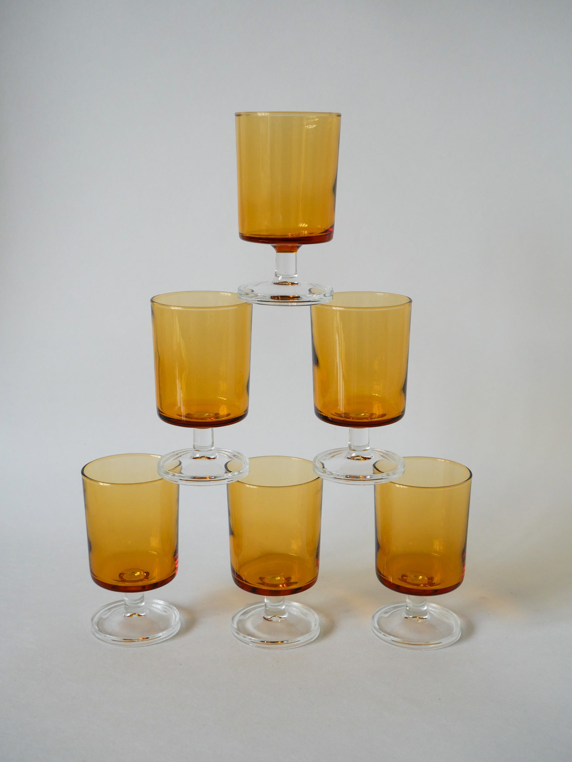 Lot de 6 verres à vin ambrés Luminarc vintage 1970