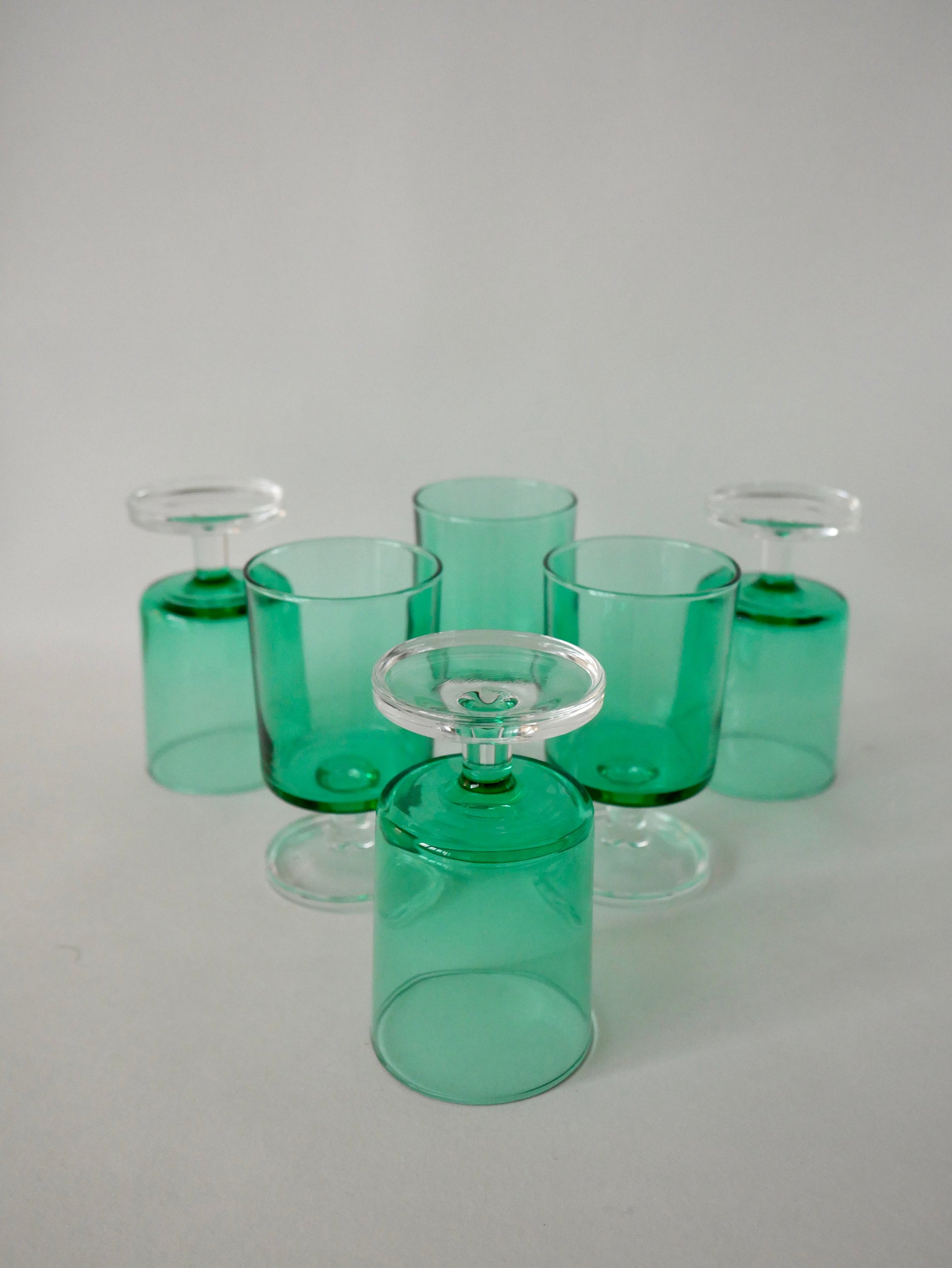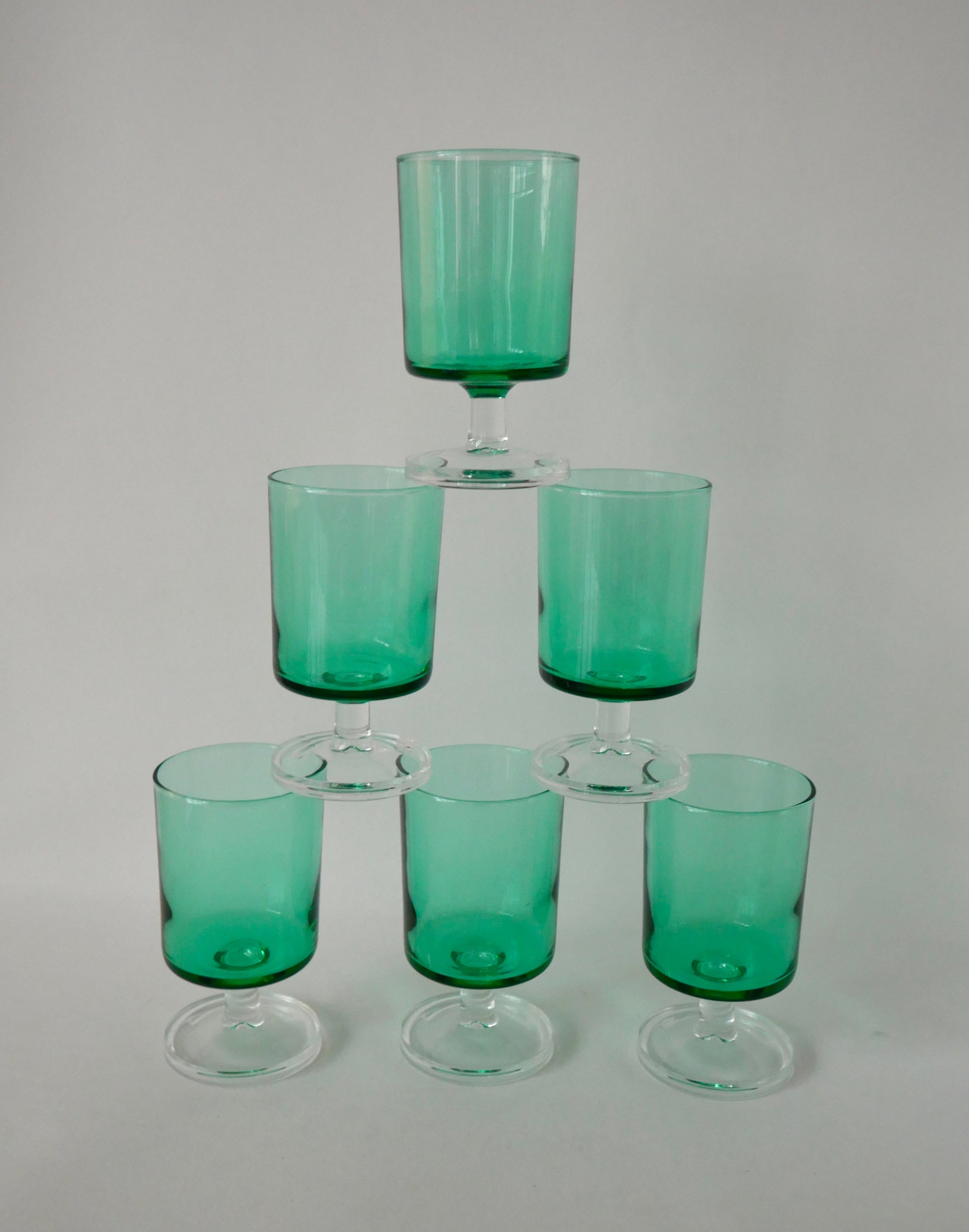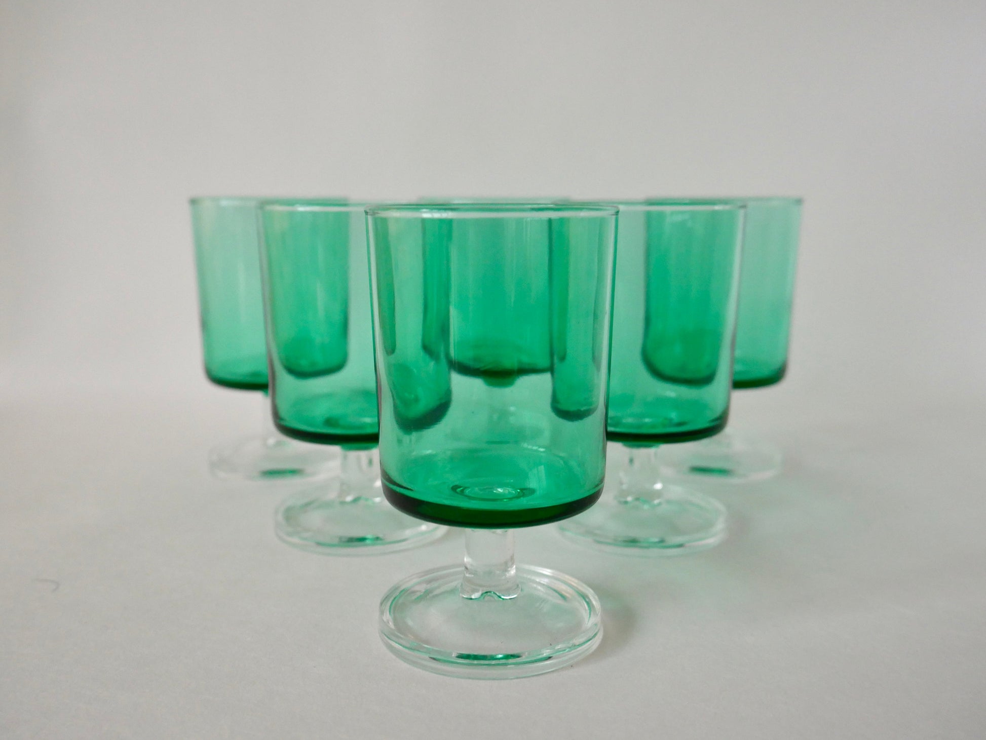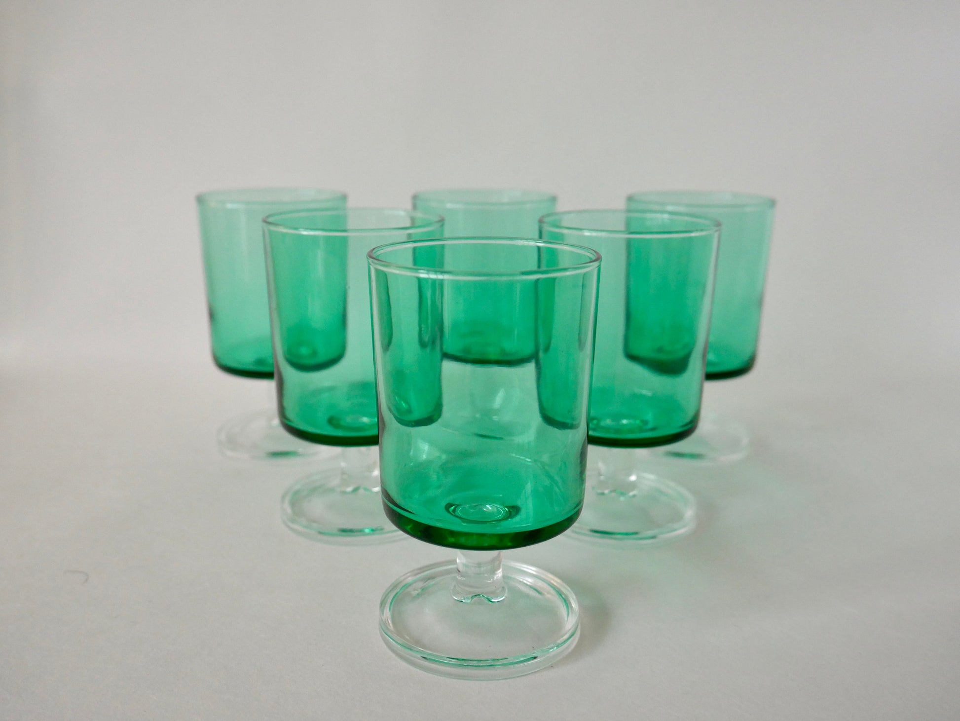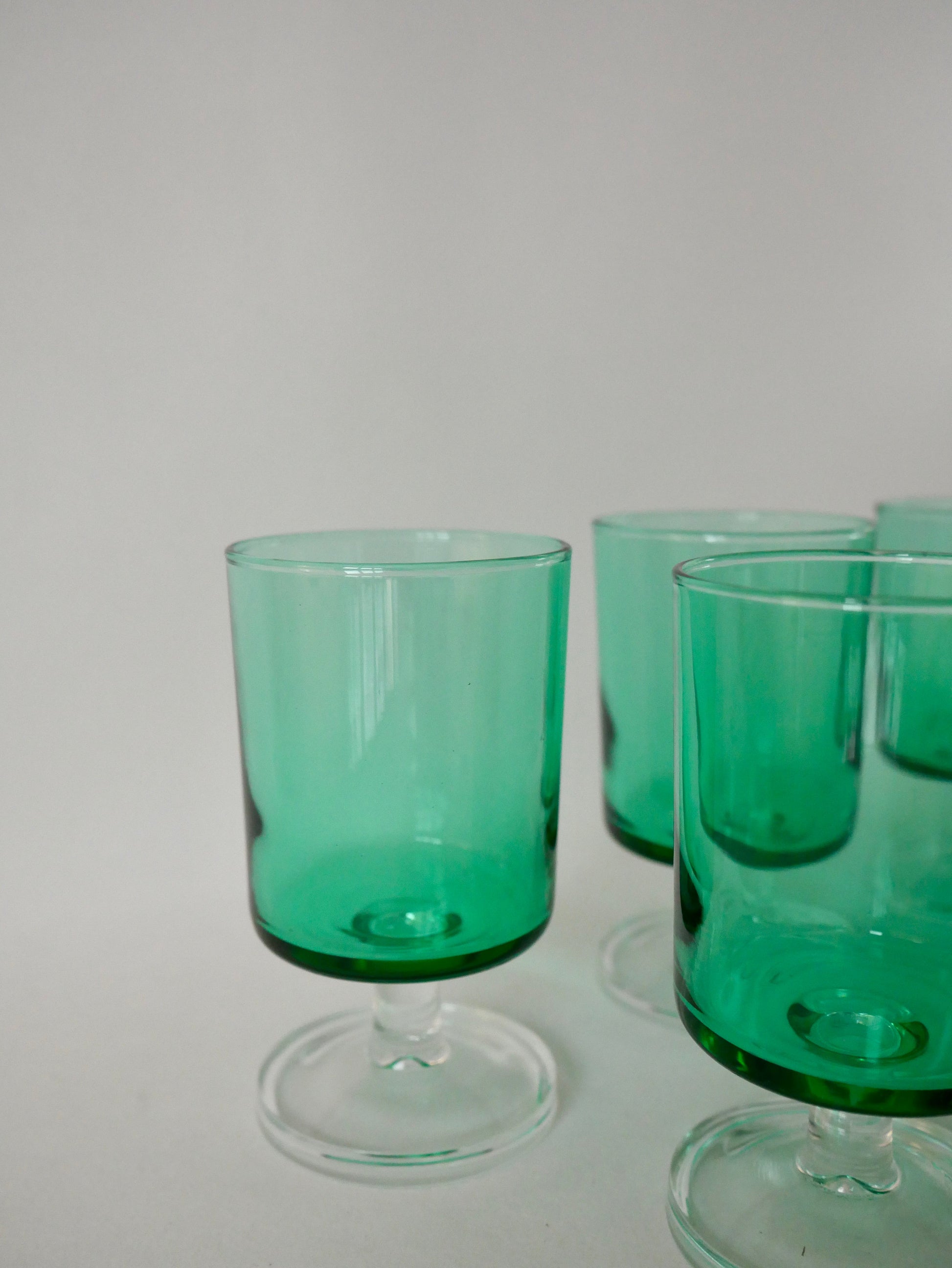 Lot de 6 verres à vin en verre vert Luminarc années 70