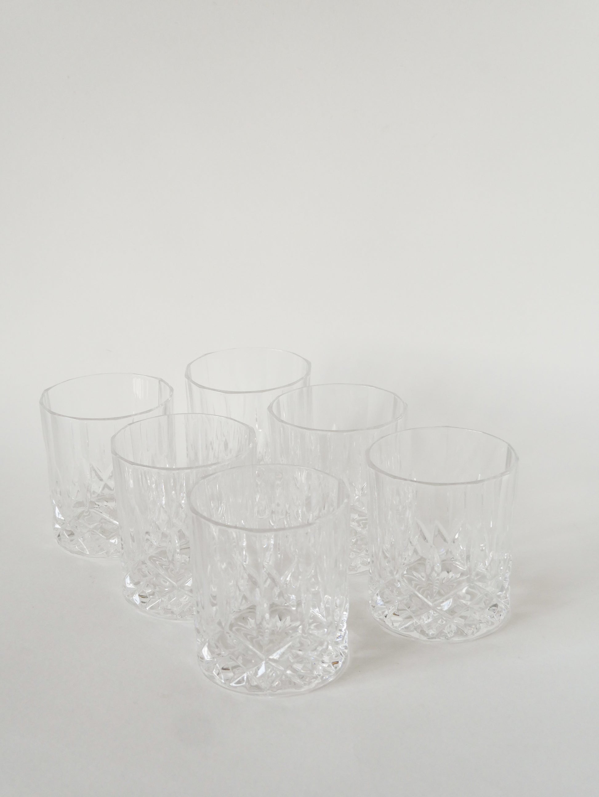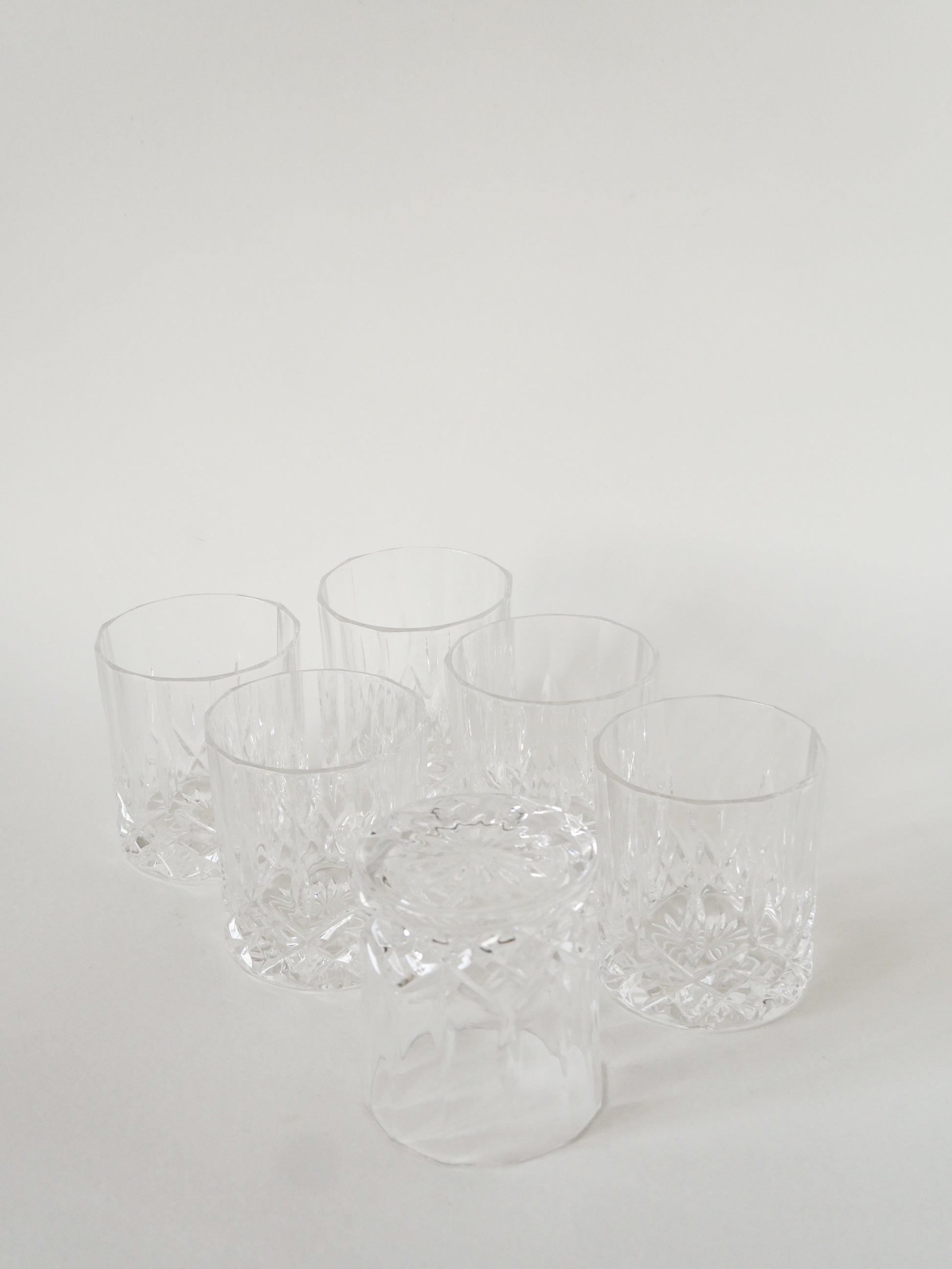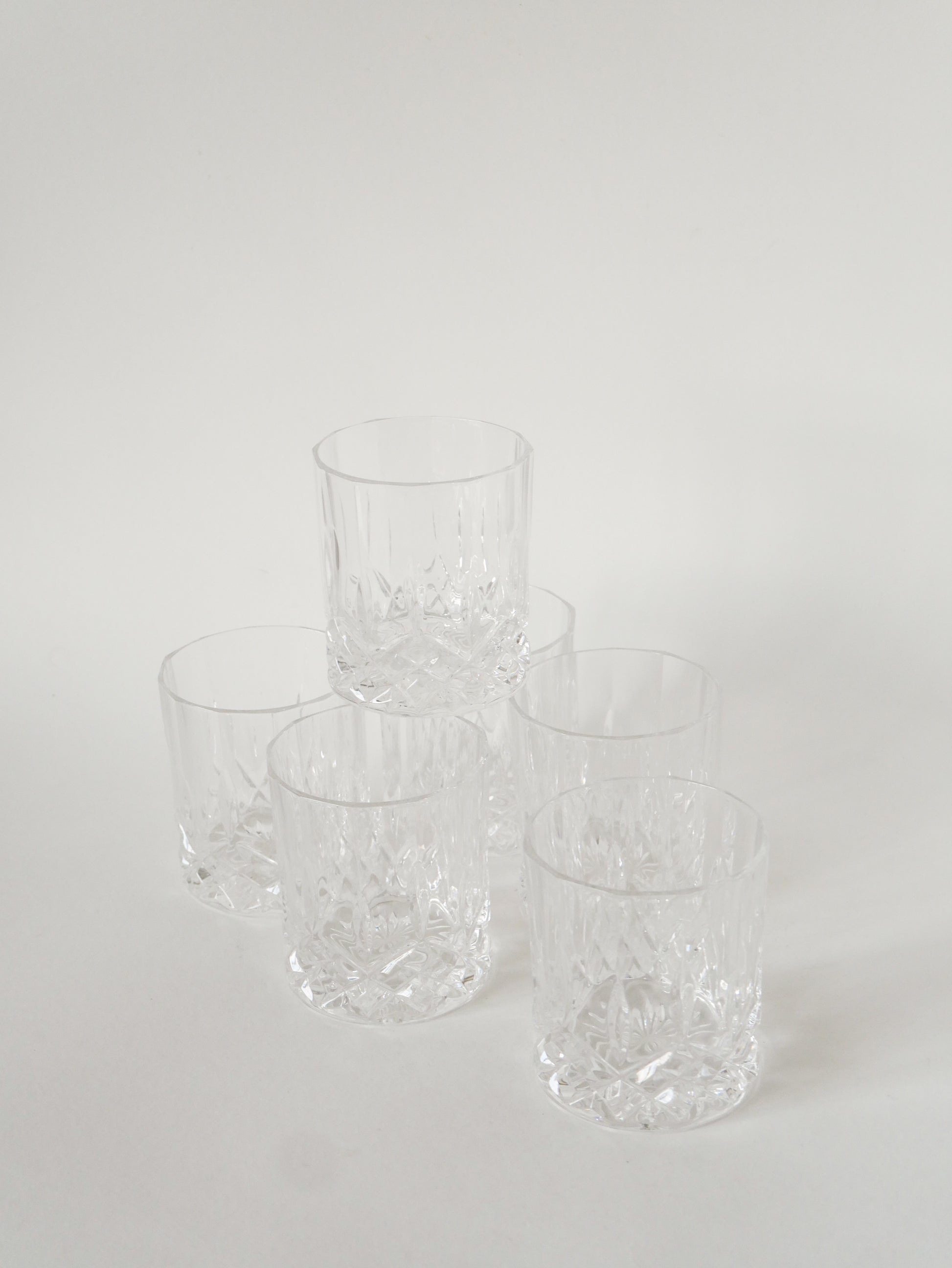 Joli lot de 6 verres à whisky en cristal, 1960. En très bon état, de rares traces du temps. Envoi rapide et soigné. Possibilité d'envois groupés - plus économique et plus écologique ! Dimensions : 10 X 8 cm.