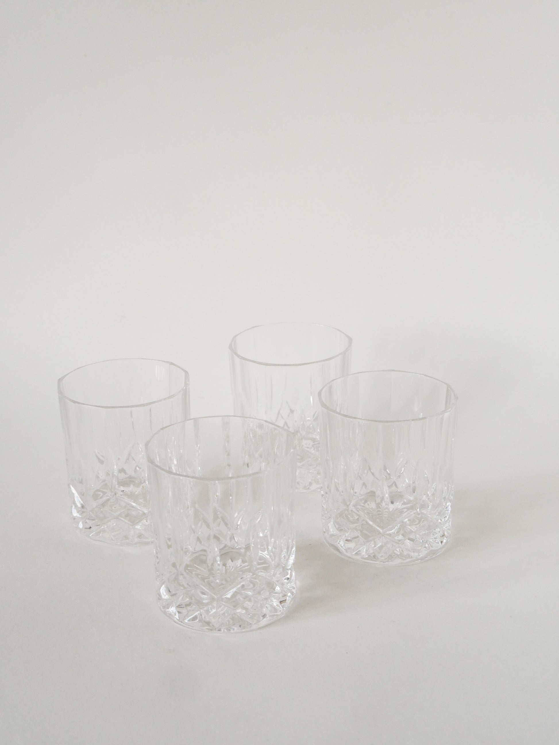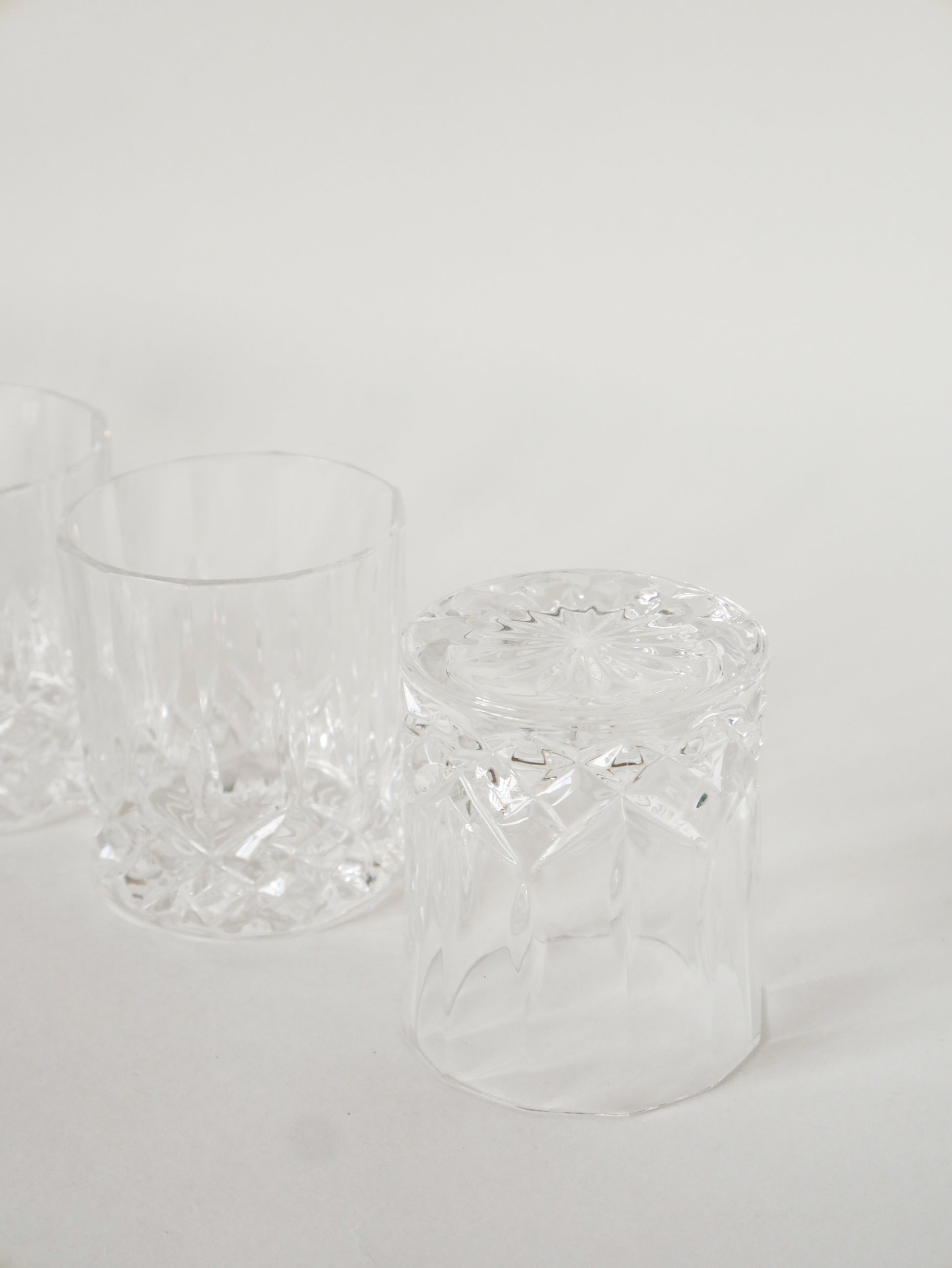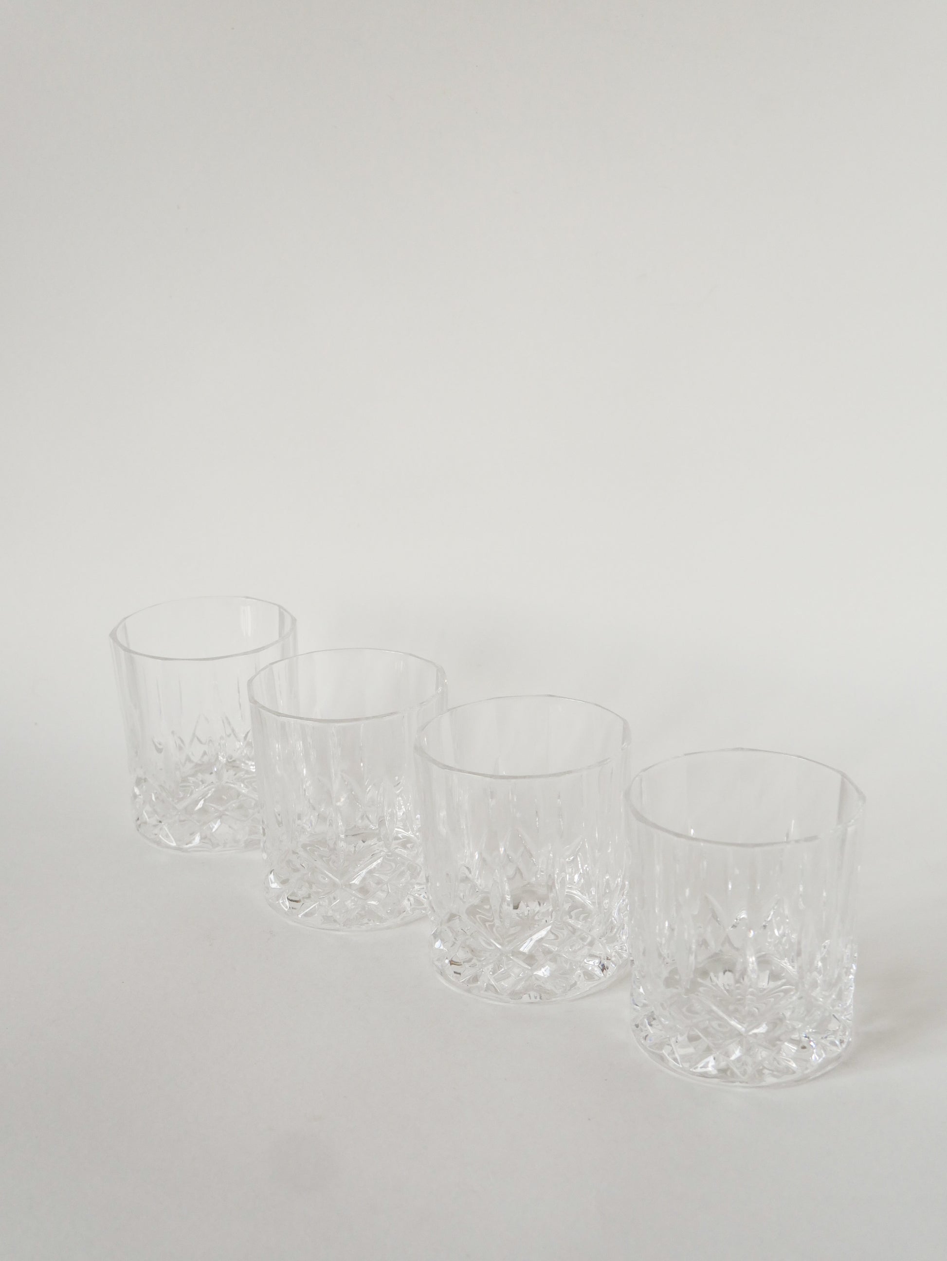 Joli lot de 6 verres à whisky en cristal, 1960. En très bon état, de rares traces du temps. Envoi rapide et soigné. Possibilité d'envois groupés - plus économique et plus écologique ! Dimensions : 10 X 8 cm.