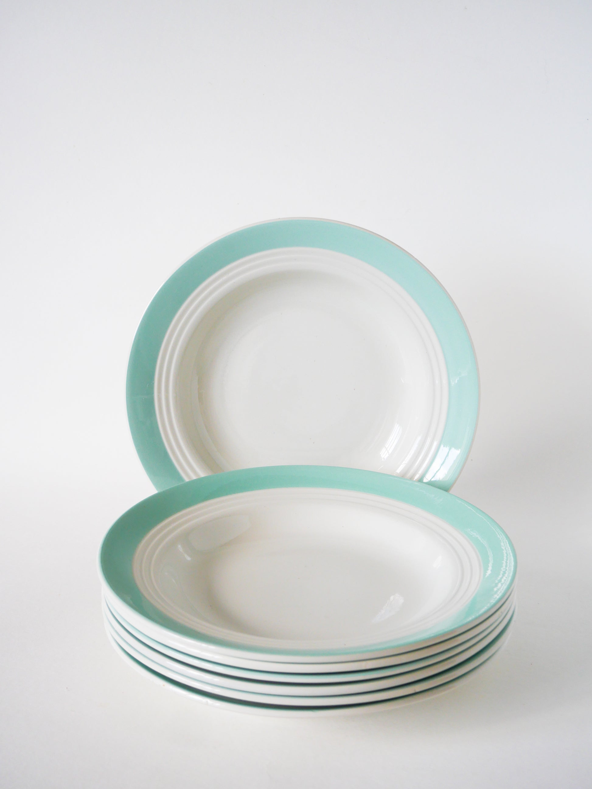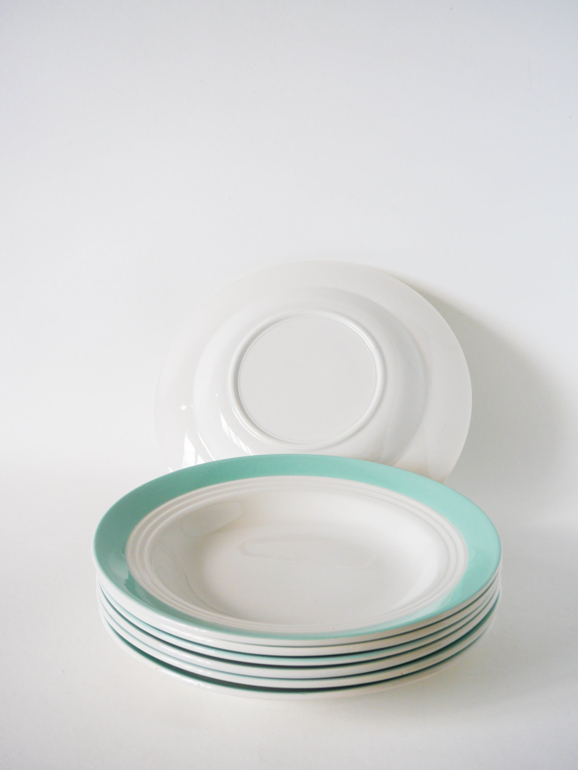 Lot de 7 assiettes creuses à liseré, Vert Menthe, 1960