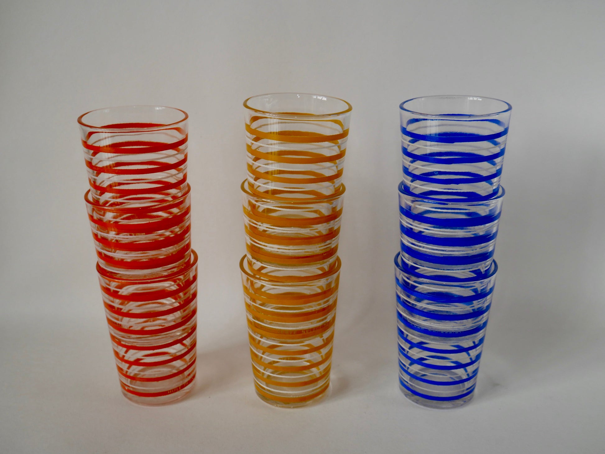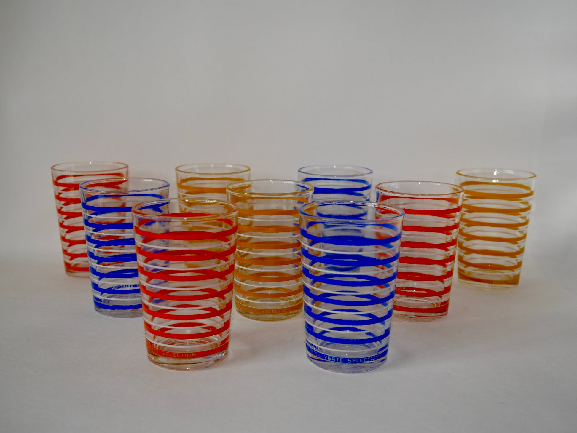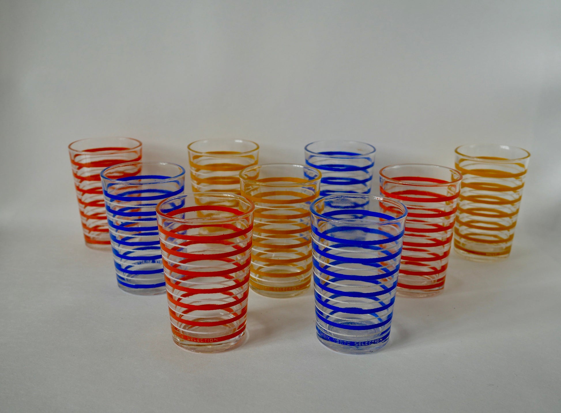 Lot de 9 verres à eau à spirale vintage publicitaires années 70