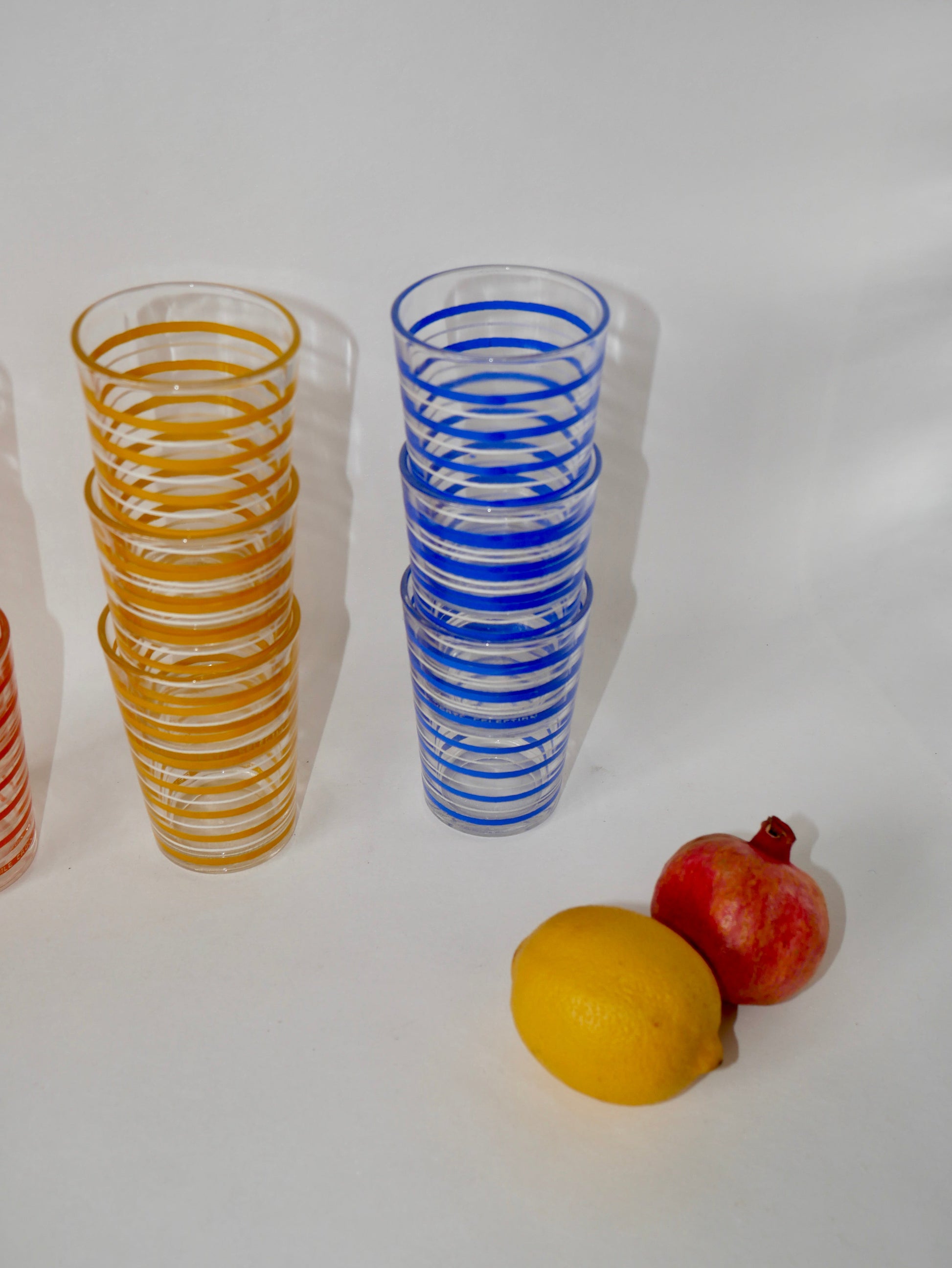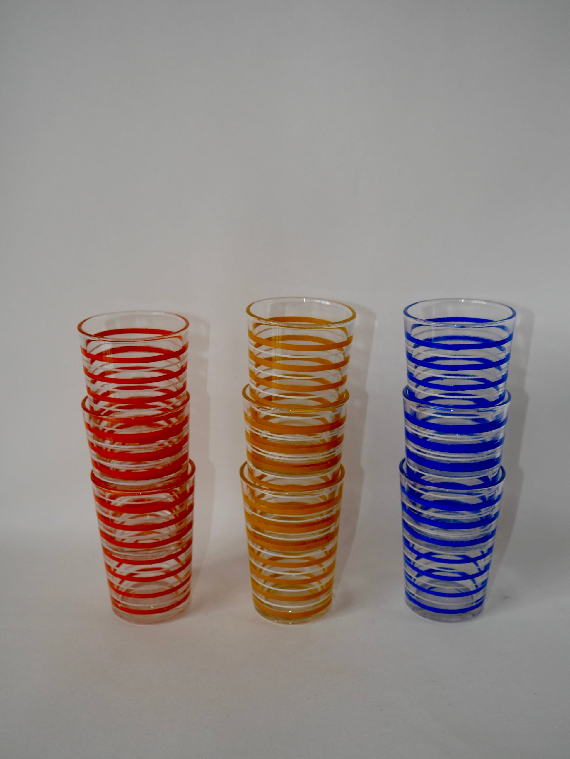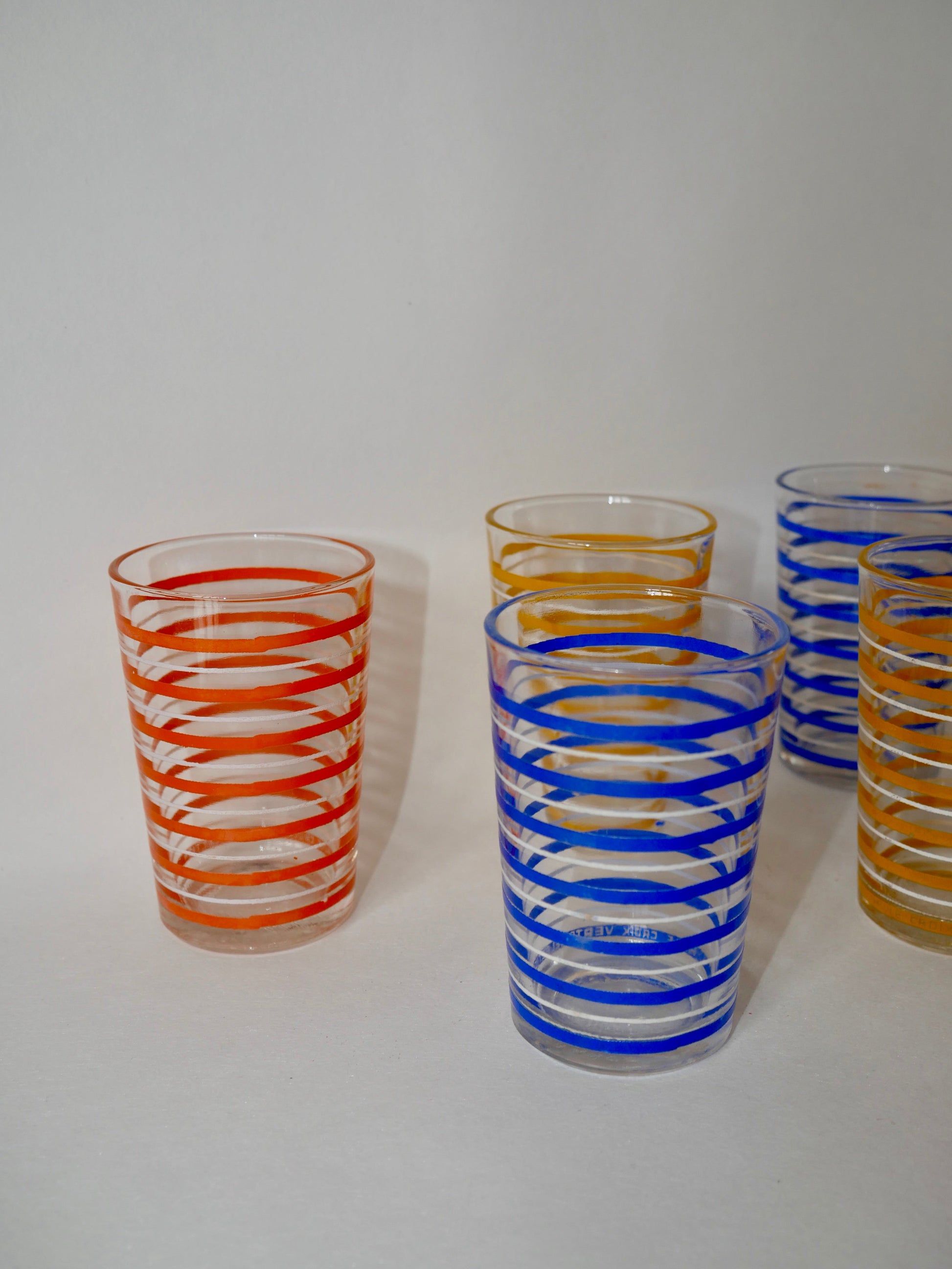 Lot de 9 verres à eau à spirale vintage publicitaires années 70
