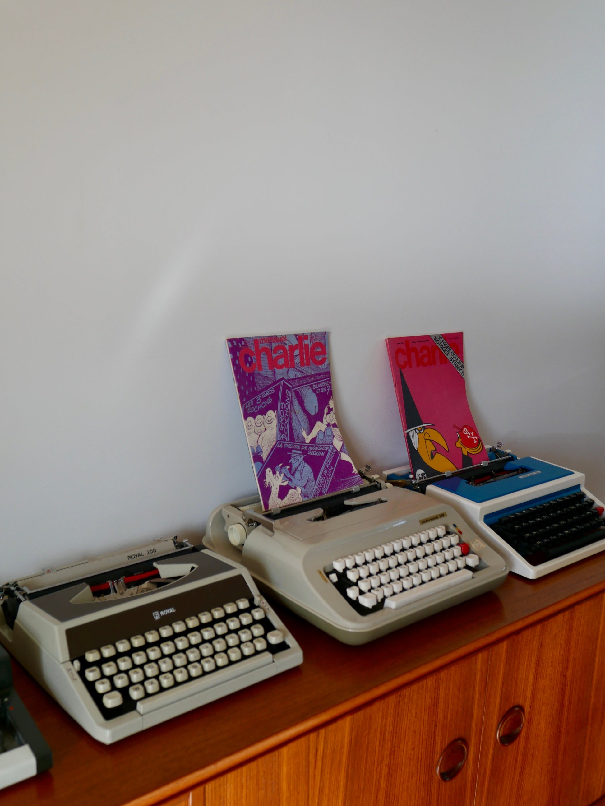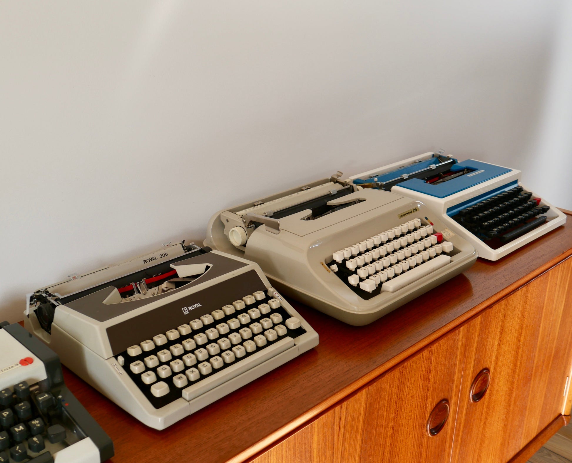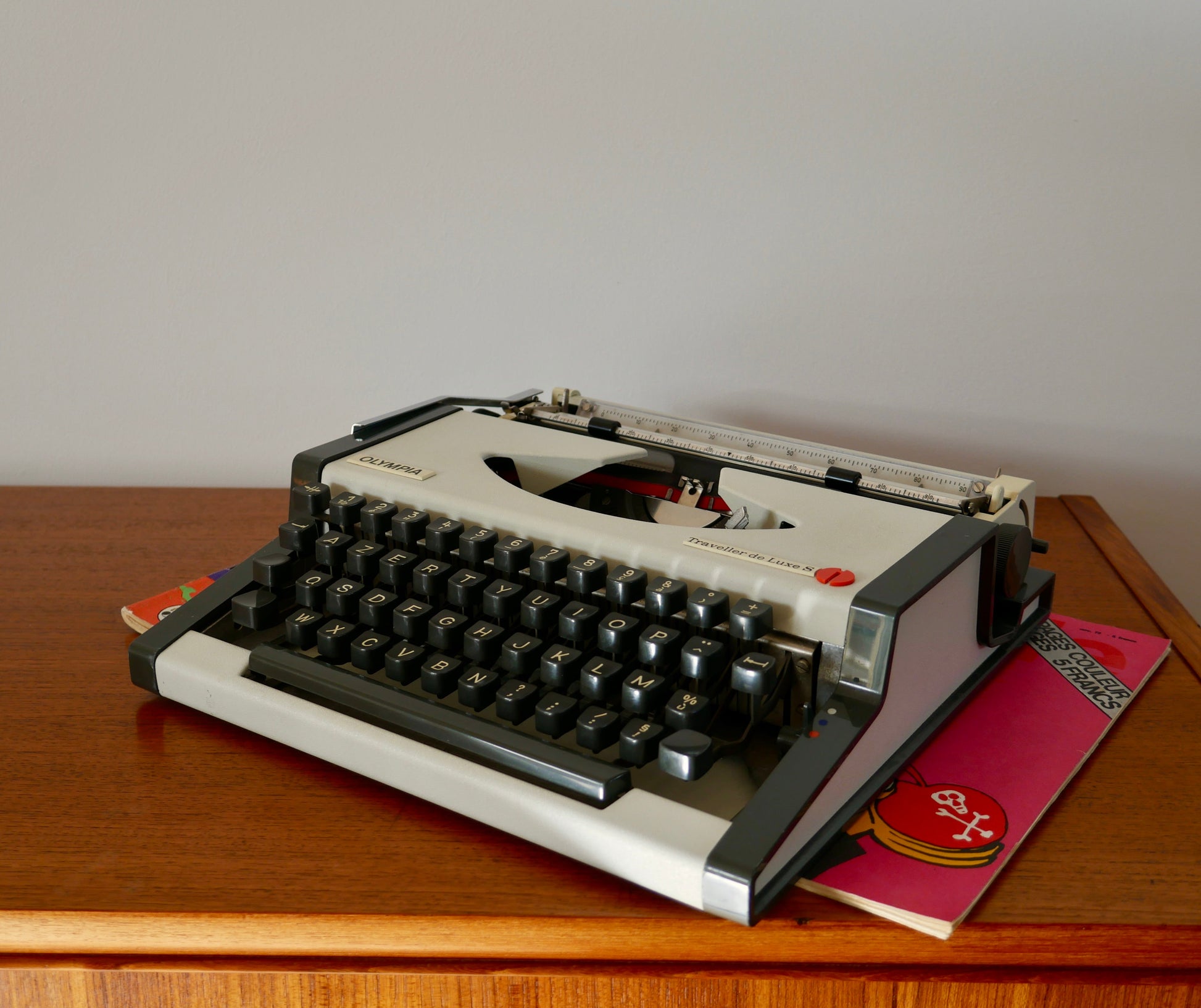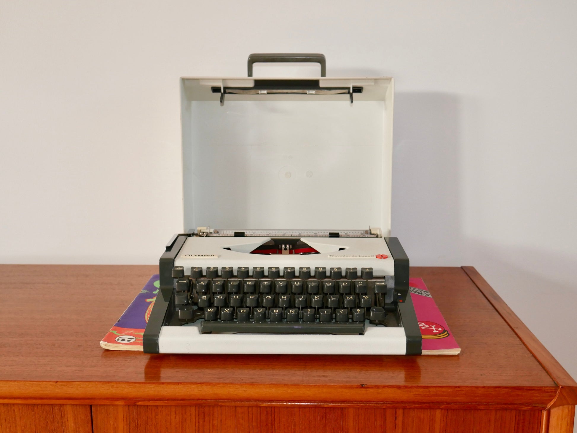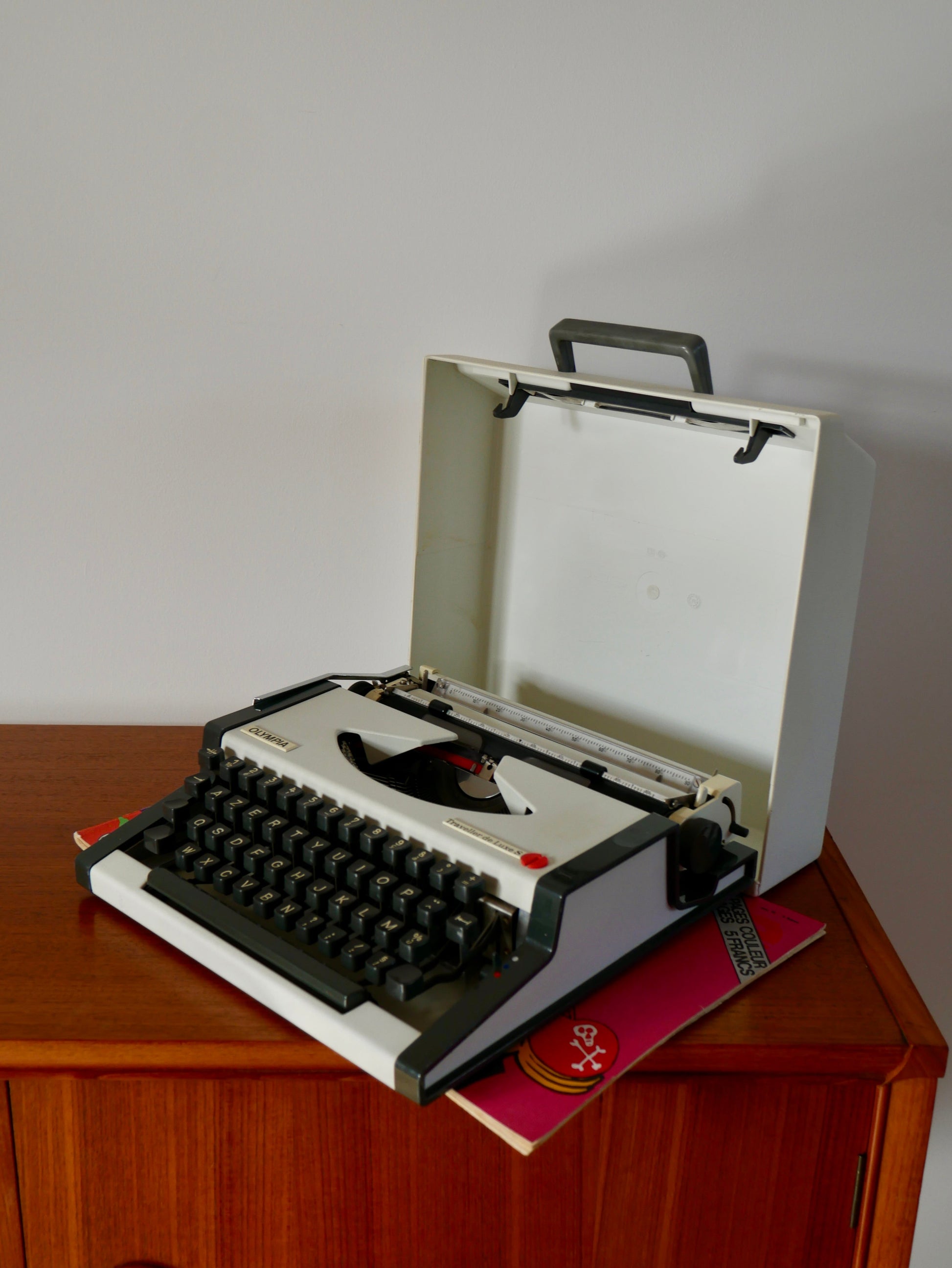 Machine à écrire blanche Olympia Travaller de Luxe années 70